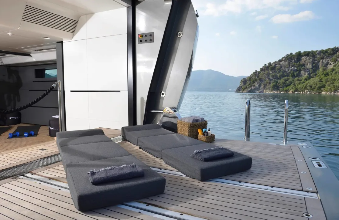 Onboard FX, every corner is a testament to refined leisure. The sun deck beckons for afternoons of relaxation, where you can bask on sunpads or enjoy a refreshing dip in the deck jacuzzi while savoring a signature cocktail from the exterior bar. As day turns to evening, the advanced air conditioning and seamless Wi-Fi keep you connected and comfortable, offering a perfect setting for entertaining or unwinding with loved ones.