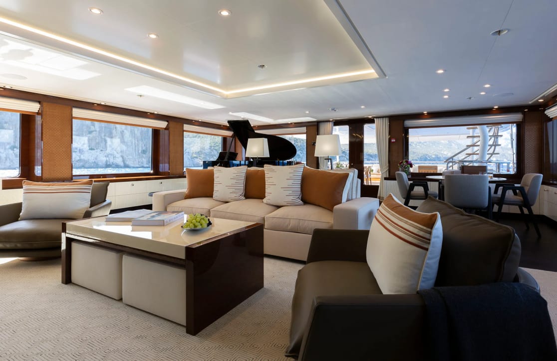 Aboard Galene, each day unfolds with the promise of serenity and indulgence. The sundeck invites you to bask in the sun’s embrace, while the jacuzzi offers a refreshing respite under the stars. As day turns to night, the air-conditioned interiors designed by Laura Sessa Romboli become a haven of contemporary tranquility, where you can unwind with a book or enjoy the harmonious melodies from the grand piano. The beach club and gym await those seeking active pursuits, ensuring that every moment is tailored to your desires. Whether dining alfresco with the chef’s exquisite creations or simply enjoying a moment of contemplation on the sunpads, life aboard Galene is a symphony of comfort and style.