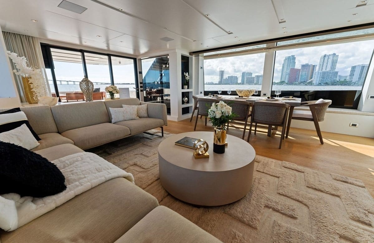 Gatsby’s sleek steel hull and aluminum superstructure not only ensure a smooth journey but also exude a refined elegance that sets the stage for an exquisite charter experience. The skilled crew of four anticipates your every need, providing impeccable service that enhances your voyage. Whether you’re soaking up the sun on the expansive deck or enjoying the seamless connectivity of onboard Wi-Fi, Gatsby offers an escape that is both indulgent and invigorating.