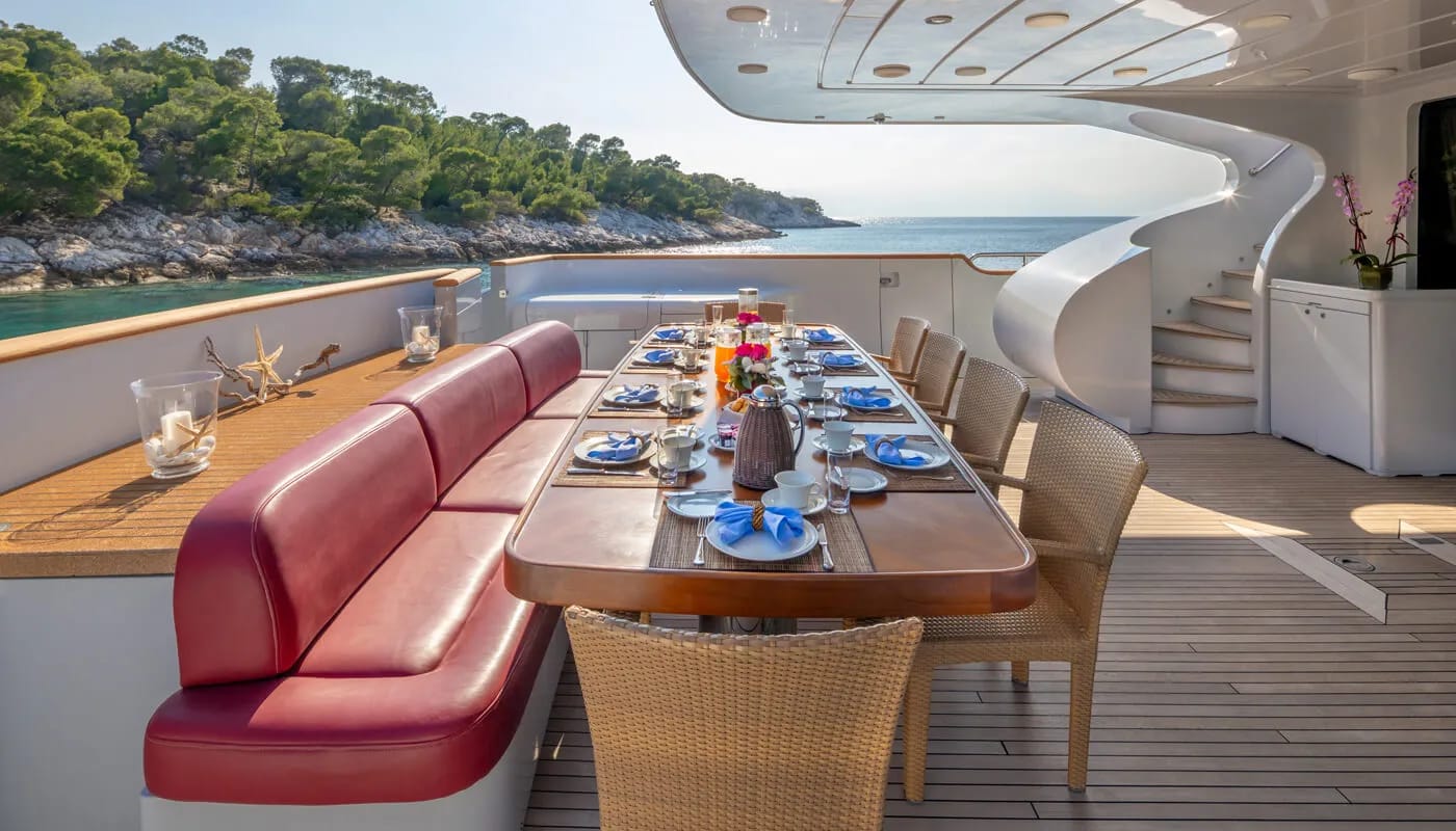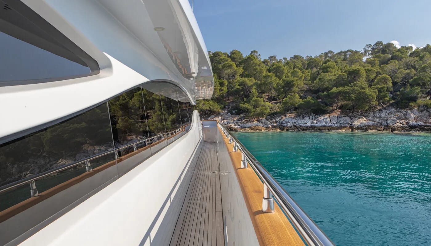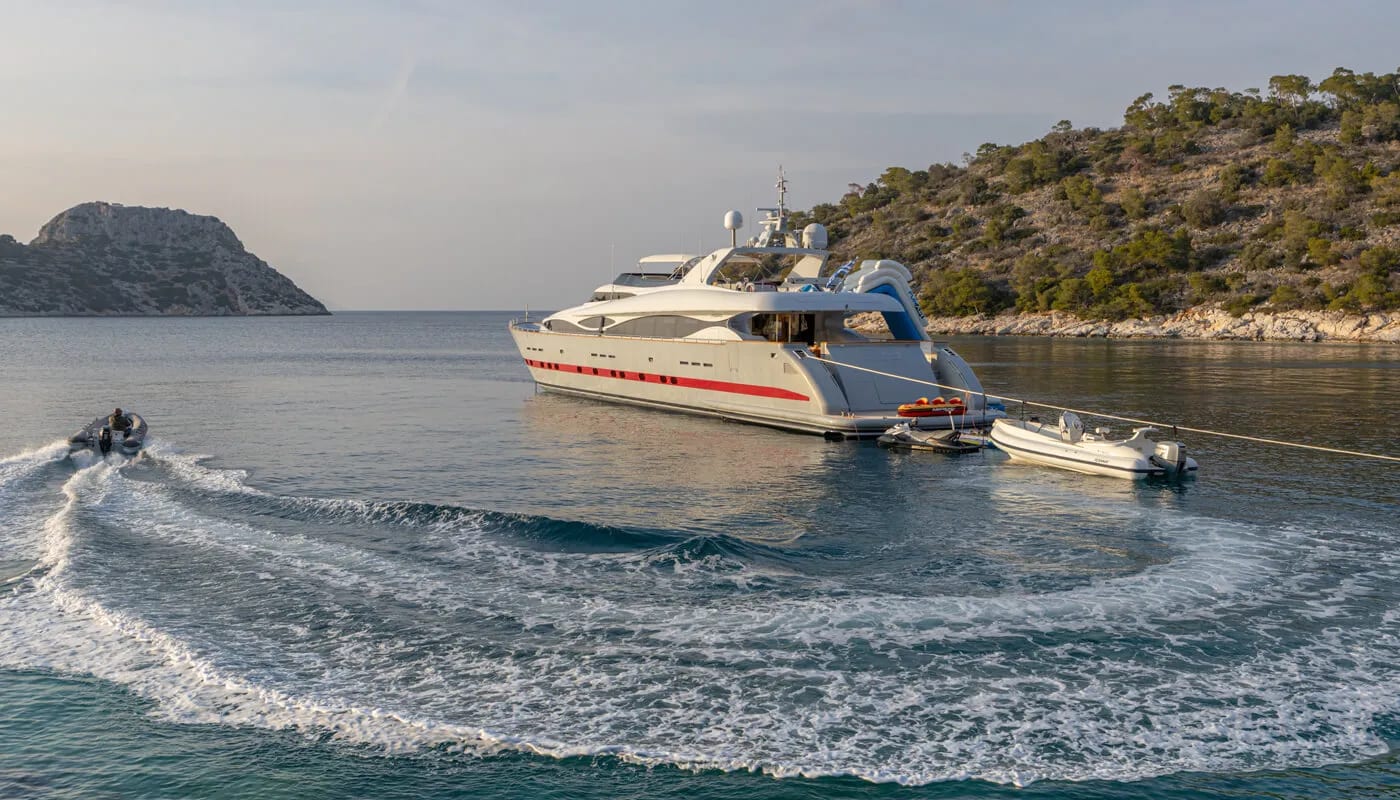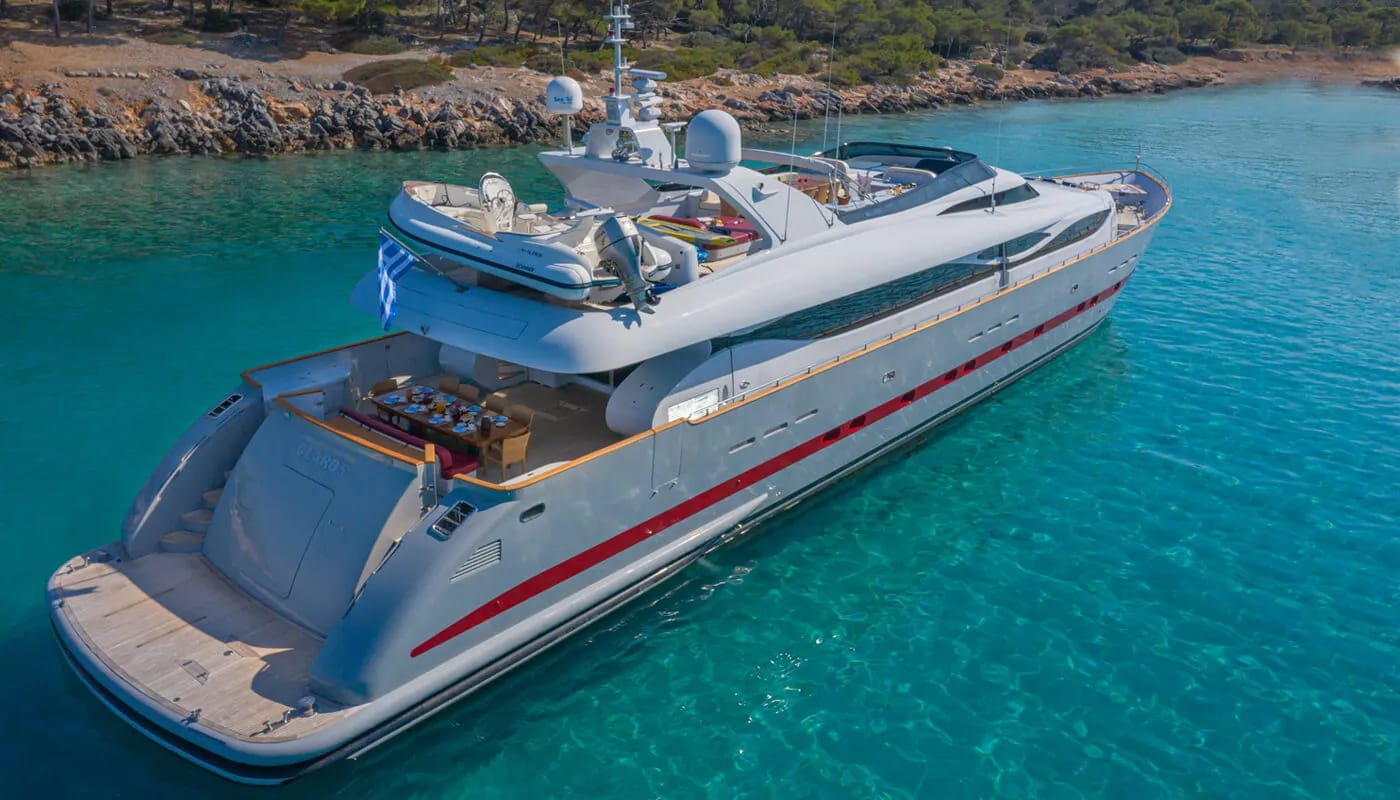 Imagine a week aboard Glaros, a 40-meter testament to refined nautical engineering by Maiora. This vessel promises not just a journey but an immersion into a lifestyle where every moment is a cherished memory. Cruising at a graceful 17 knots, with the potential to surge to 29, Glaros invites you to explore the Mediterranean’s hidden gems with ease. Her sleek planing hull ensures both speed and stability, making the voyage as pleasurable as the destination. With the capacity to cover 1,000 nautical miles, every day holds the promise of new adventures, whether you’re discovering secluded coves or relishing the onboard sanctuary.