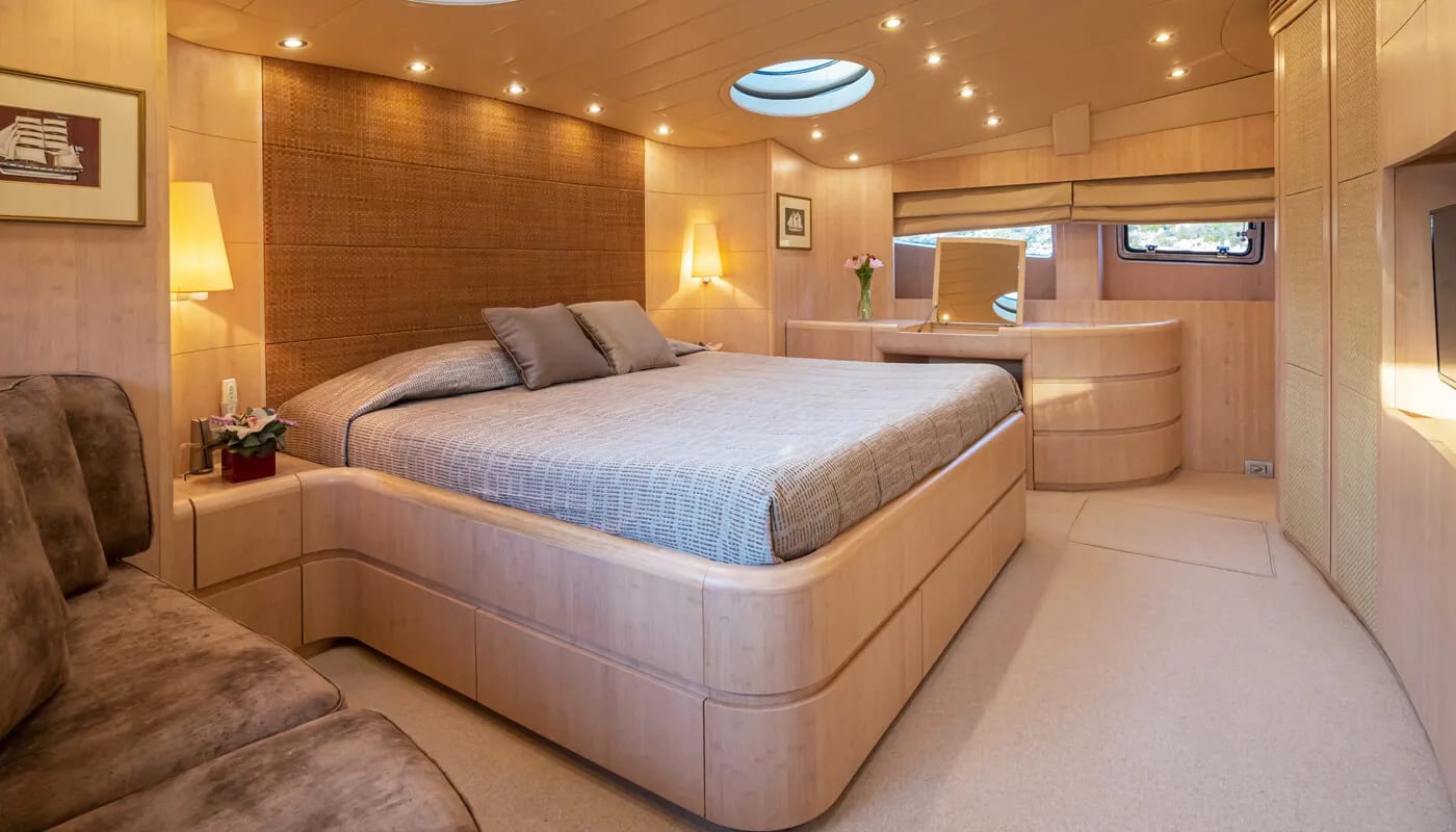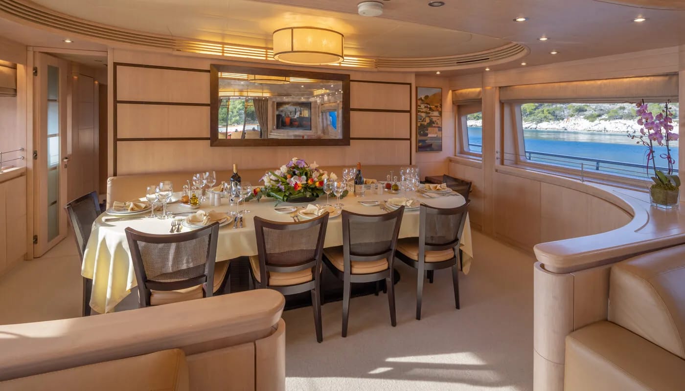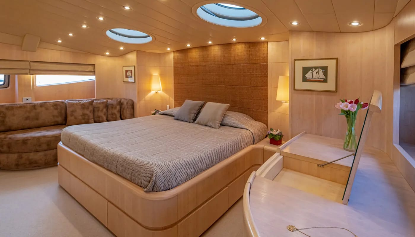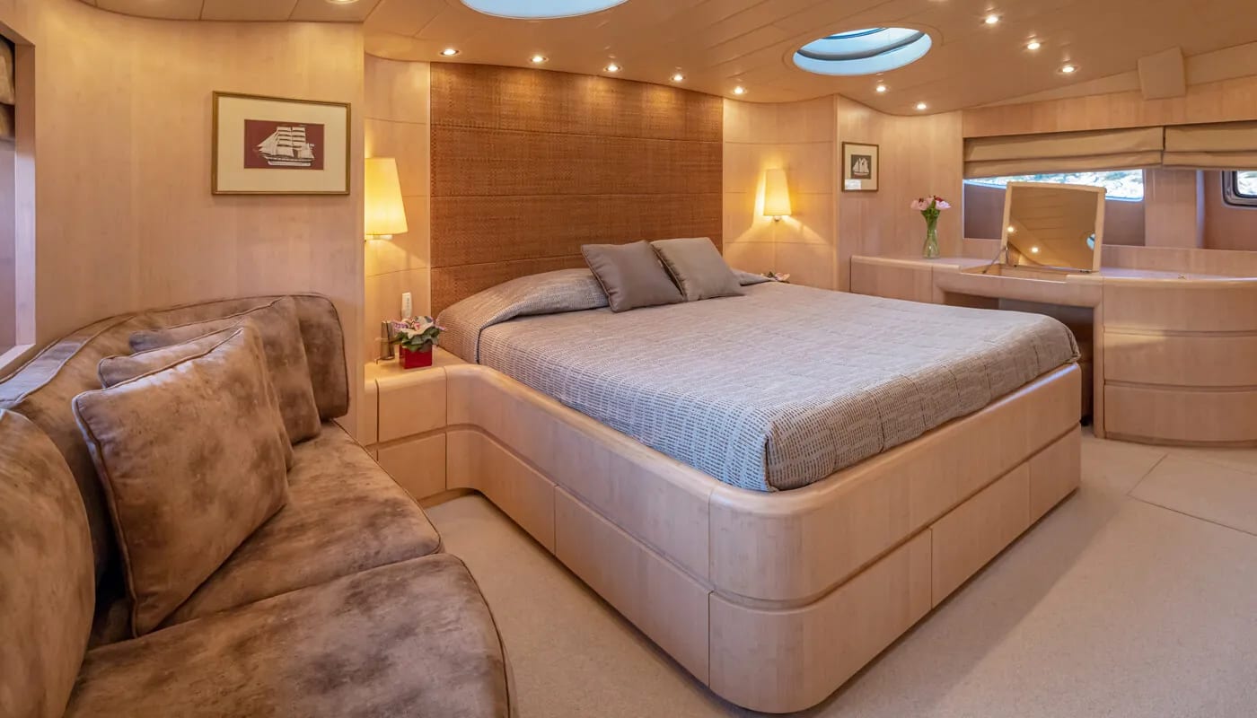 Glaros accommodates up to 12 guests in six exquisitely appointed cabins, each a sanctuary of comfort. From the master suite to the charming twin cabins, every room is designed to welcome you with a sense of peace. Awaken to the gentle motion of the sea and the promise of another day filled with exploration and relaxation. Each cabin is a private retreat, where the day’s adventures are recounted and dreams are woven.