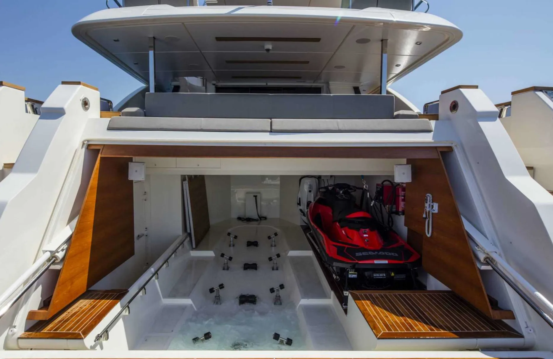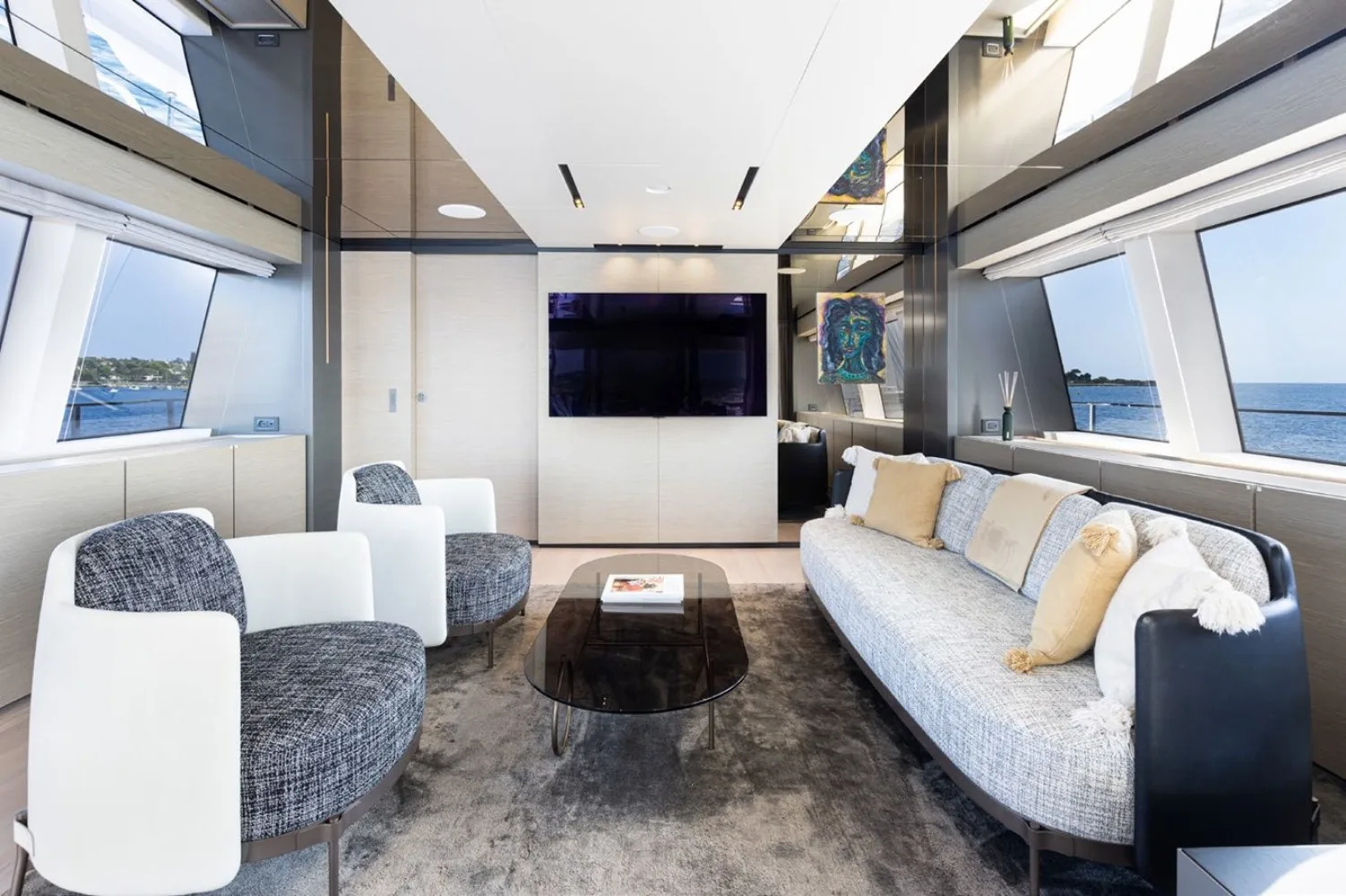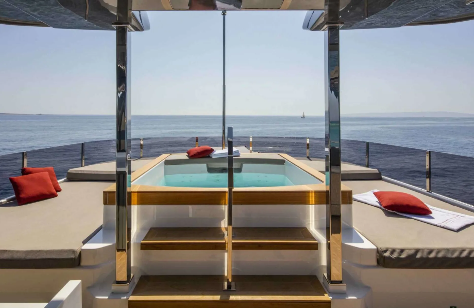 Life aboard Haiami I is an invitation to indulge in refined relaxation and vibrant social gatherings. Picture yourself unwinding in the deck Jacuzzi, the soothing waters mirroring the surrounding endless horizons, while a gentle breeze carries the scent of the sea. The yacht’s spacious sun deck offers an idyllic retreat, perfect for basking in the sun on plush sunpads or enjoying an alfresco meal prepared on the BBQ as the day transforms into evening. Here, an exterior bar awaits with the promise of expertly crafted cocktails, a fitting accompaniment to unforgettable sunsets. With high-speed Wi-Fi ensuring you remain as connected or as blissfully disconnected as you choose, every moment is tailored to your desires.