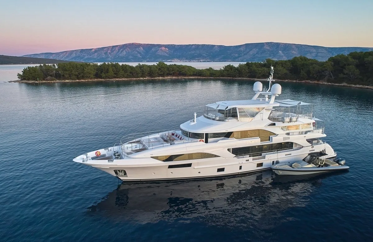 Step into a realm of refined elegance aboard the 132-foot motor yacht, Happy Me. Crafted by the prestigious Italian shipyard Benetti, this vessel offers an enchanting retreat at sea. Imagine a week spent exploring the azure waters and hidden gems of your chosen itinerary, both onboard and ashore. With a graceful cruising speed of 11 knots and the capability to reach up to 15 knots, Happy Me ensures a smooth and stable journey, courtesy of its advanced stabilization system and robust full-displacement hull. Every moment aboard is orchestrated for your pleasure, from sun-drenched afternoons on the spacious decks to serene evenings under the stars.