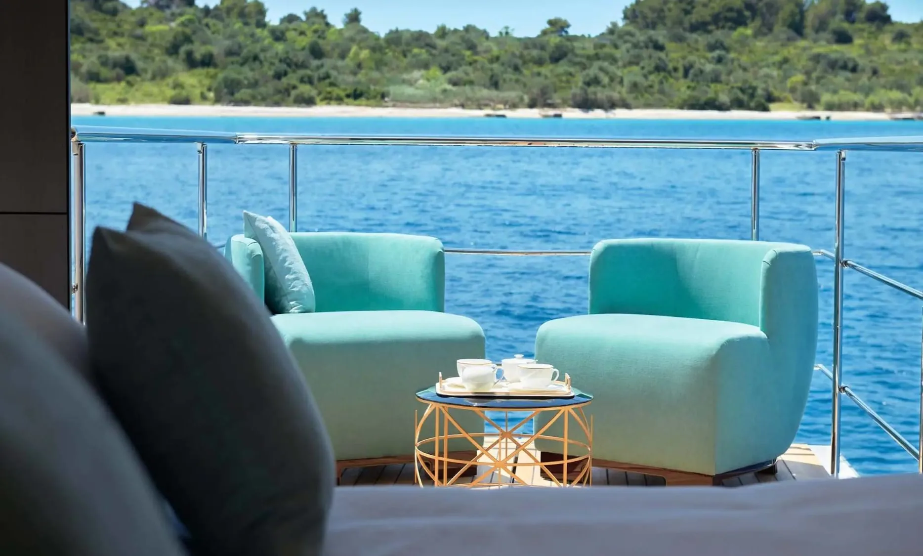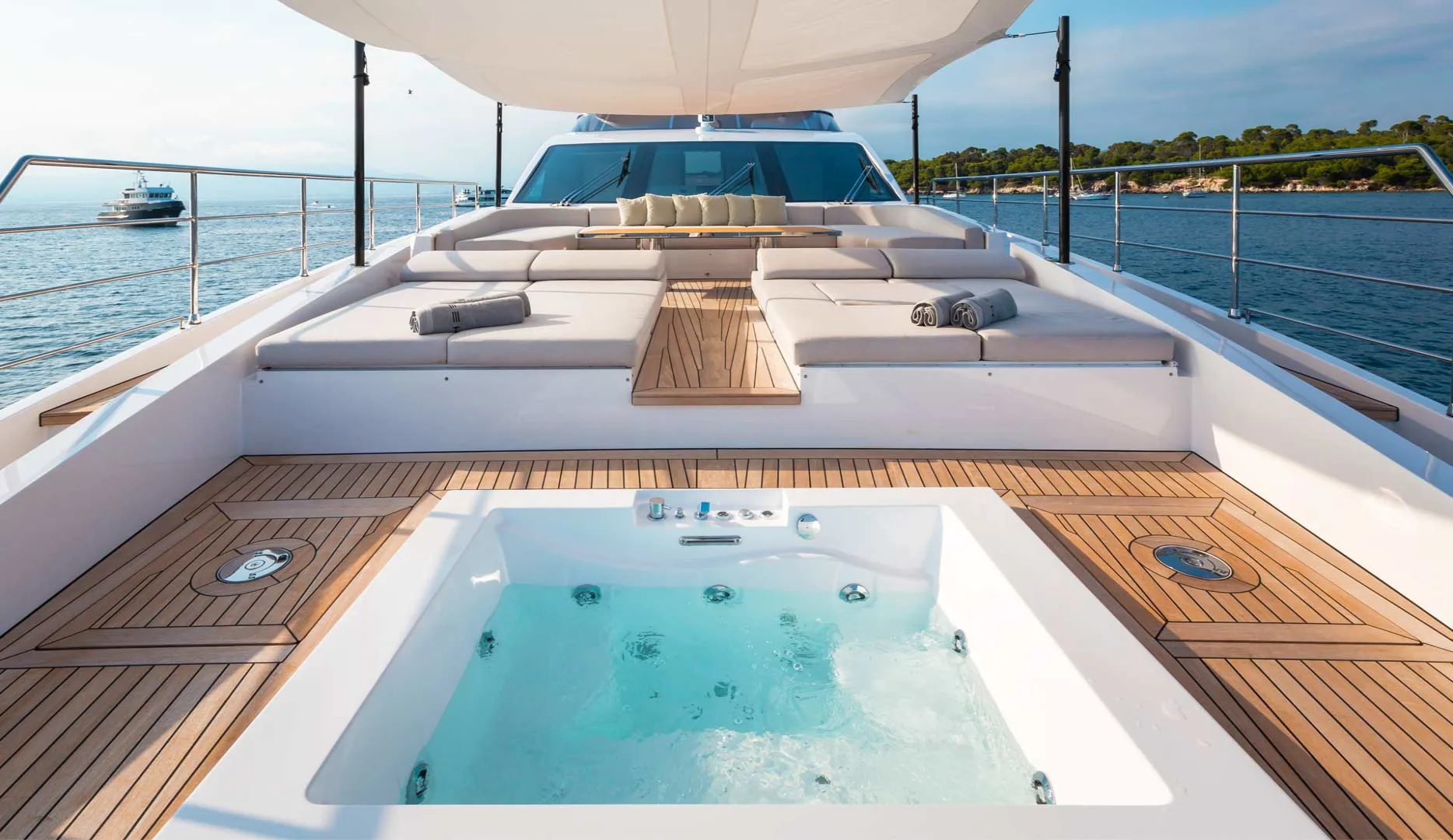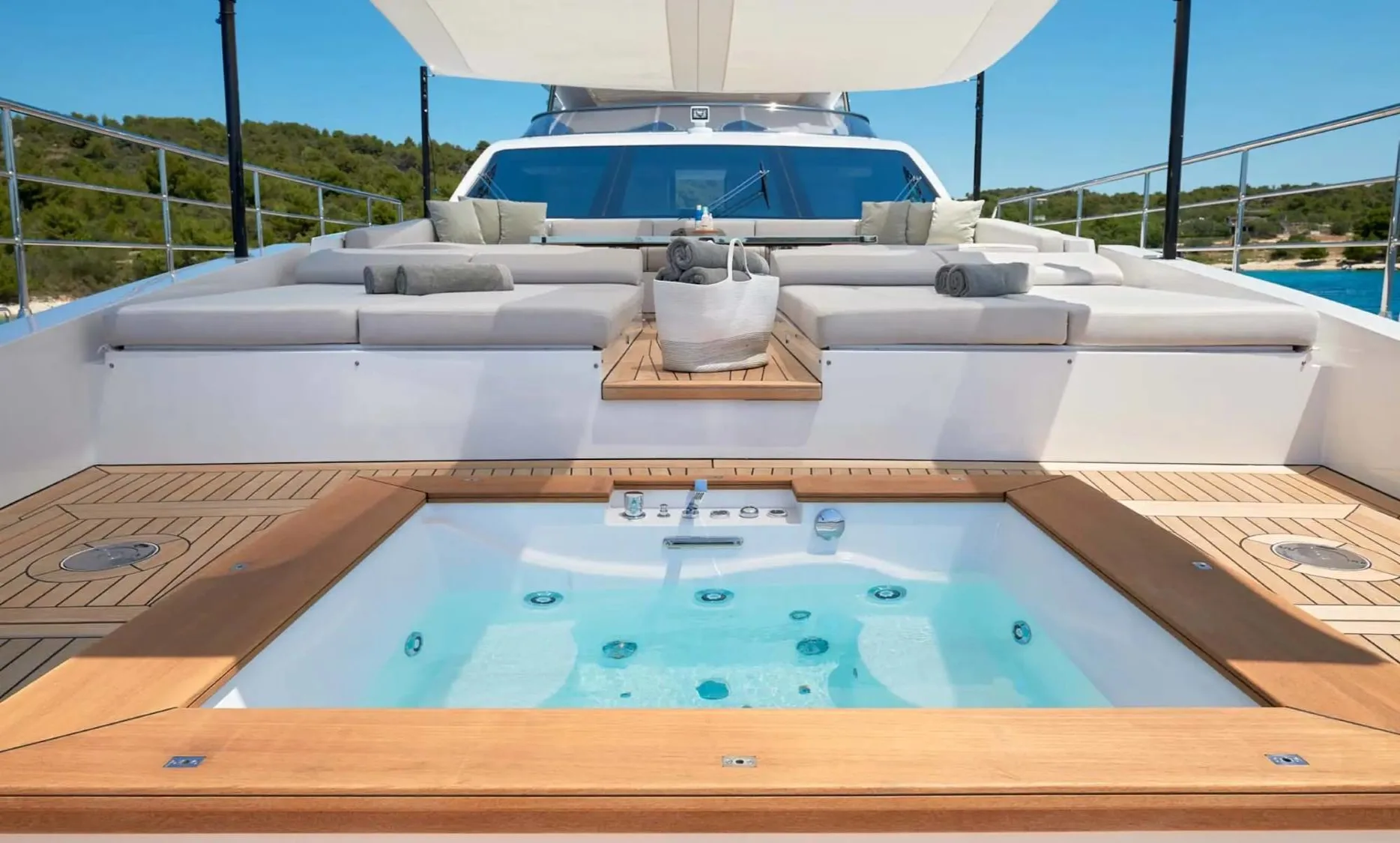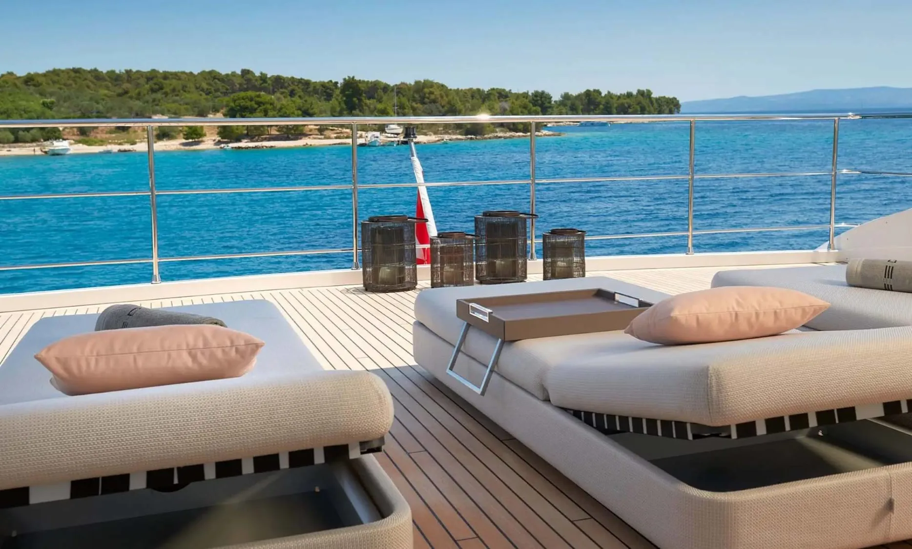 Onboard Heed, every moment is an invitation to indulge in the art of living well. As the sun casts its golden glow, retreat to the deck jacuzzi for a refreshing soak, or find your balance in the state-of-the-art gym that overlooks the endless horizon. Evenings transform into enchanting gatherings under the stars, with the exterior bar serving as a convivial hub for sharing stories and laughter. The foredeck seating offers an intimate setting for al fresco dining, while the beach club provides a serene escape at the water’s edge, where the gentle rhythm of the waves lulls you into a state of bliss.
