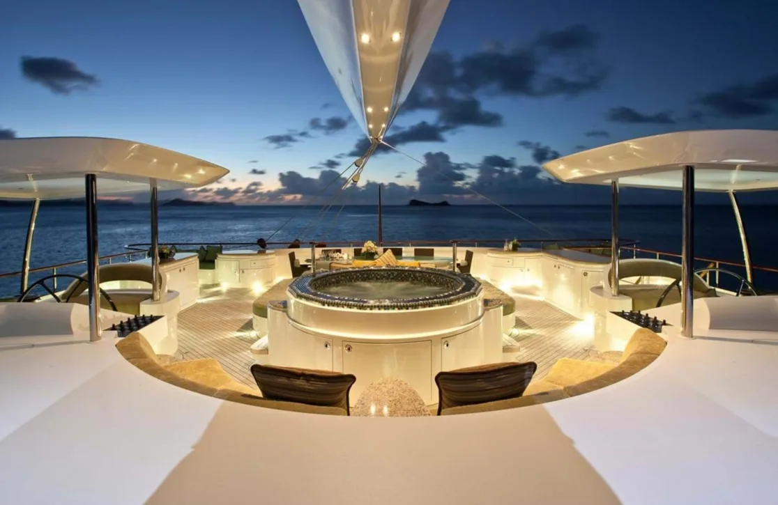 Onboard Hemisphere, every moment is an opportunity to indulge in the art of refined living. Whether you’re unwinding in the soothing warmth of the deck jacuzzi or staying connected through satellite communications and Wi-Fi, the yacht provides an inviting sanctuary. As the sun sets, the air-conditioned interiors offer a serene escape, while the sun deck becomes a social haven under the stars. The satellite TV entertains, providing a perfect blend of leisure and connection, ensuring guests feel at home amidst opulent surroundings.
