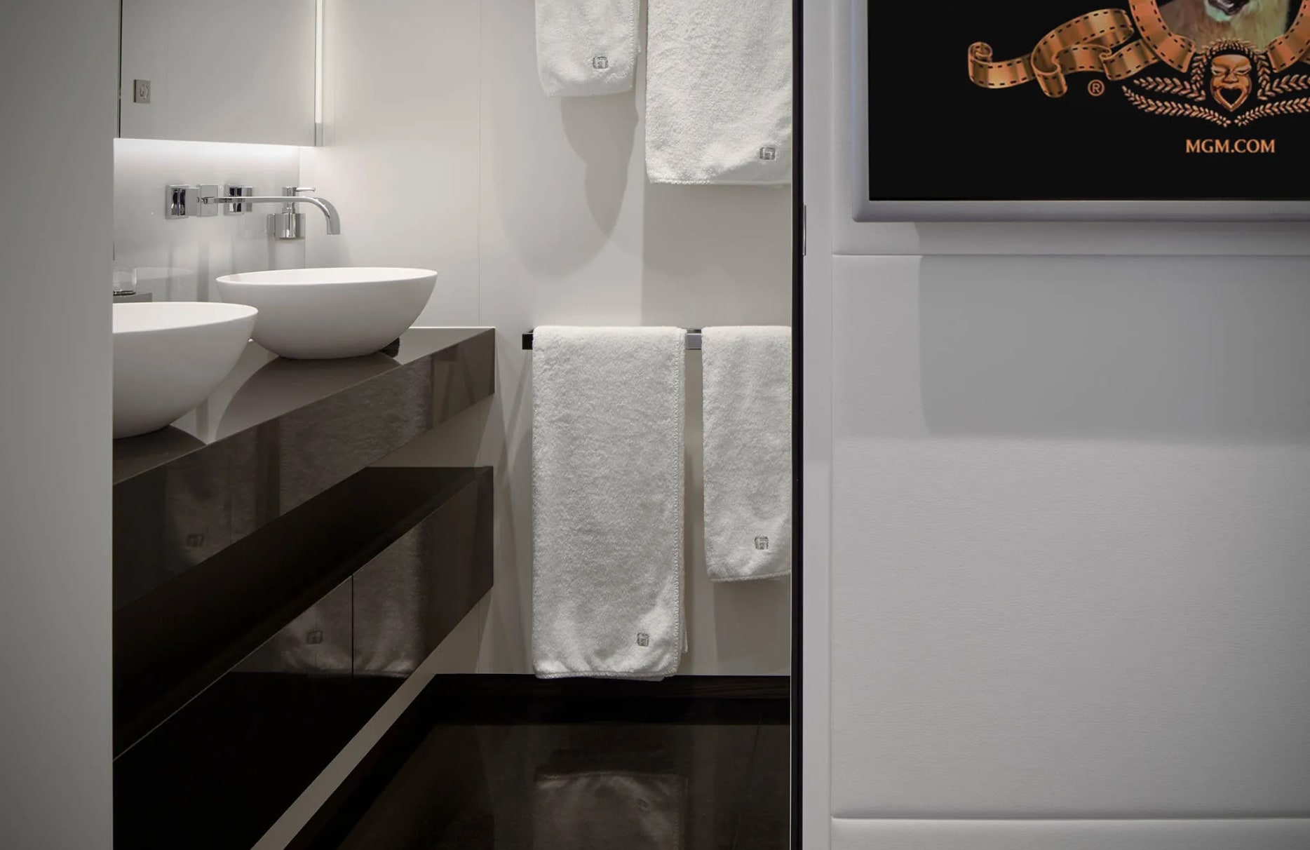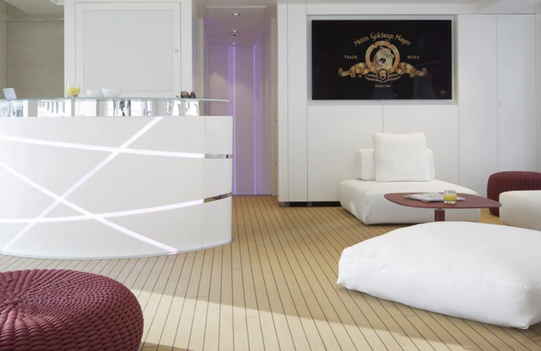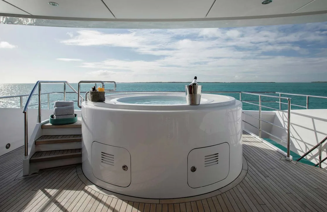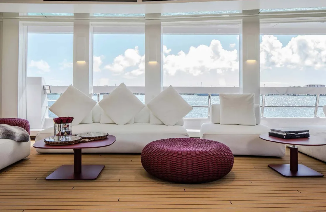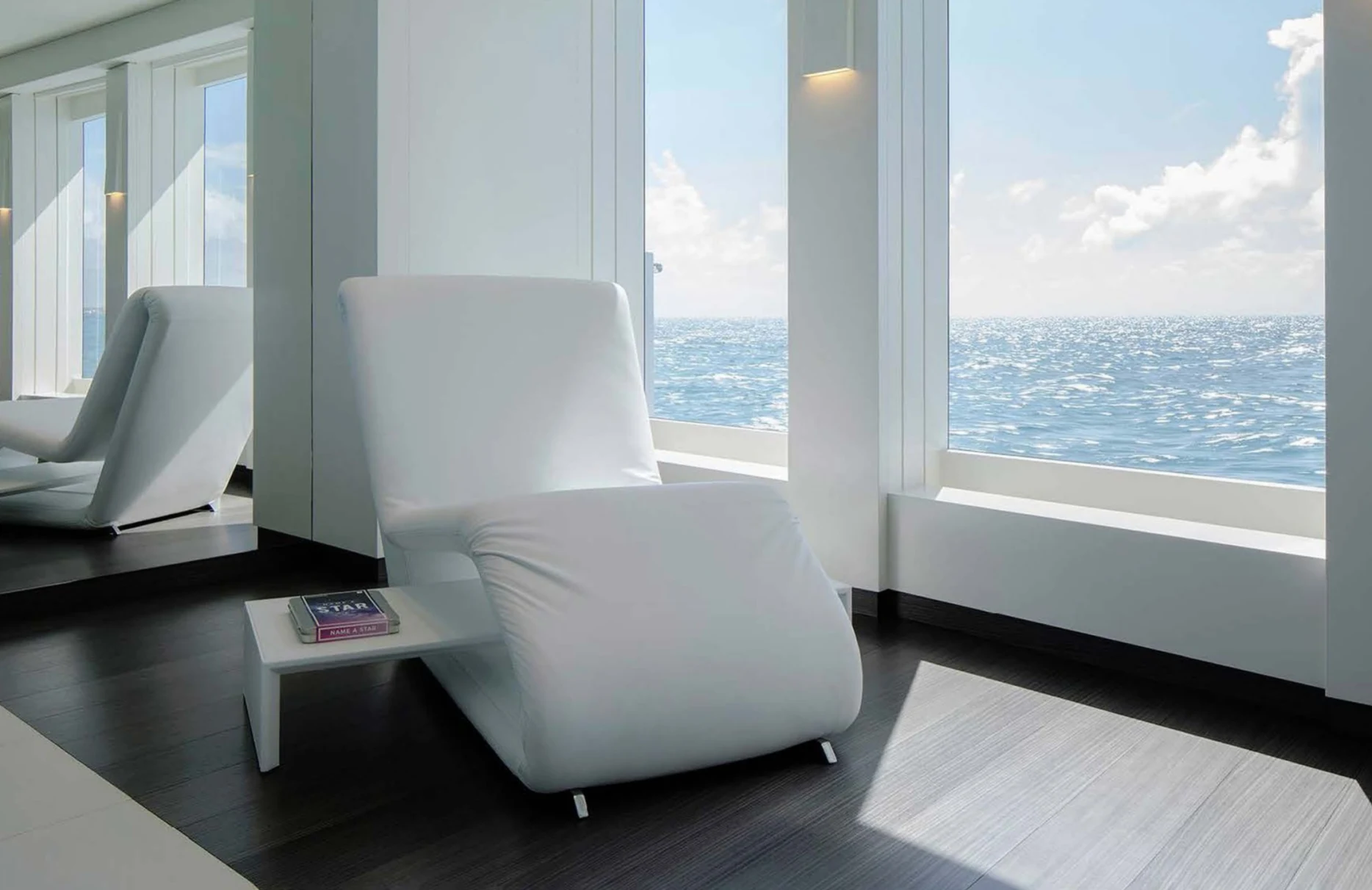 Aboard ‘Home,’ every space is designed to elevate your sense of well-being and enjoyment. Begin your day with a rejuvenating workout in the state-of-the-art gym, or unwind in the jacuzzi on the sun deck, where panoramic views of the horizon unfold before you. As the day progresses, the yacht’s expansive sunpads invite you to soak in the sun, while the sleek exterior bar becomes the perfect spot for an afternoon cocktail. Connectivity is never an issue, with satellite TV and Wi-Fi keeping you in touch with the outside world, even as you drift into your private sanctuary. As night falls, the underwater lights create a magical ambiance, setting the stage for an evening under the stars.