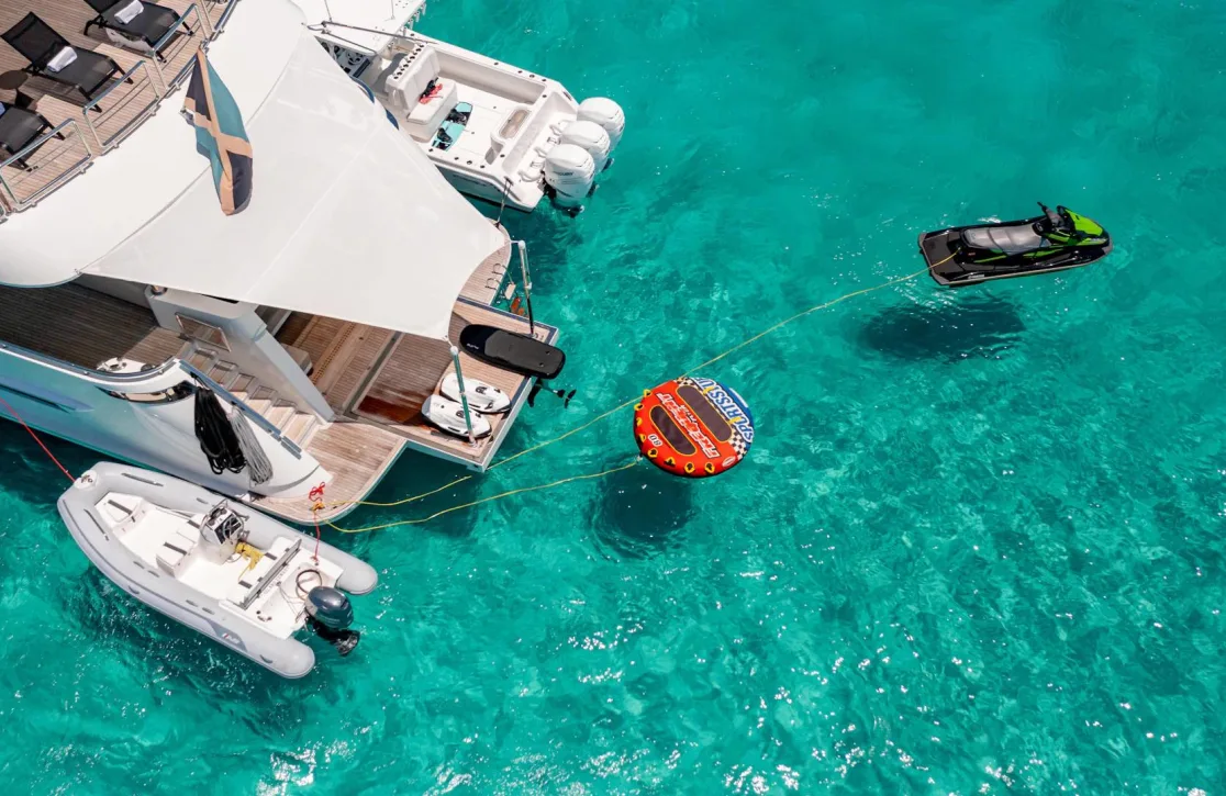 Onboard I C, every moment is an opportunity to indulge in the art of living well. The sun deck invites leisurely afternoons under the sky, while the deck jacuzzi offers a soothing retreat as you gaze out at the horizon. An exterior bar promises convivial evenings, where laughter and stories flow as freely as the craft cocktails. Fitness enthusiasts will appreciate the gym equipment, ensuring that wellness remains a priority even amidst the serene surroundings. Whether relaxing in the beach club or savoring a delightful barbecue under the stars, every space aboard I C is crafted for your enjoyment.