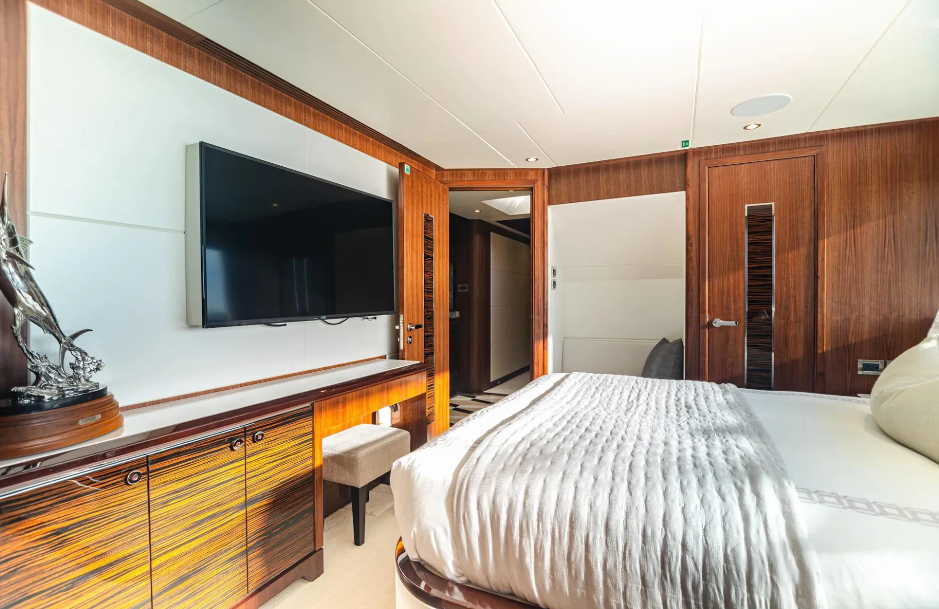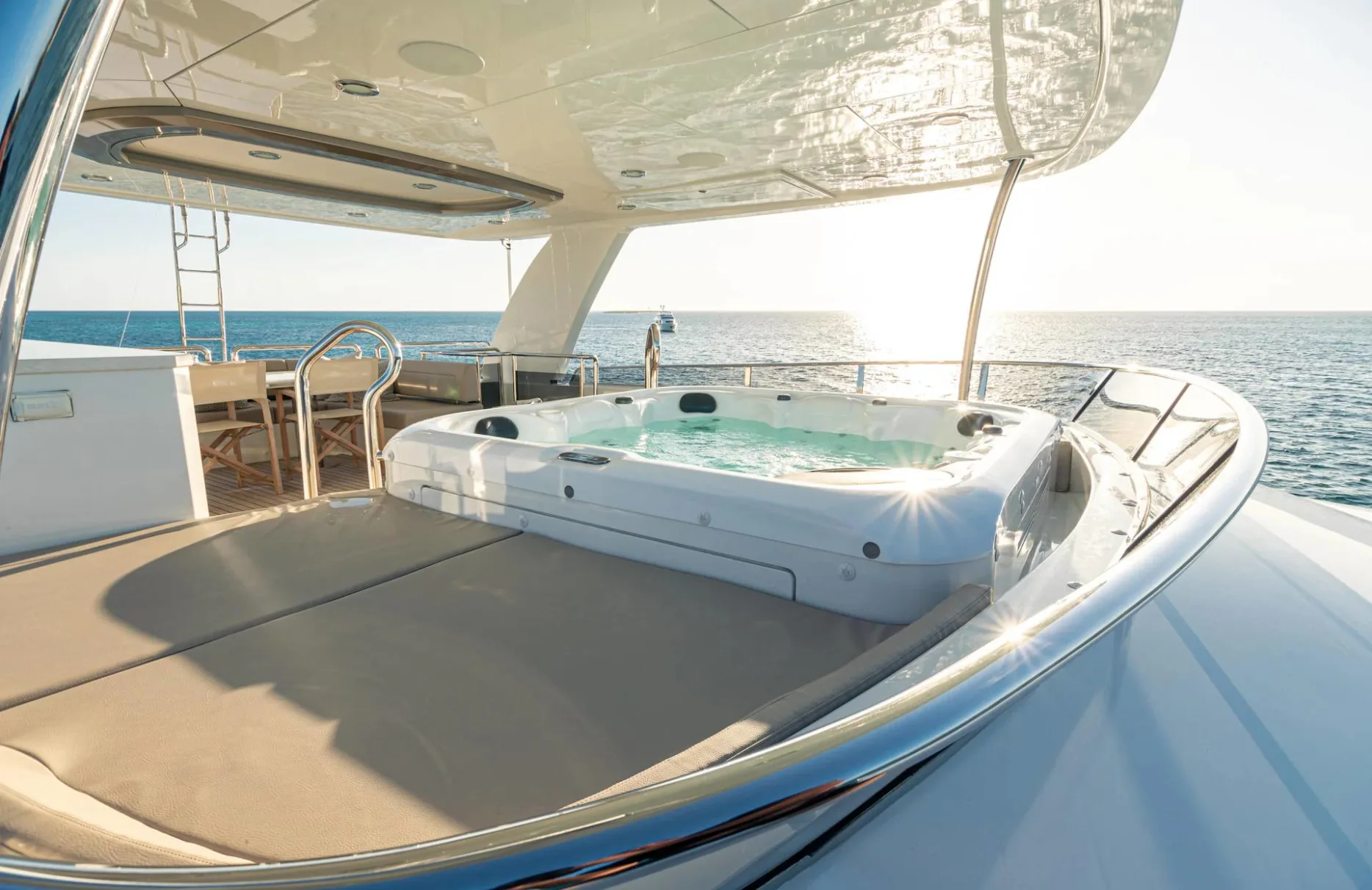 Onboard I C, every moment is an opportunity to indulge in the art of living well. The sun deck invites leisurely afternoons under the sky, while the deck jacuzzi offers a soothing retreat as you gaze out at the horizon. An exterior bar promises convivial evenings, where laughter and stories flow as freely as the craft cocktails. Fitness enthusiasts will appreciate the gym equipment, ensuring that wellness remains a priority even amidst the serene surroundings. Whether relaxing in the beach club or savoring a delightful barbecue under the stars, every space aboard I C is crafted for your enjoyment.