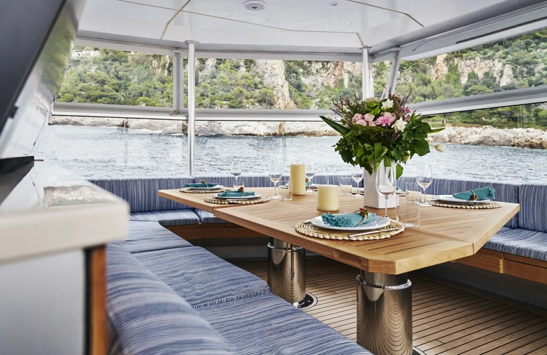 Step into a world where every detail is designed for your pleasure. Iceberg’s outdoor spaces invite you to bask in the sun on plush sunpads, while comprehensive air conditioning ensures a perfect climate indoors. Whether you’re sharing stories over a gourmet meal or indulging in a quiet moment of reflection, her Wi-Fi keeps you connected to the world, should you choose. The bathing platform offers a gateway to the sea, perfect for spontaneous swims or simply relaxing by the water’s edge.