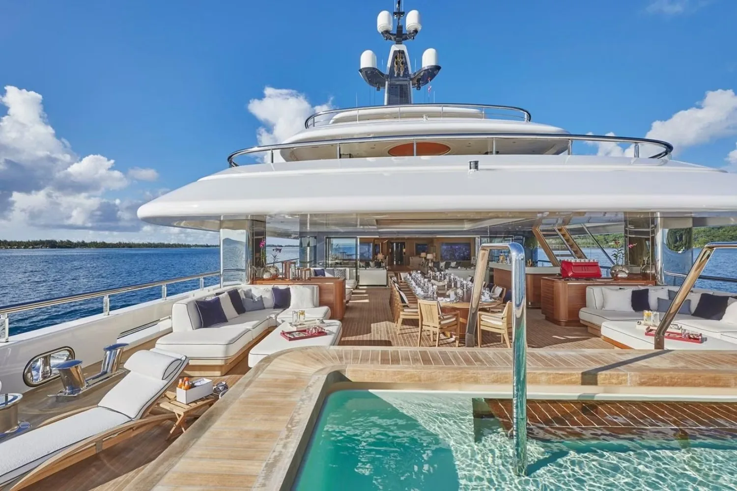 Onboard IJE, every detail is designed for your enjoyment and comfort. Imagine starting your day with a refreshing swim in the on-deck pool, followed by a rejuvenating session in the state-of-the-art gym. As the sun sets, gather with friends on the sun deck, where an outdoor bar awaits to serve your favorite cocktails, or perhaps retreat to the movie theatre for a cinematic experience like no other. The yacht’s sophisticated spaces, such as the winter garden and beach club, offer serene escapes, while the dance floor and beauty room ensure entertainment and relaxation are always within reach.