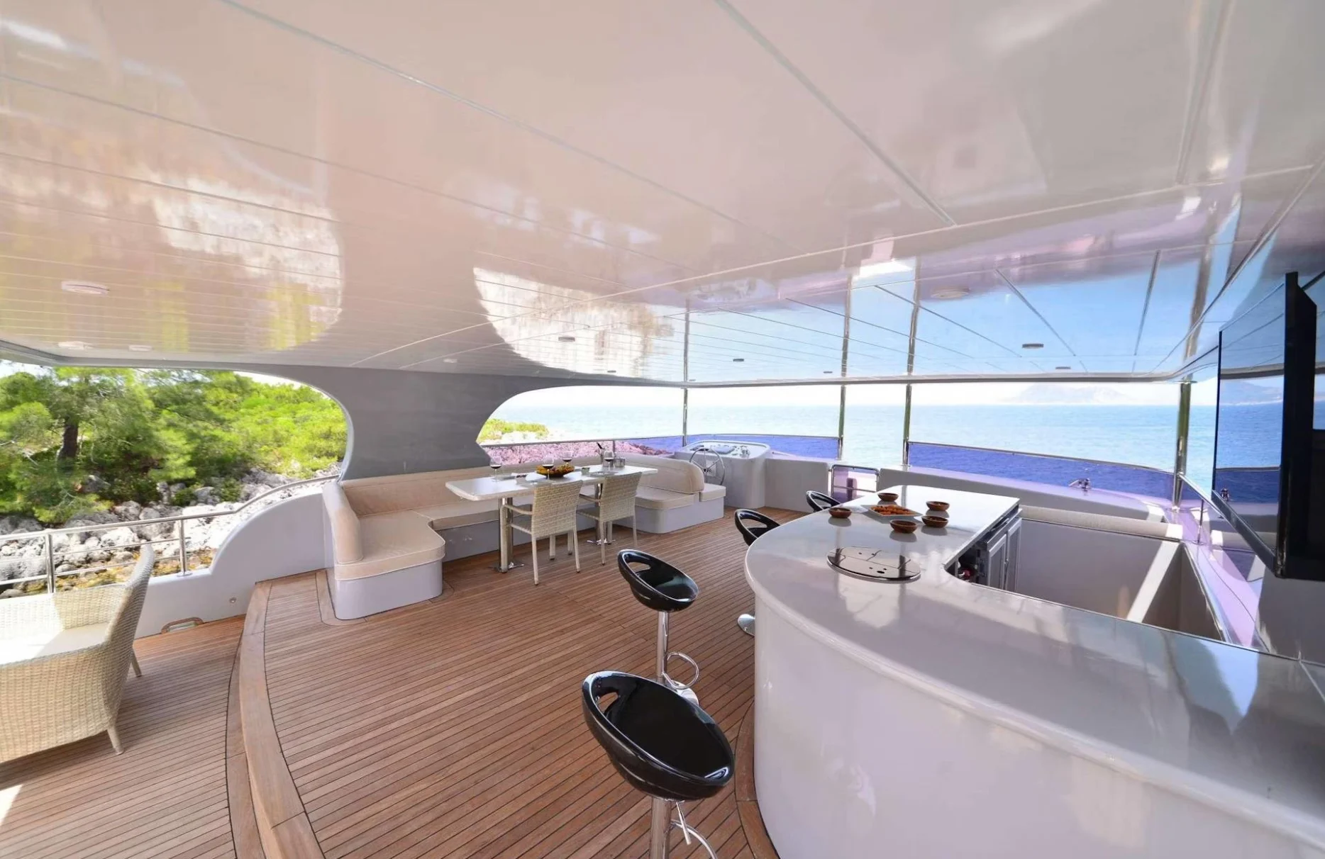 Onboard Immersive, each day unfolds with the promise of serene indulgence and captivating vistas. Begin your morning with a refreshing dip from the swimming platform, followed by a leisurely breakfast on the sun deck. As the day progresses, the allure of the Portuguese bridge beckons for afternoon contemplation, while the exterior bar serves as a vibrant hub for social gatherings as dusk approaches. With underwater lights casting an ethereal glow come nightfall, evenings aboard are transformed into magical experiences of starlit reflections and gentle sea breezes.