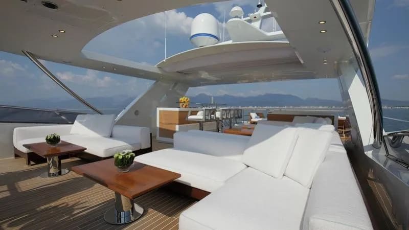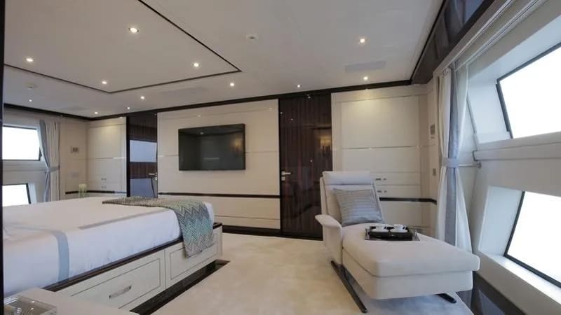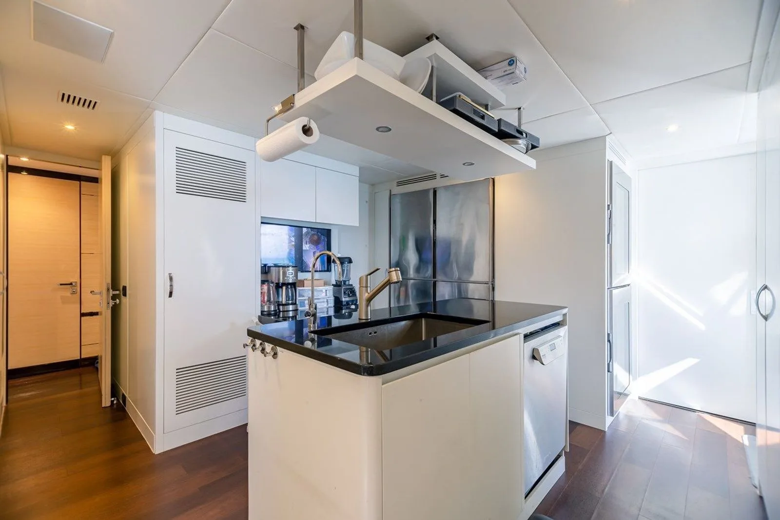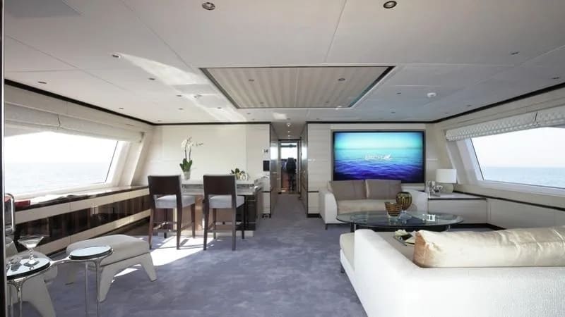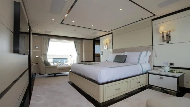 Inspiration’s accommodations are a sanctuary of sophistication, designed to host up to 10 guests in five elegantly appointed cabins. As dawn breaks, the master suite offers a tranquil retreat with its king-sized bed, while the two VIP cabins provide a serene haven for restful nights. A double cabin and a twin cabin balance the layout, making it ideal for family gatherings or intimate escapes. The gentle sway of the yacht and the sound of the ocean provide a soothing backdrop to each night’s rest.