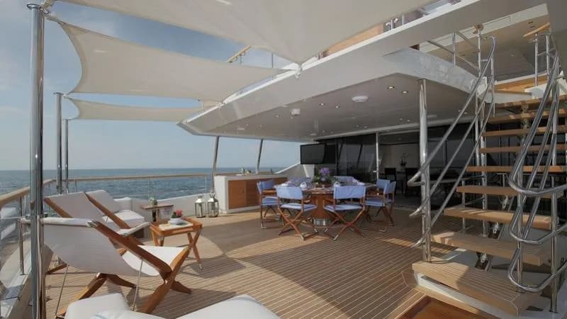 Onboard Inspiration, moments of leisure unfold across exquisitely designed spaces. The sun deck calls for leisurely afternoons under the sun, while the deck jacuzzi offers a soothing retreat with panoramic views. The gym caters to your wellness routine, ensuring you stay invigorated amid the serenity of the sea. Evenings can be spent indulging in gourmet meals prepared at the outdoor bar or enjoying the ambiance of the beach club, where the gentle lapping of waves provides the perfect soundtrack to your evening.
