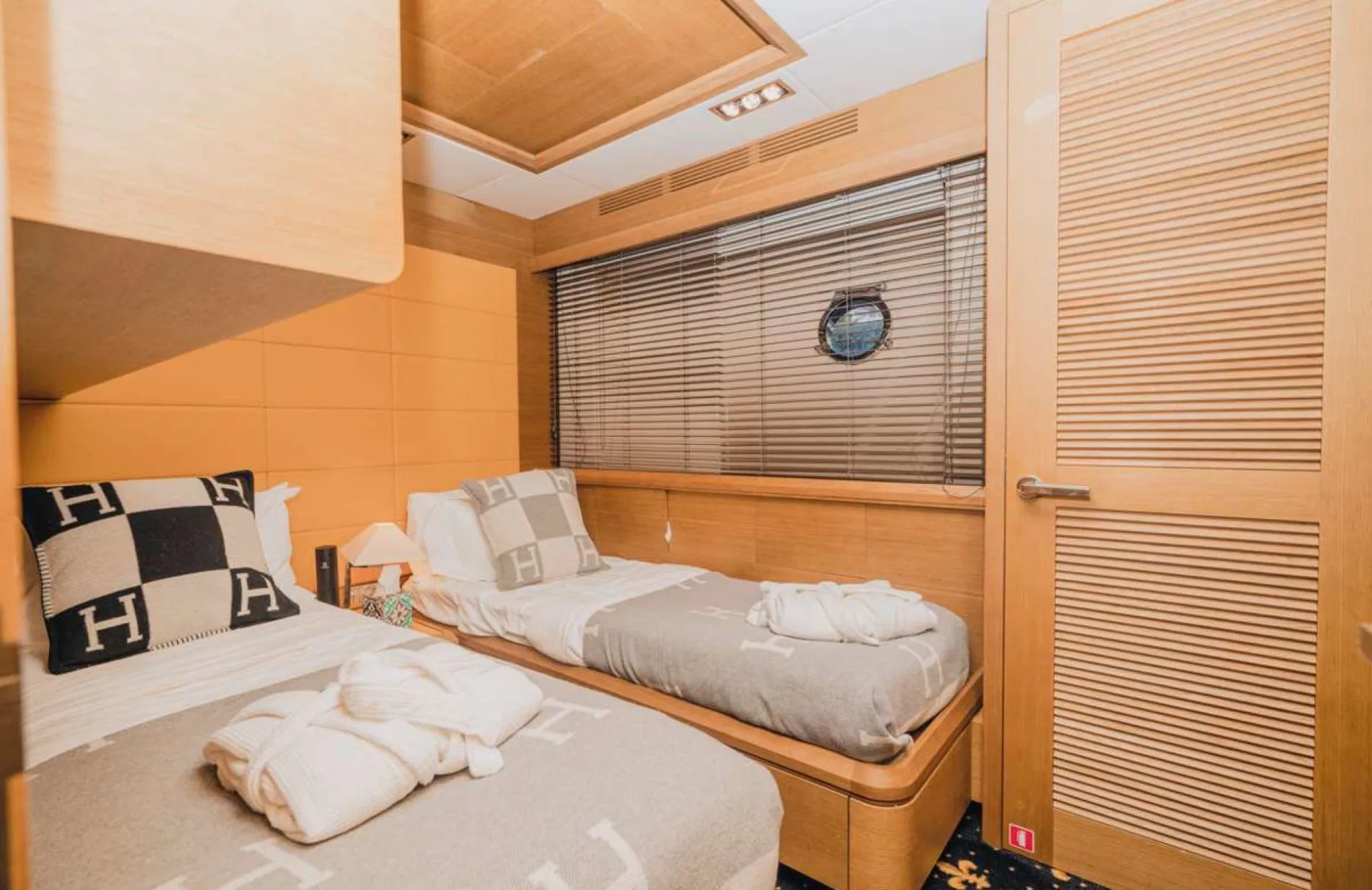 Intervention welcomes up to 10 guests into her exquisitely designed sanctuary, featuring four cabins that cater to your every need. As dawn breaks over the horizon, awaken in the lush embrace of the master suite, where elegance meets unparalleled comfort. The VIP cabin, along with a double and a twin cabin, ensures each guest experiences a restful retreat. These spaces, thoughtfully curated, promise a delightful blend of privacy and shared moments, perfect for families or close-knit groups. Each cabin is a haven, providing the perfect setting for rejuvenation after a day of adventure.
