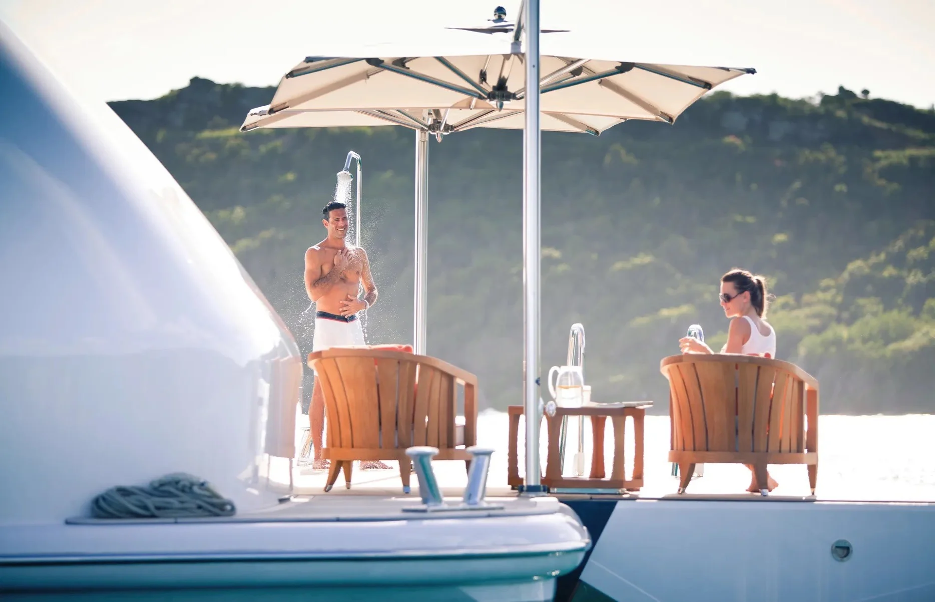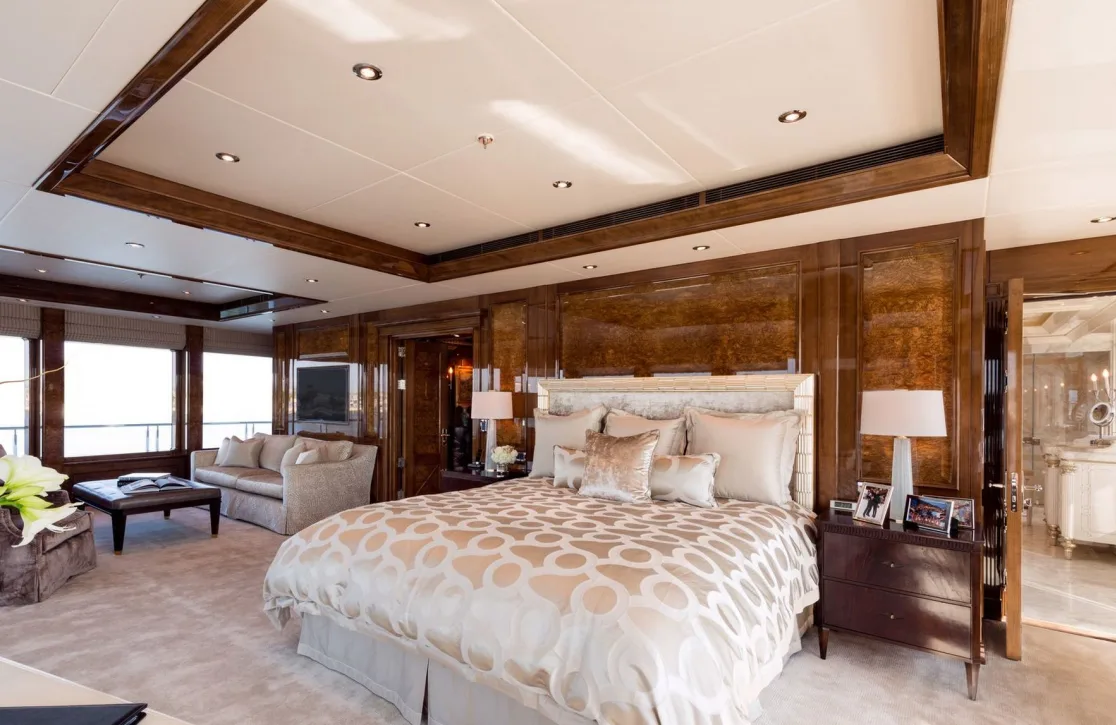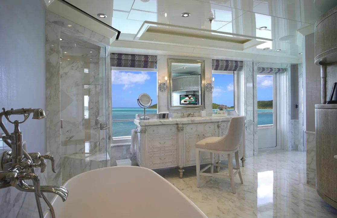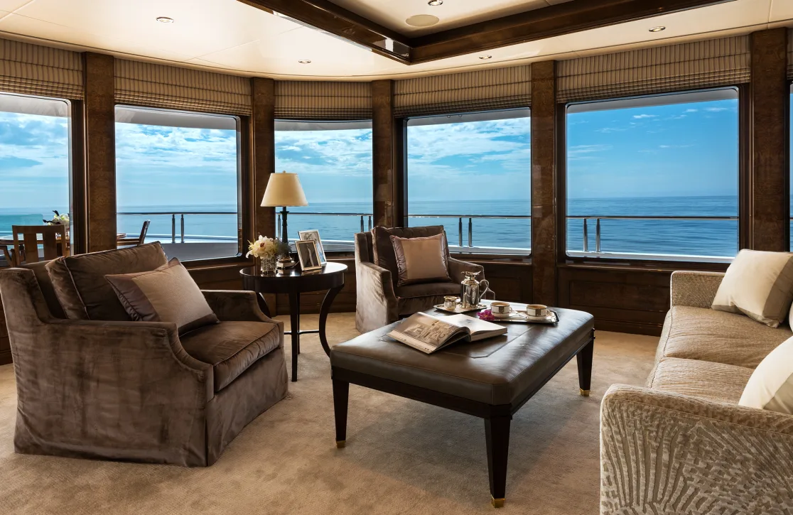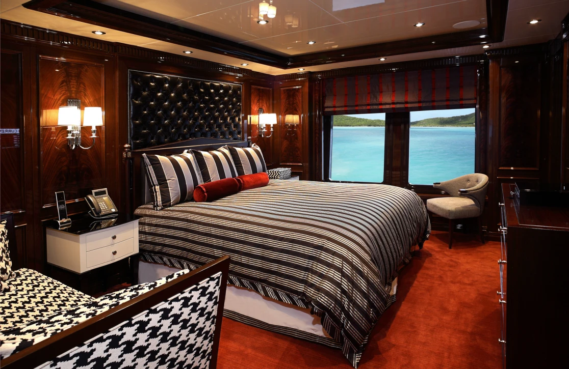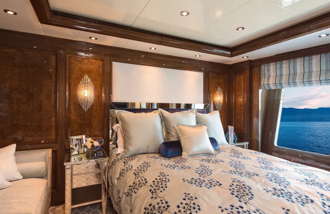 Step into a world where comfort meets tranquility on board Invictus. The yacht’s inviting spaces are designed for leisurely days and vibrant evenings. Picture yourself unwinding in the beach club, where the gentle lap of waves sets a soothing rhythm, or staying active in the state-of-the-art gym with panoramic views. As the sun dips below the horizon, the deck jacuzzi beckons for a relaxing soak under a sky full of stars. Inside, the theater promises cinematic evenings with your favorite films, while the elevator ensures all areas of the yacht are easily accessible. Connectivity is seamless, with Wi-Fi and satellite TV ready to keep you in touch with the world.