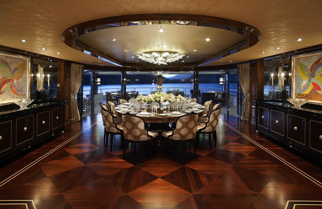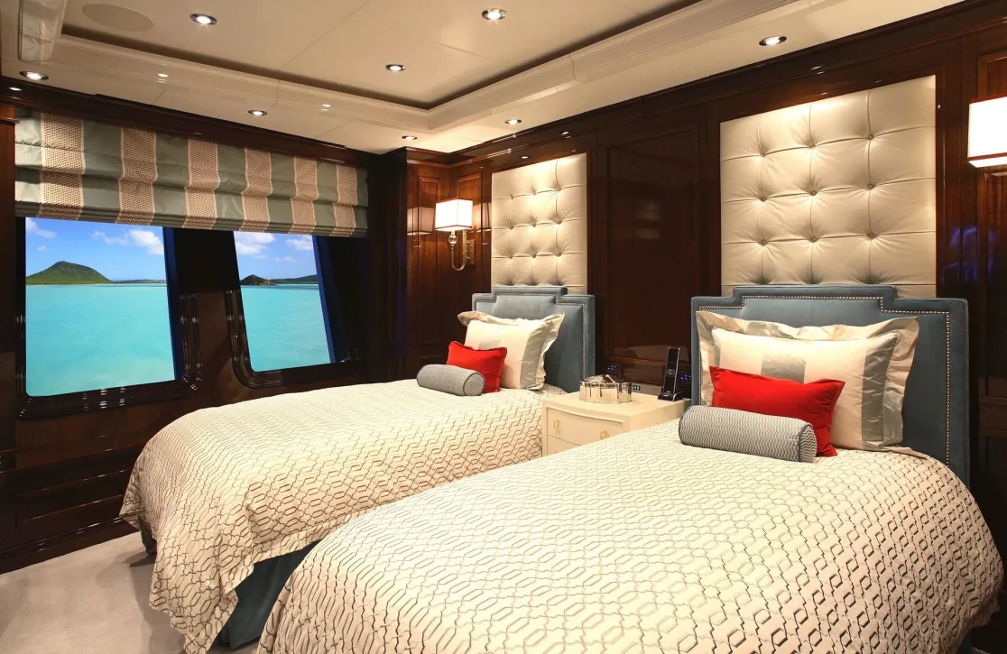 Invictus redefines opulence with her nine elegantly appointed cabins, offering a serene retreat for up to 12 guests. Each morning, wake to the gentle sway of the sea in a master suite bathed in natural light, or one of the six double and two twin cabins, each designed to provide a haven of privacy and comfort. Soft linens and plush furnishings create a cocoon of relaxation, ensuring restful nights and rejuvenating mornings. With a crew of 19 attending to every detail, your stay is marked by impeccable service and an atmosphere of quiet sophistication.