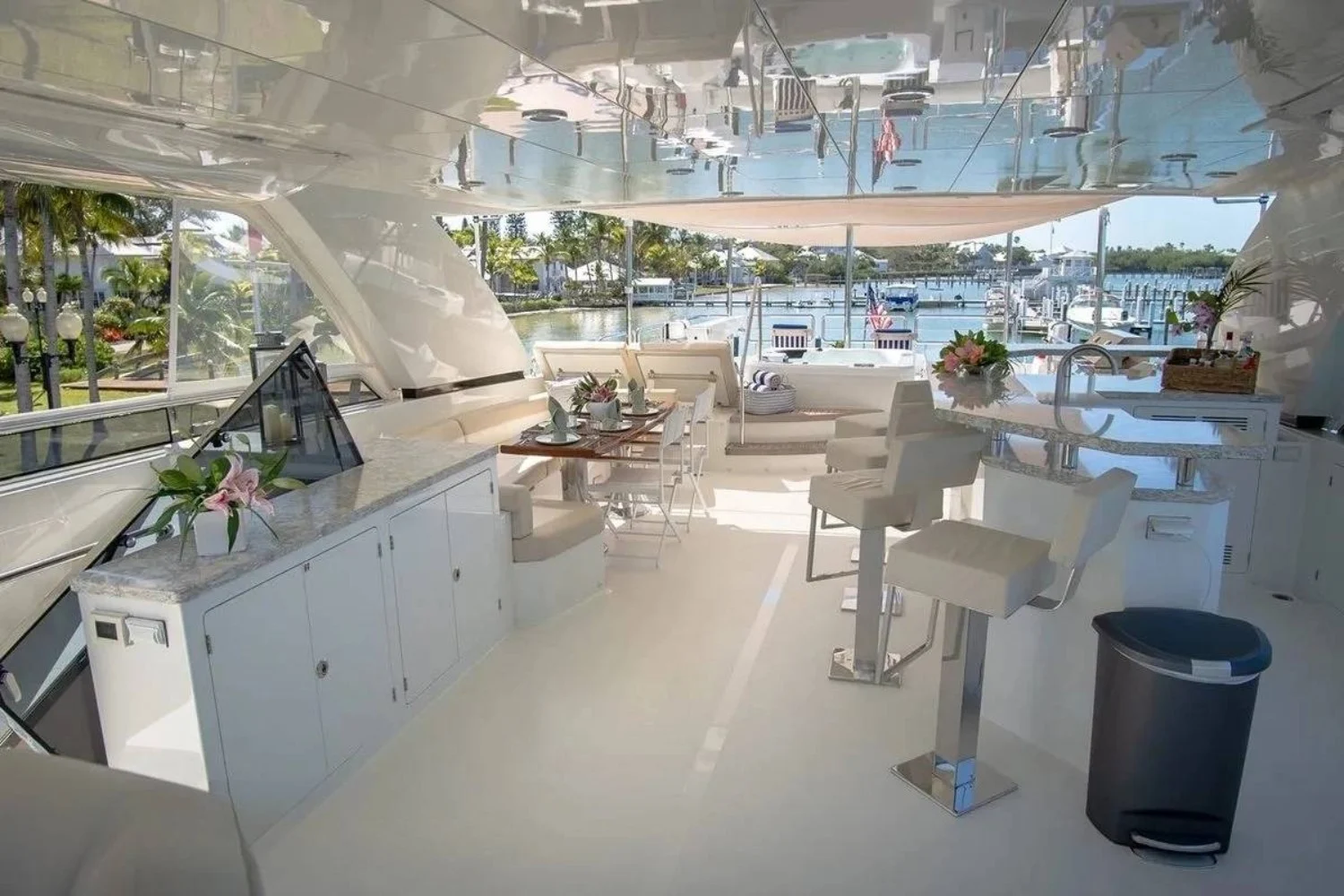 Onboard Iridescence, each moment is a testament to refined living. Begin your day with a rejuvenating dip in the deck jacuzzi, as the ocean breeze gently envelops you. The yacht’s sun deck beckons, offering a haven of comfort with its inviting sunpads and an exterior bar that transforms ordinary afternoons into extraordinary ones. As the day unfolds, retreat to the foredeck seating area—perfect for intimate conversations or simply savoring the breathtaking views. Throughout, the advanced air conditioning system ensures that every guest remains enveloped in comfort, no matter the temperature outside.