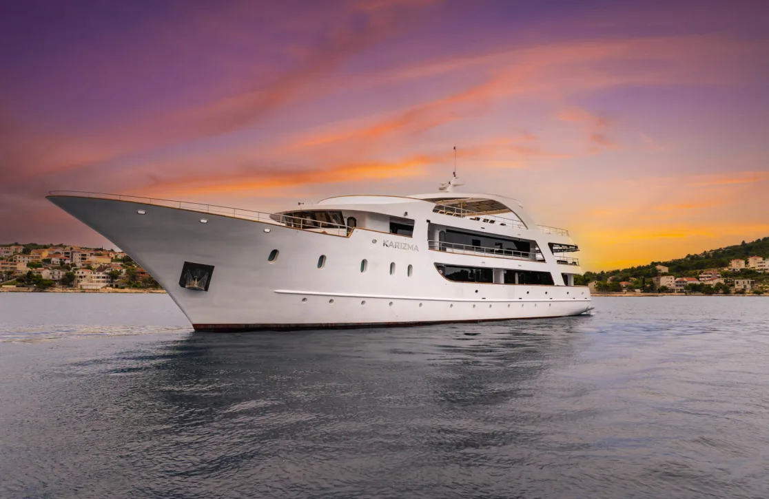 Karizma invites you to embark on a journey where sophistication meets adventure. Spanning 48 meters and accommodating up to 36 guests, this motor yacht redefines the art of exploration, seamlessly blending indoor and outdoor living. Built in 2016 and recently refitted, Karizma offers not just a voyage, but a curated experience of elegance and freedom. Imagine a week of sun-drenched mornings on deck, afternoons spent exploring hidden coves, and evenings where the horizon fades into a star-studded sky, all while the attentive crew of eight ensures every detail is in place for your ultimate relaxation.