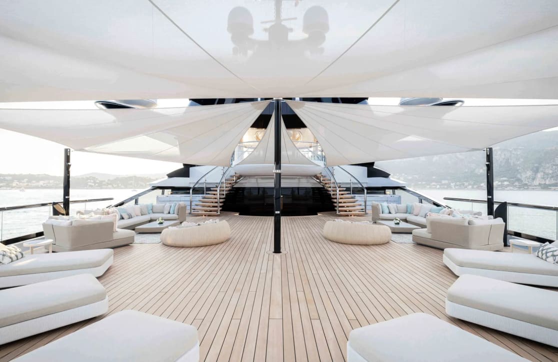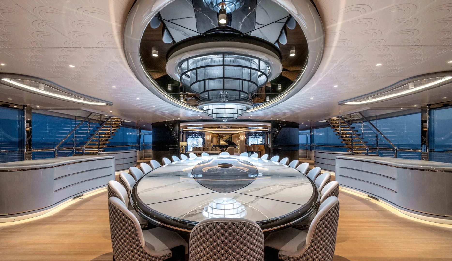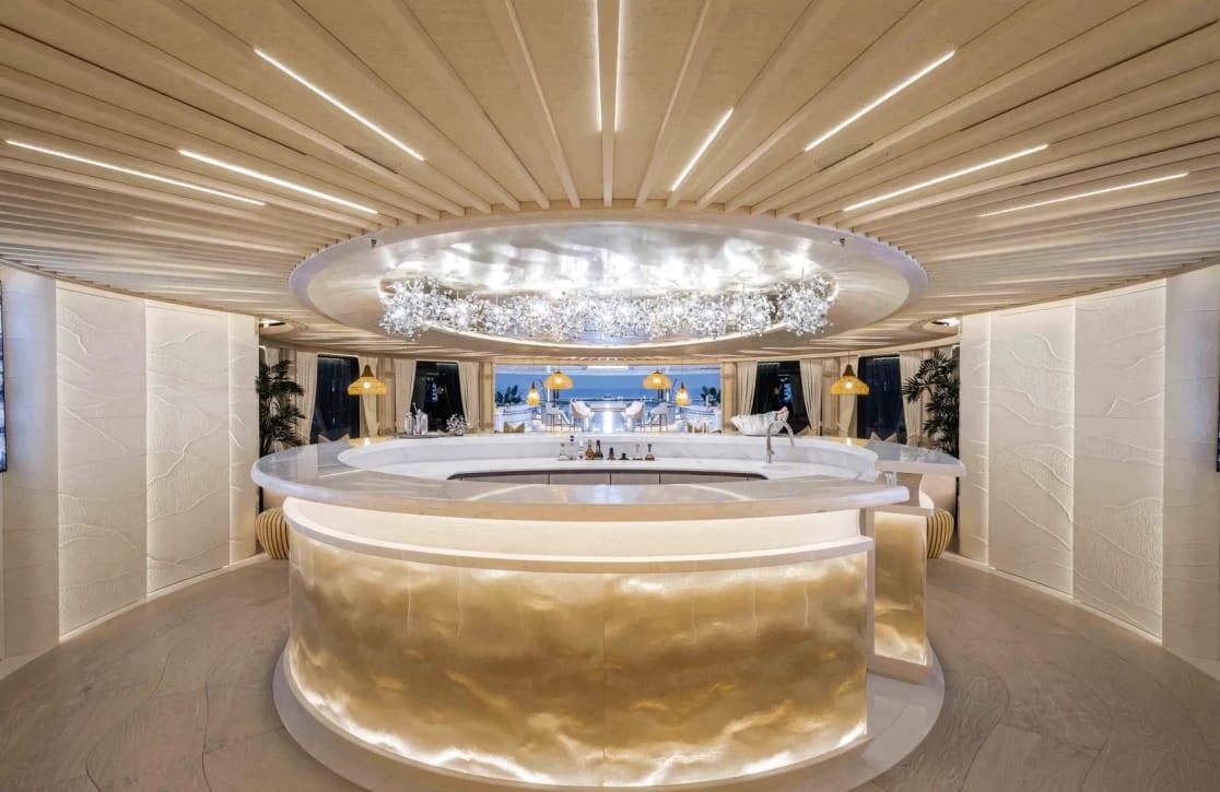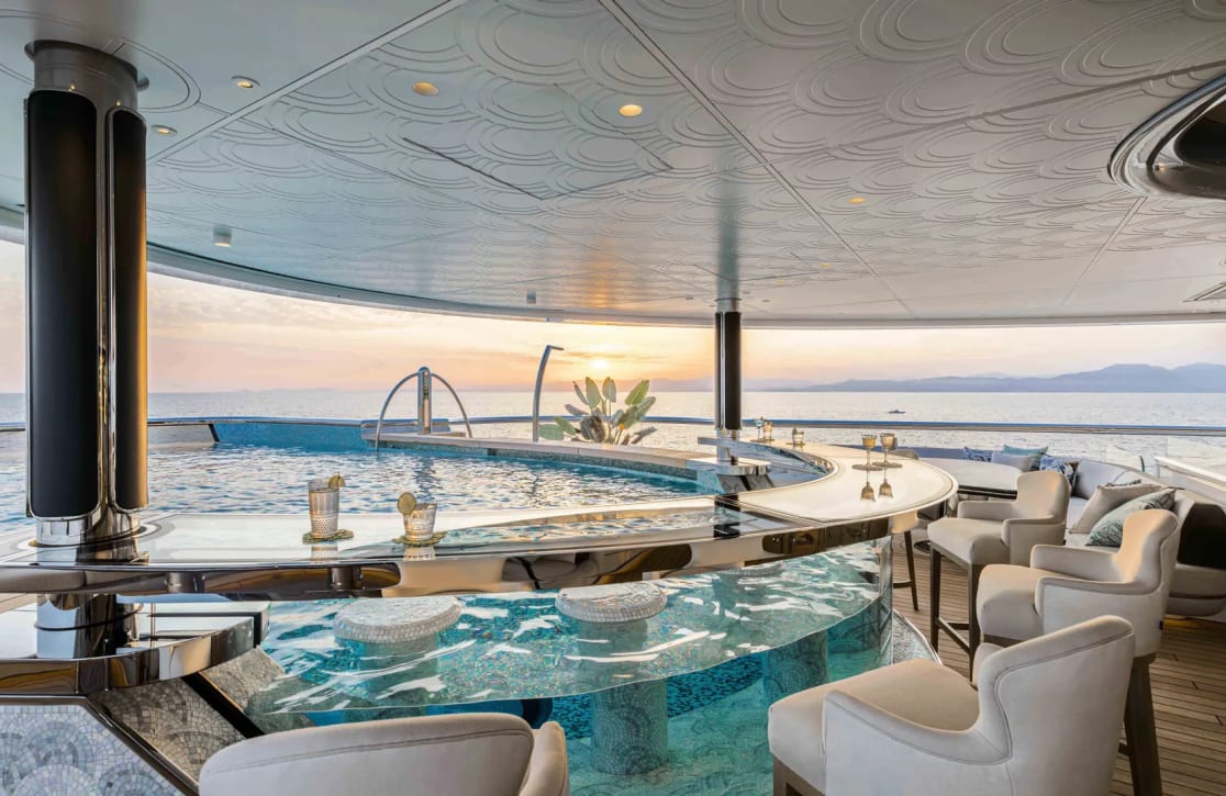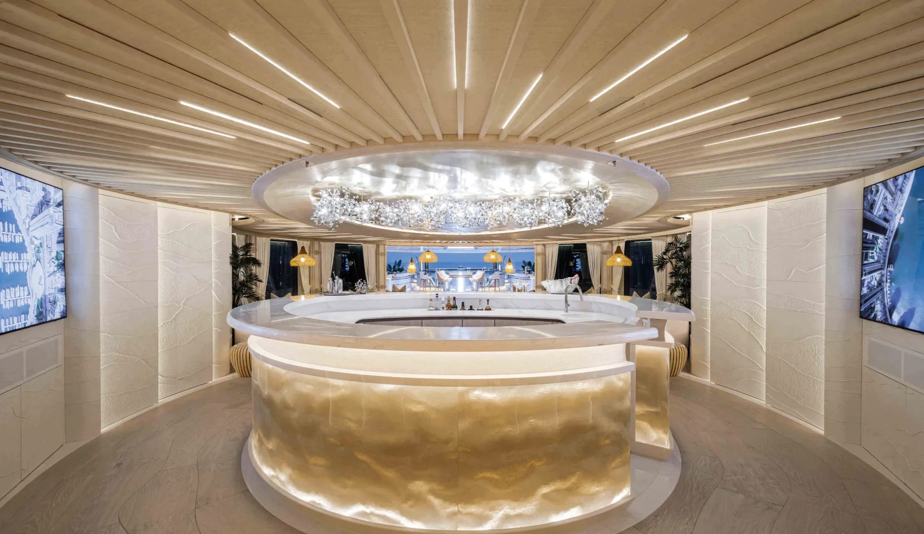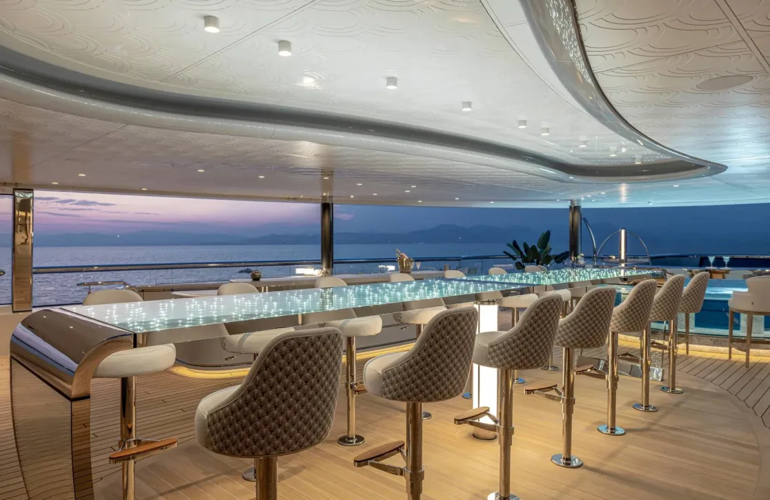 The ambiance aboard Kismet is one of understated elegance and serene sophistication. As you stroll through her spacious interiors, the beauty room and spa offer havens of relaxation, while the outdoor cinema invites you to enjoy films beneath the open sky. A dip in the swimming pool or a moment in the deck jacuzzi provides a refreshing escape, and the hammam and sauna offer a journey into rejuvenation. The gym caters to your fitness regime, and the beach club is a perfect space for leisurely afternoons. Each space is crafted to enhance your experience, whether you’re seeking solitude or social connection.