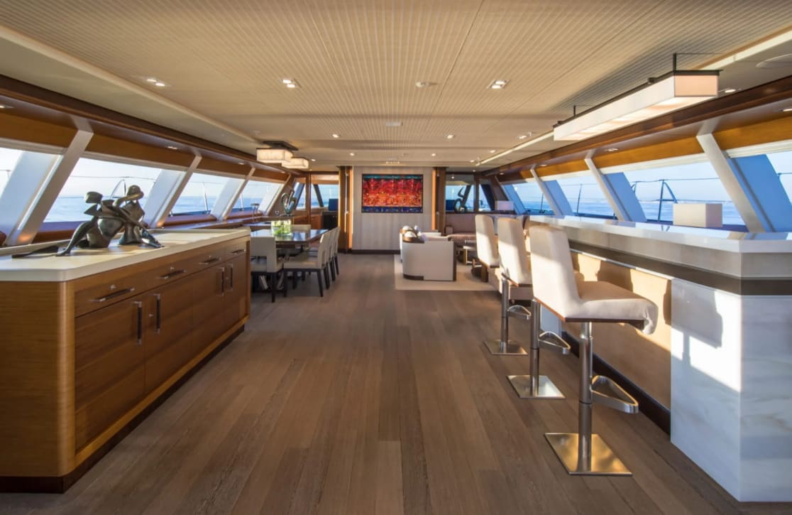 Step into a world where comfort and style are flawlessly intertwined. Kokomo’s expansive decks provide the perfect setting for sun-drenched afternoons and starlit evenings, with a deck jacuzzi offering a prime spot to unwind. The soothing embrace of air conditioning ensures a haven of cool tranquility, while seamless Wi-Fi connectivity lets you stay in touch with the world, should you wish. Every space on Kokomo is designed to enhance your journey, from intimate gatherings to grand celebrations under the vast sky.