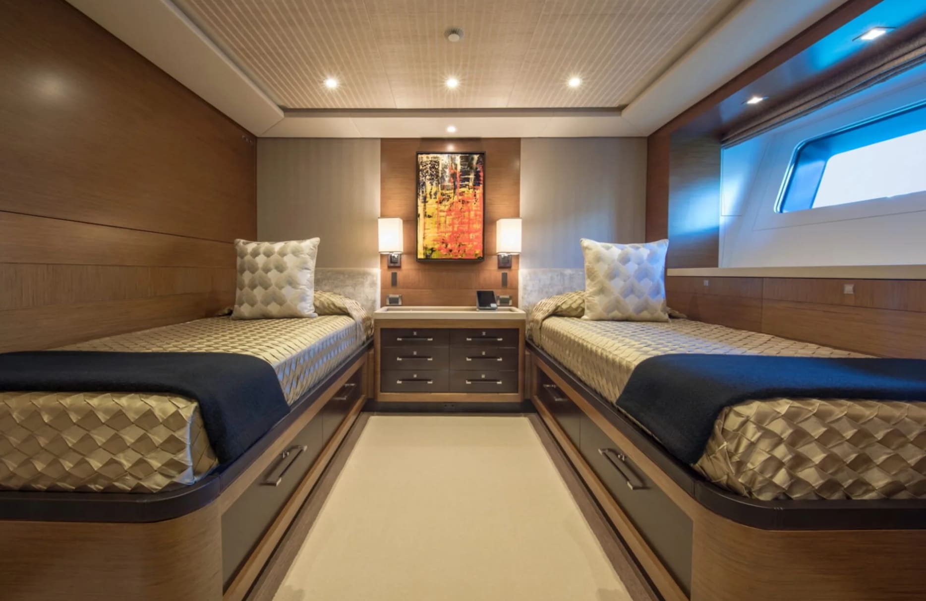 Kokomo graciously accommodates up to 10 guests in five meticulously designed cabins. The master suite, a sanctuary of elegance, promises restful nights and refreshing mornings. A VIP stateroom, a double cabin, and two twin cabins, thoughtfully equipped with additional pullman beds, ensure that every guest finds their perfect retreat. Awaken each day to the gentle lull of the ocean, where the subtle luxury of your surroundings complements the breathtaking views just beyond your window.