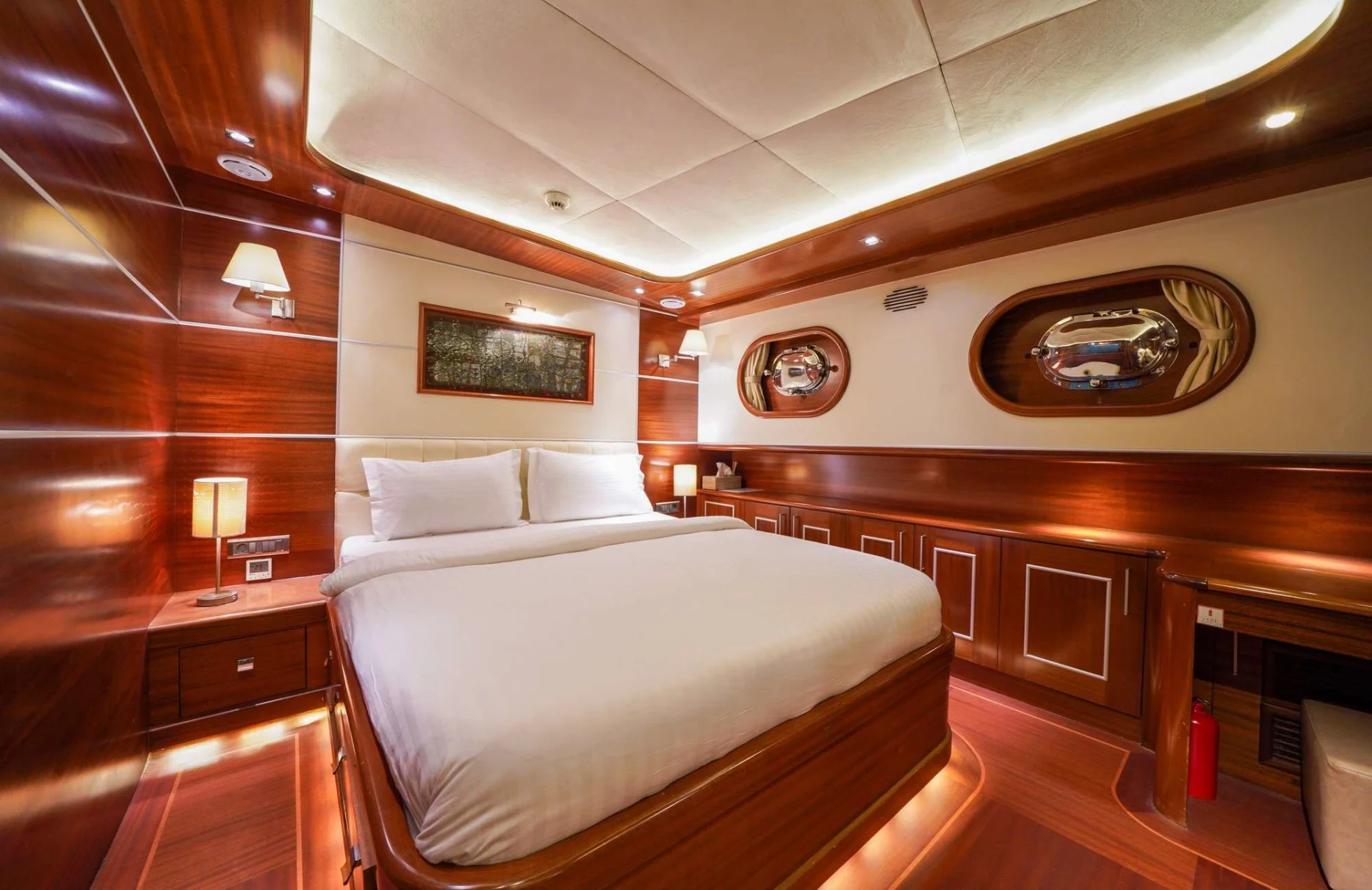 La Bella Vita welcomes up to 12 guests into its embrace, with six elegantly appointed cabins that promise restful nights and rejuvenating mornings. Each stateroom is a haven of tranquility, thoughtfully designed with a mix of king, queen, and single beds to cater to your every comfort. As the gentle sway of the yacht lulls you to sleep, awaken to the soft glow of dawn and the promise of another day filled with discovery and delight.