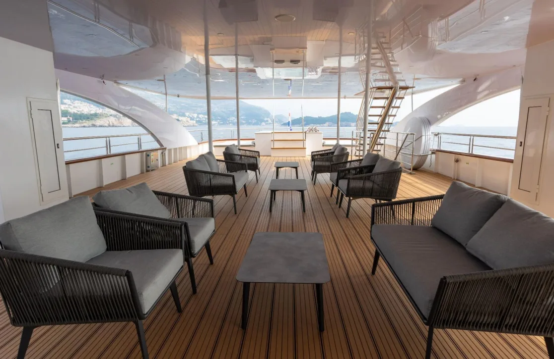 Aboard Lady Eleganza, guests are invited to indulge in an array of thoughtfully designed spaces where every detail caters to comfort and enjoyment. The yacht’s interior seamlessly blends modern convenience with timeless elegance, featuring climate-controlled environments that ensure comfort no matter the season. Whether you’re unwinding with a book in a cozy corner or enjoying an evening of lively conversation with friends, the onboard Wi-Fi keeps you connected, allowing you to share your experiences in real-time. As day turns to night, the ambiance shifts effortlessly from sunlit decks to intimate, softly lit spaces perfect for stargazing or an impromptu dance under the moonlight.