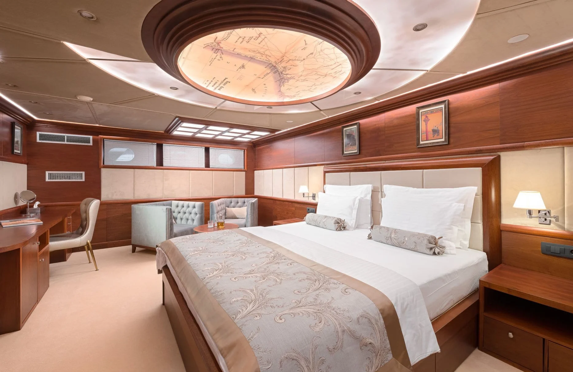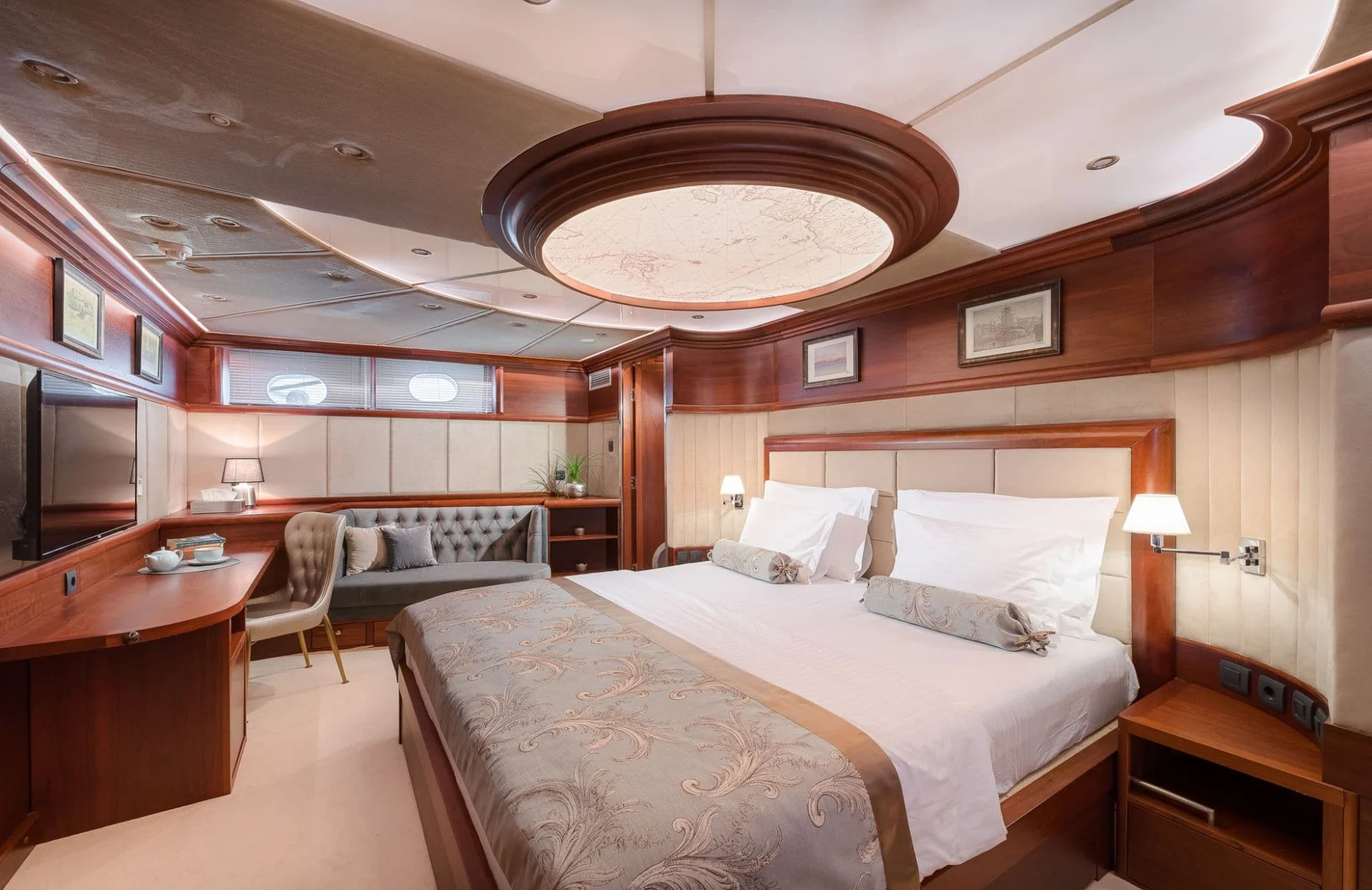 Lady Gita’s accommodations redefine comfort and elegance, offering a tranquil retreat for up to 12 guests. The master suite, along with two double cabins and convertible configurations, ensures a restful night’s sleep with plush bedding and exquisite design. Waking up to the gentle lull of the sea, you’ll find yourself enveloped in an atmosphere of serenity, where each cabin provides a private haven to savor the beauty of your surroundings.
