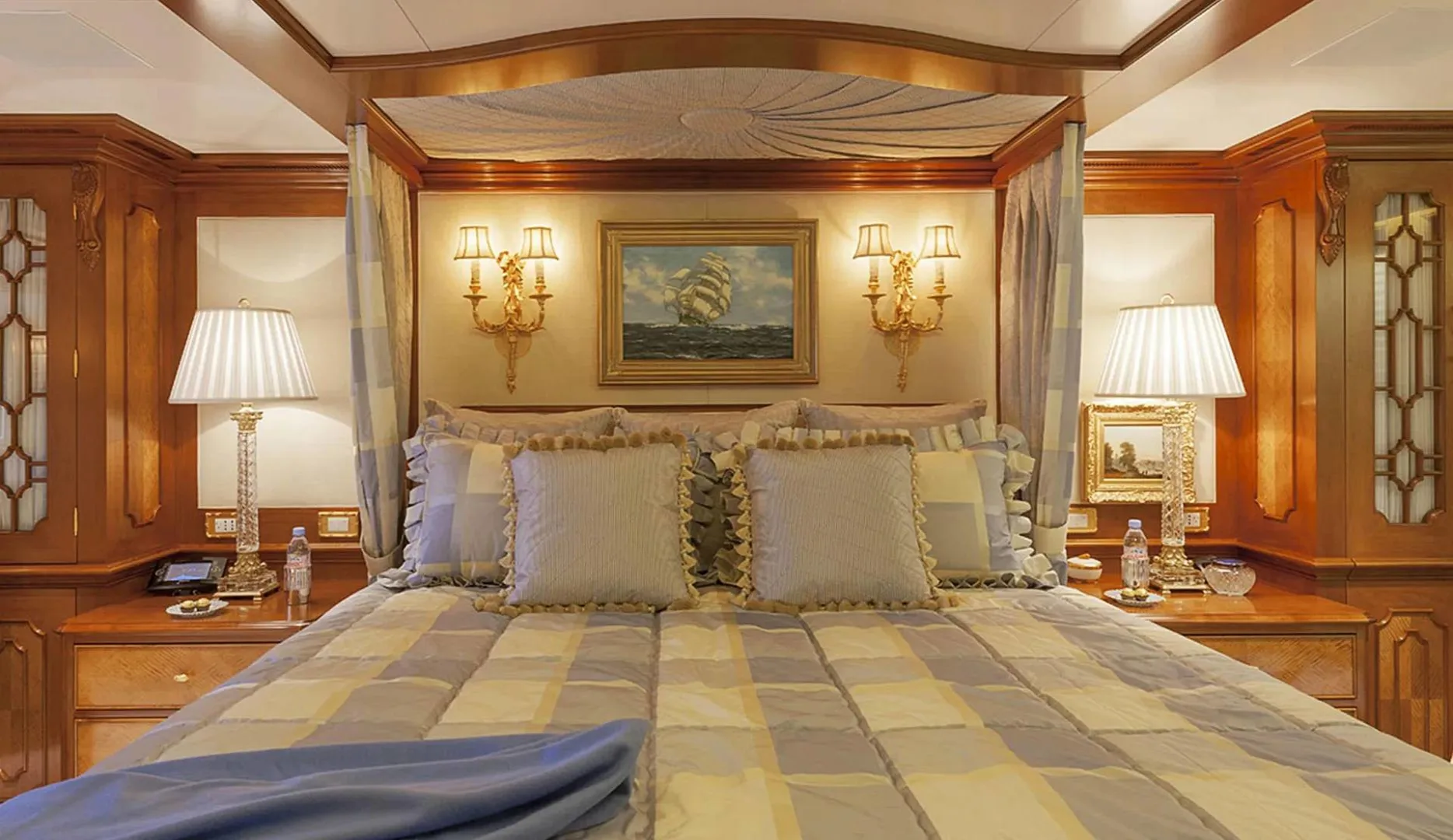 Retreat to the sanctuary of Lady Kathryn V’s sumptuous accommodations, where up to 12 guests are enveloped in tranquility across six exquisite cabins. Each room is a haven, adorned with plush bedding configurations including king and queen-sized options, inviting you to wake up refreshed to the gentle sway of the ocean. The master suite stands as a pinnacle of comfort, while the VIP and double cabins ensure every guest experiences the yacht’s gracious hospitality. Here, mornings are greeted with the soft light streaming through your cabin windows, offering a perfect start to the day’s adventures.