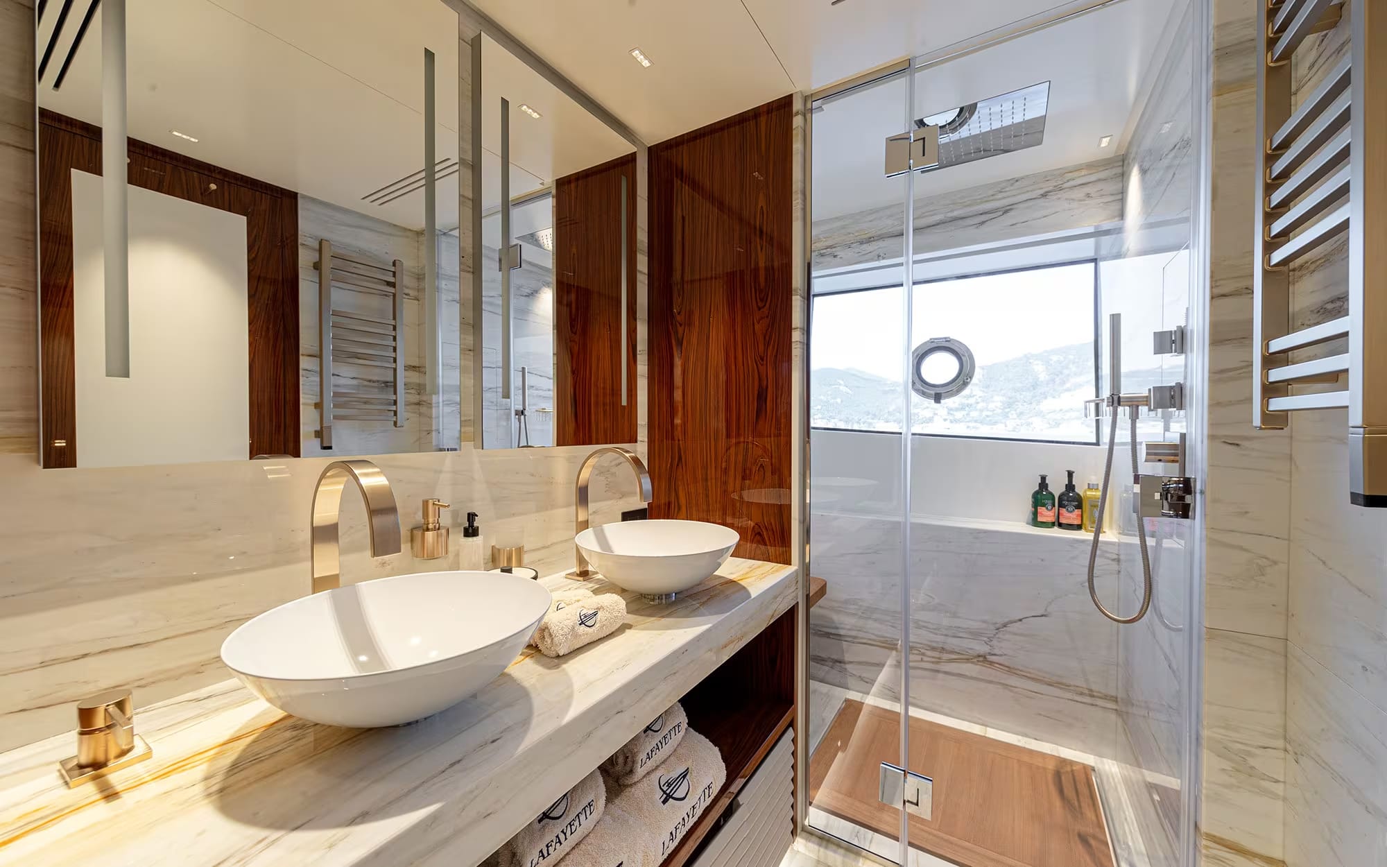 With Lafayette, the journey is as enchanting as the destination. Her efficient GRP hull and superstructure ensure a smooth passage, while her thoughtfully designed interiors and expansive decks offer a unique blend of intimacy and openness. Whether lounging in the sun or diving beneath the waves, Lafayette embodies a lifestyle of refined adventure, inviting you to discover new horizons both on board and ashore.