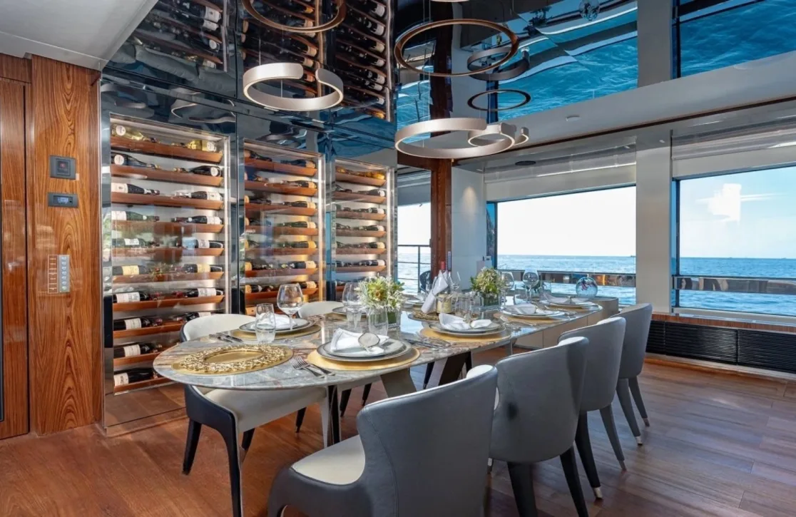 On Lafayette, every moment is an opportunity to indulge in elegant leisure. As the day unfolds, retreat to the sun deck to bask in warmth, or find tranquility in the deck jacuzzi as the world drifts by. The exterior bar serves as a convivial hub, perfect for sharing stories and toasting to new adventures under the stars. With Wi-Fi to keep you connected and at-anchor stabilizers ensuring comfort, the yacht’s spaces invite you to unwind and savor the art of relaxation. Gym equipment caters to wellness enthusiasts, providing a refreshing balance to the leisurely pace of life aboard.