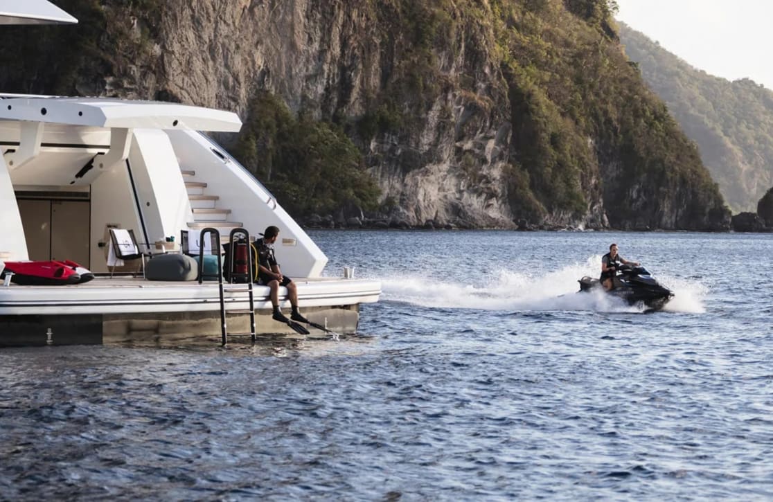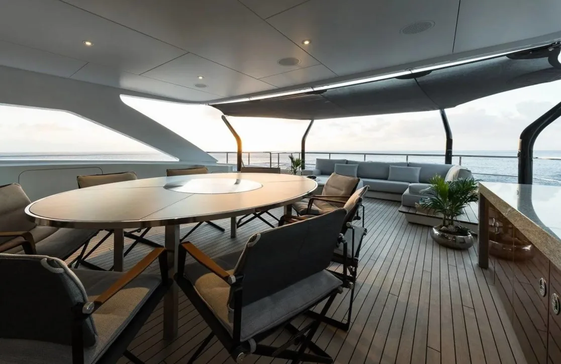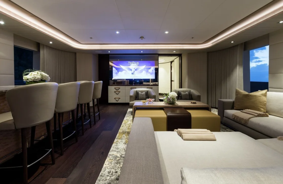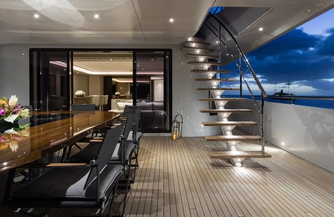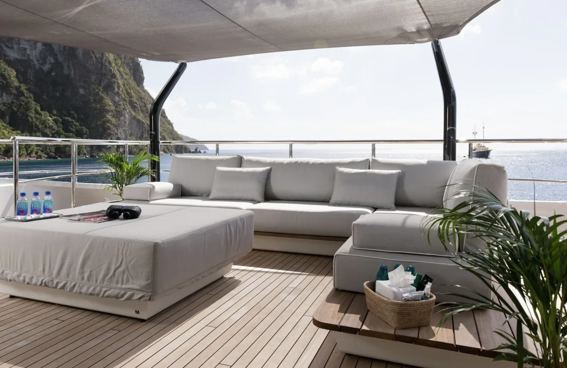 Laurentia’s decks are a sanctuary for relaxation and entertainment. The deck jacuzzi beckons for an evening under the stars, complemented by the gentle breeze of the open sea. An outdoor cinema transforms evenings into magical nights of film beneath the sky, while the beach club offers a seamless transition to tranquil sunbathing at the water’s edge. Fitness enthusiasts will appreciate the onboard gym equipment, ensuring wellness is never far from reach. High-speed Wi-Fi and air conditioning maintain comfort and connectivity, allowing you to savor every moment in perfect ease.