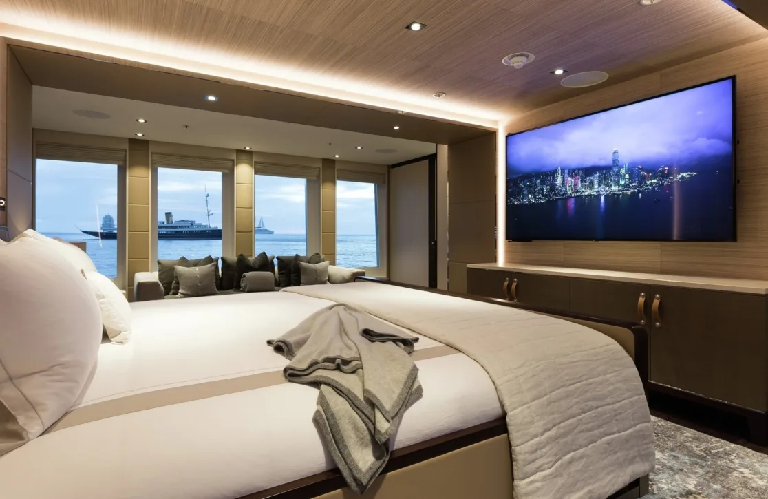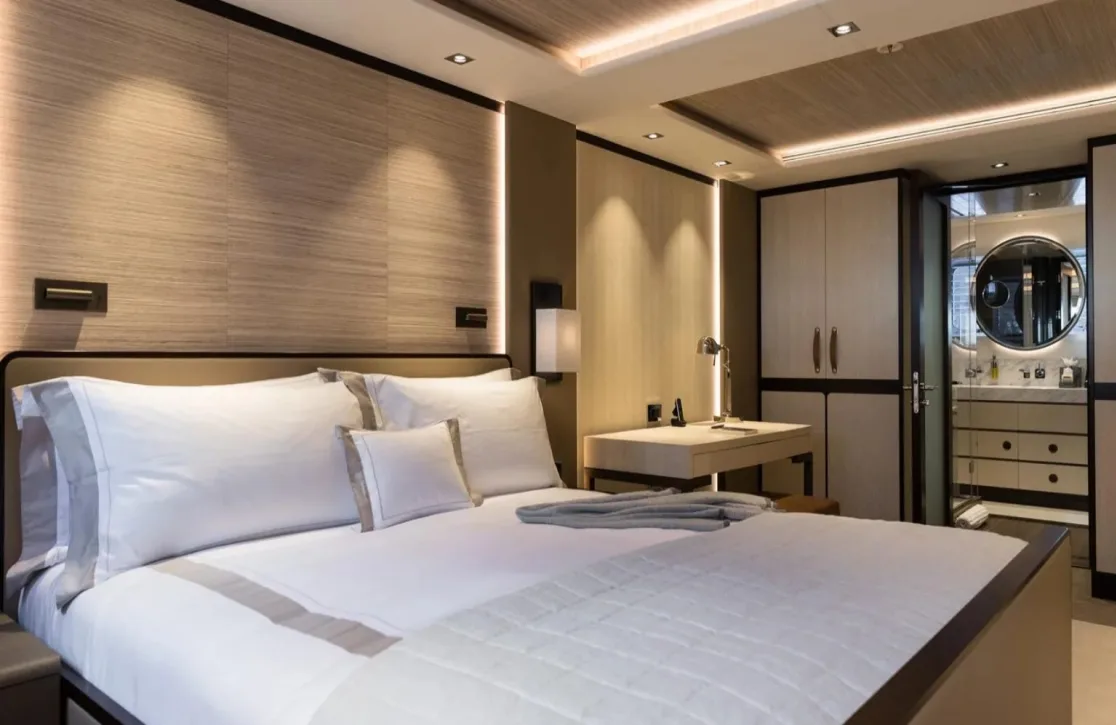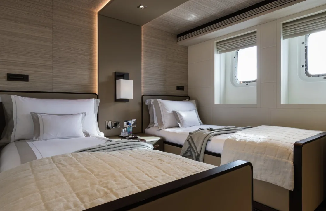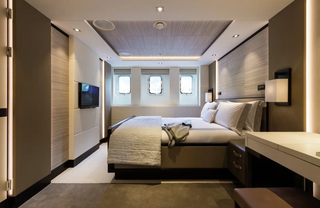 With six elegantly appointed cabins, Laurentia accommodates up to 12 guests in profound comfort. The master suite, a haven of tranquility, offers a serene escape with panoramic views. Each cabin, designed with meticulous attention to detail, provides a restful retreat after a day of exploration. The gentle lull of the sea and the refined interiors ensure waking aboard is a refreshing experience, as sunlight filters through and the promise of a new day on the water unfolds.
