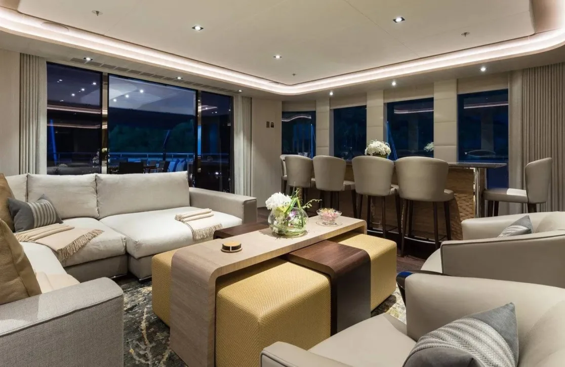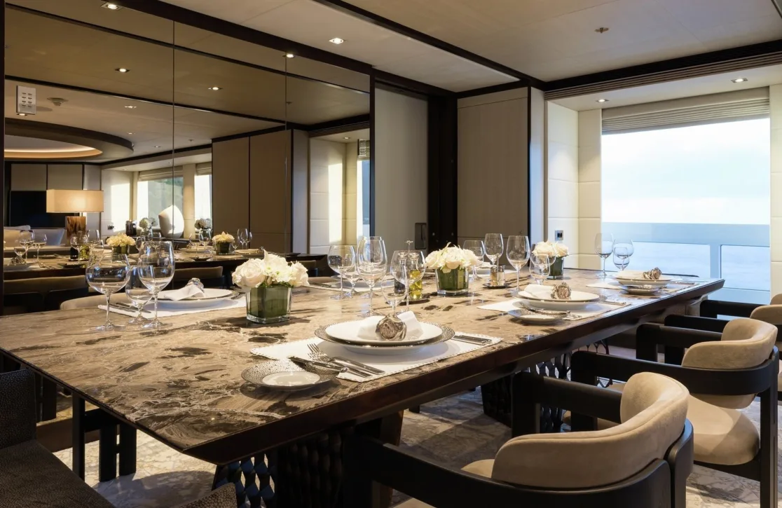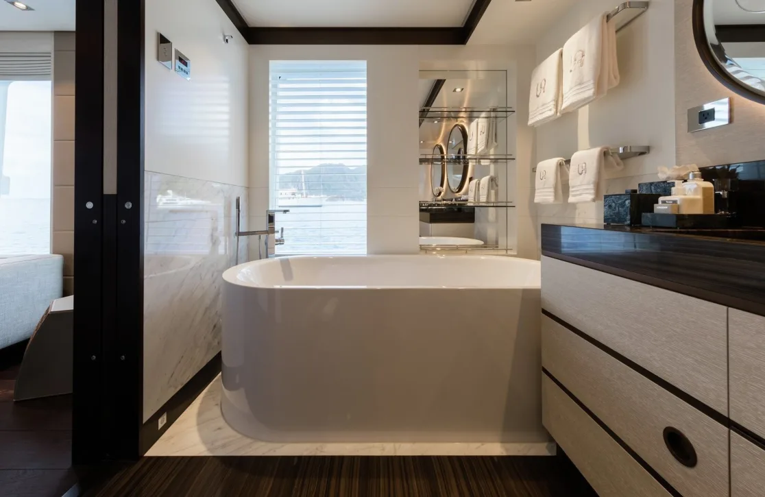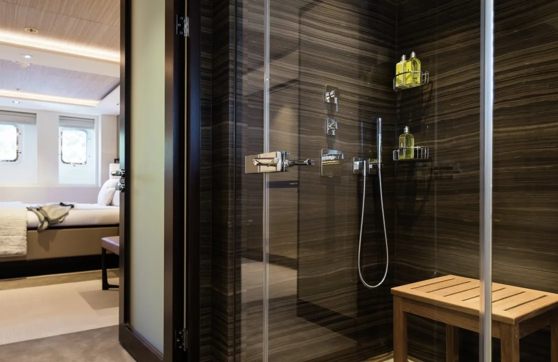 With six elegantly appointed cabins, Laurentia accommodates up to 12 guests in profound comfort. The master suite, a haven of tranquility, offers a serene escape with panoramic views. Each cabin, designed with meticulous attention to detail, provides a restful retreat after a day of exploration. The gentle lull of the sea and the refined interiors ensure waking aboard is a refreshing experience, as sunlight filters through and the promise of a new day on the water unfolds.