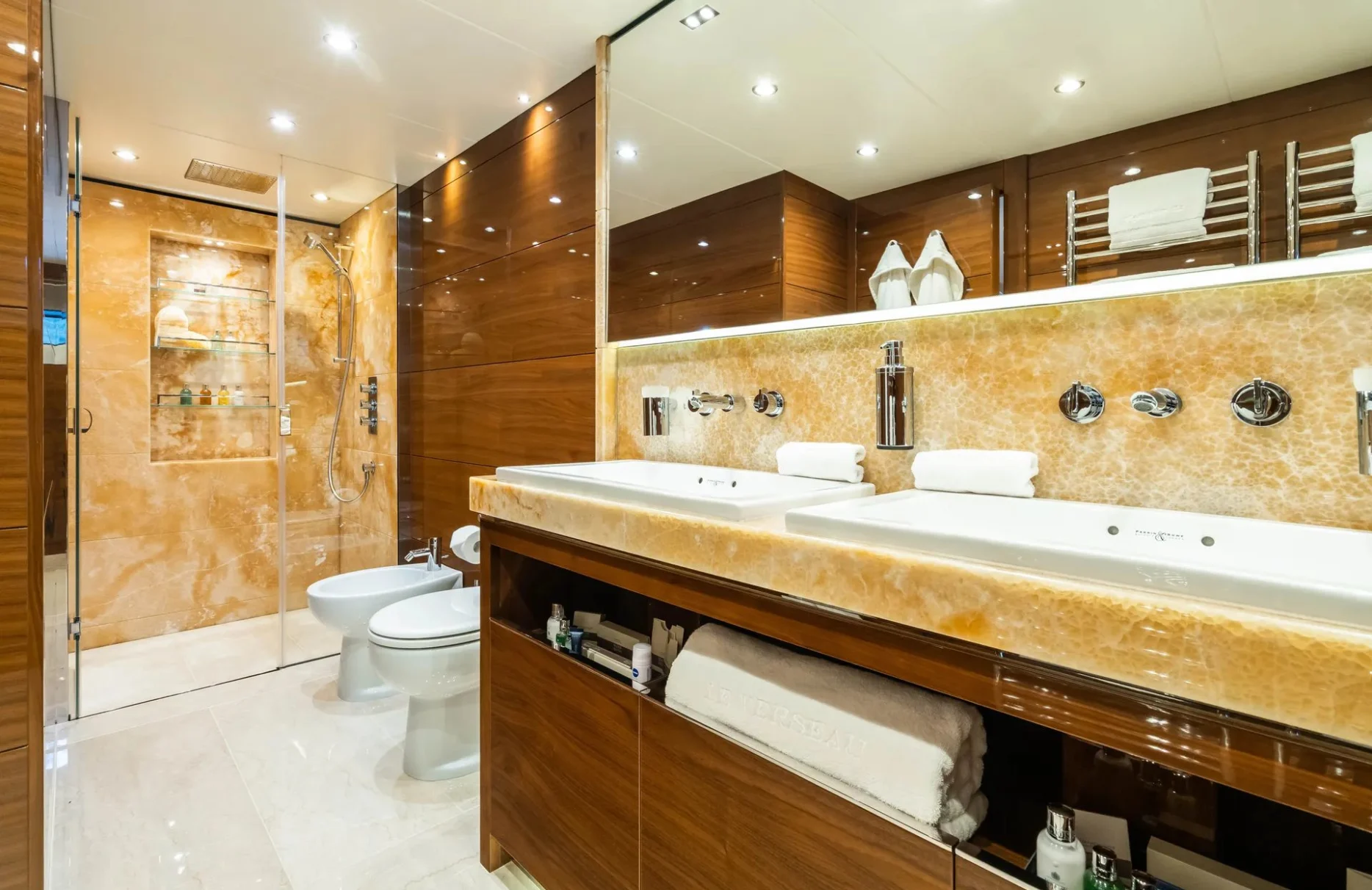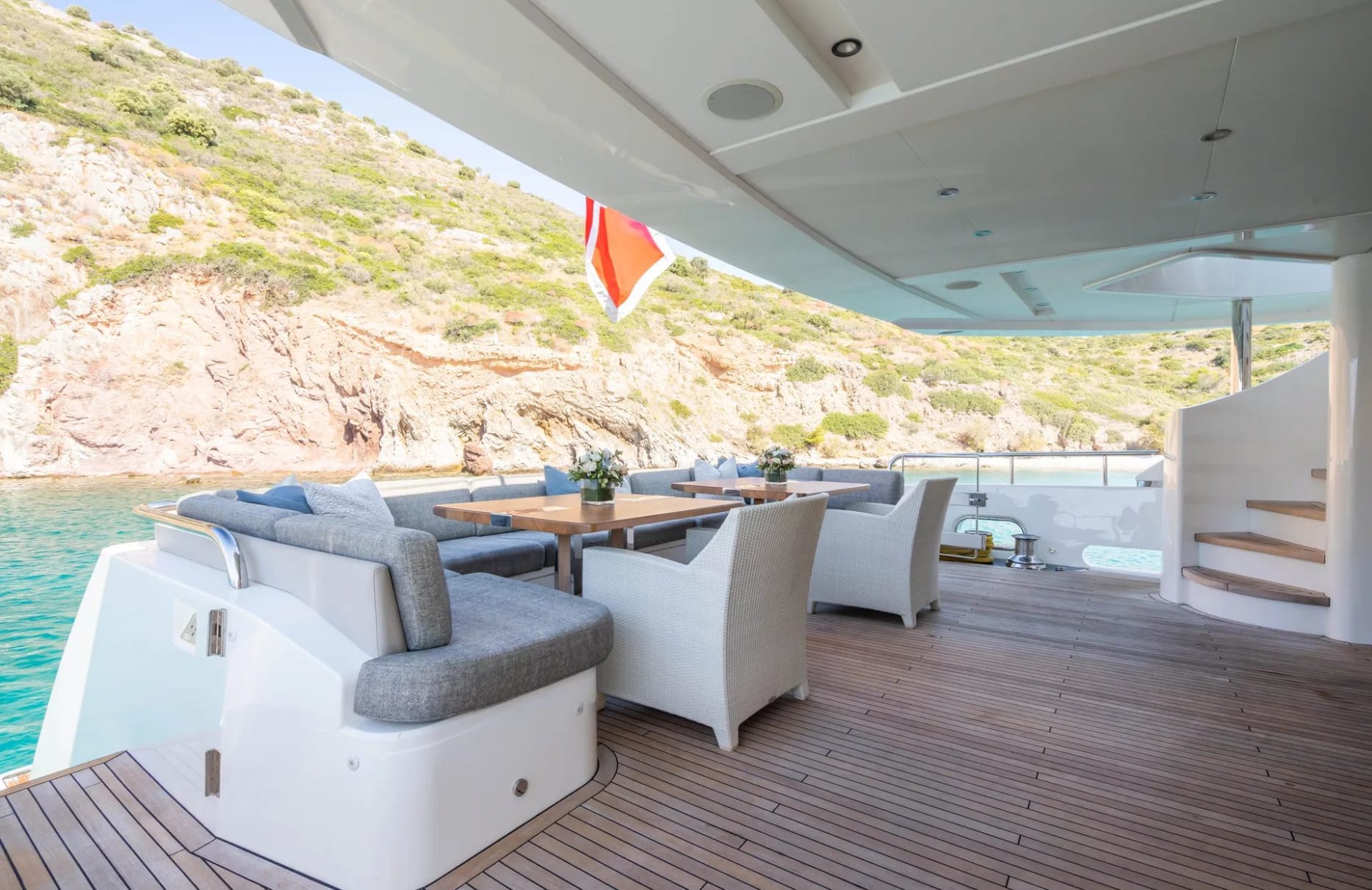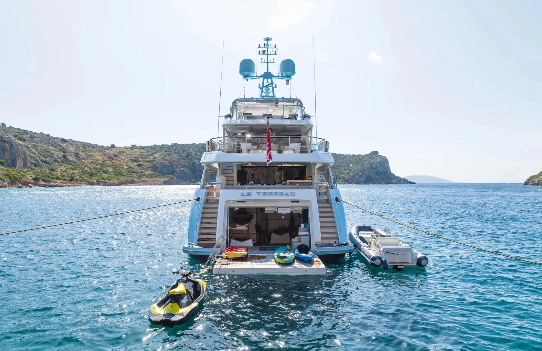 Aboard Le Verseau, every moment is crafted for delight. Unwind in the deck Jacuzzi, where the gentle sea breeze complements the stunning vistas. The yacht’s sun deck becomes your private sanctuary, perfect for sunbathing or an evening under the stars. Stay connected with the world through comprehensive Wi-Fi, while state-of-the-art air conditioning ensures your comfort in any climate. With spaces for both intimate relaxation and lively socializing, Le Verseau invites you to savor every moment.