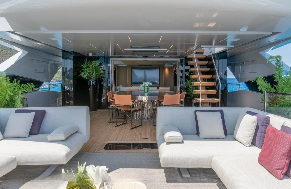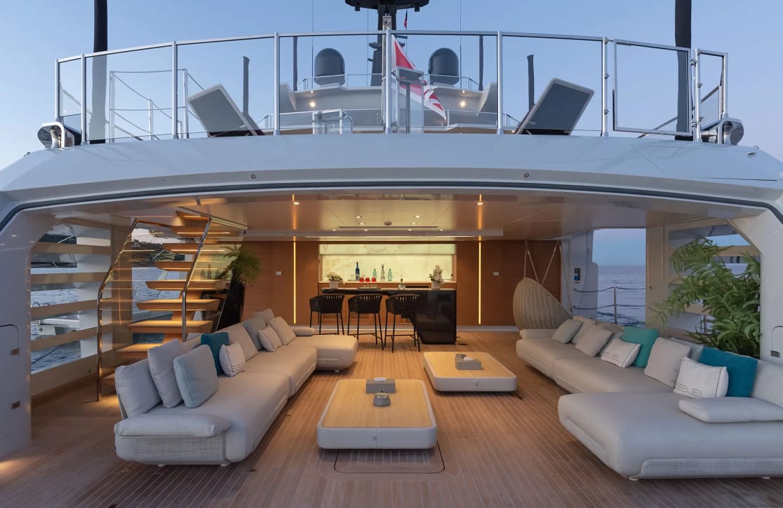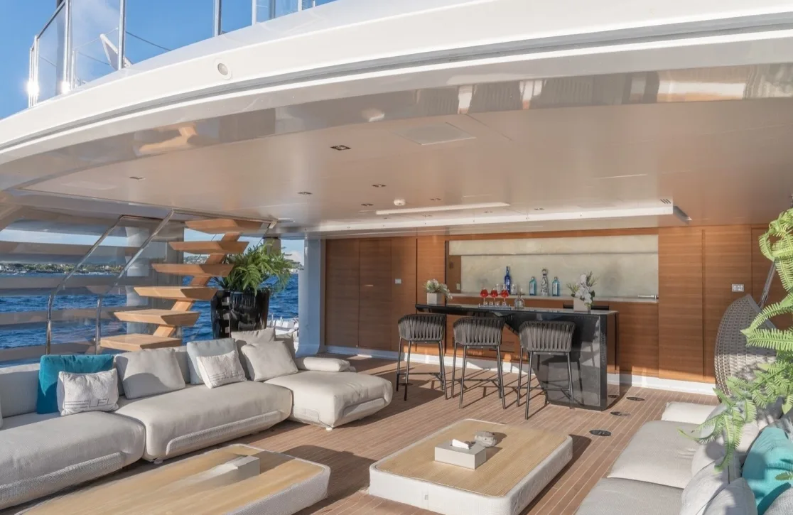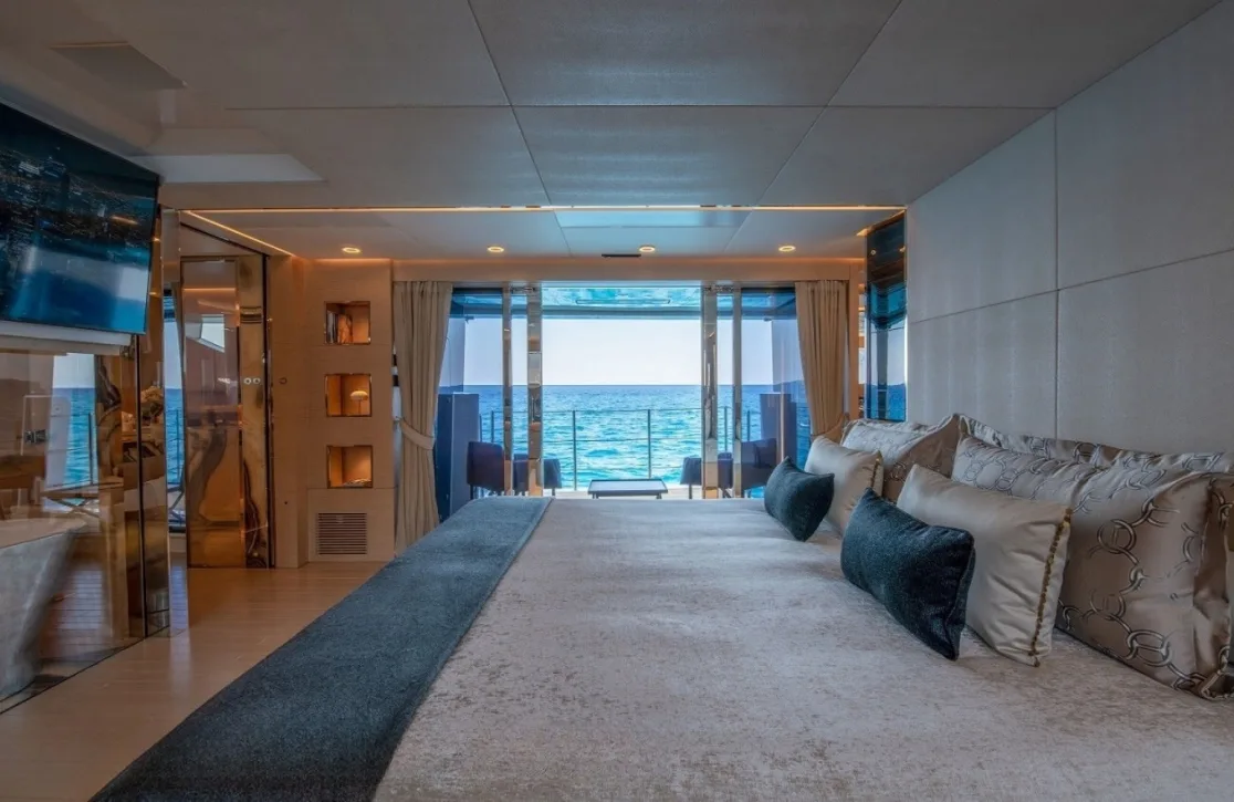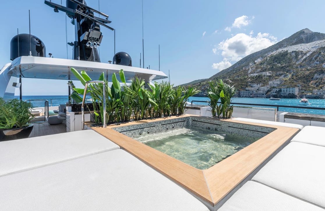 Aboard ‘LEL,’ every detail is curated to ensure a remarkable experience, offering spaces that harmonize relaxation and entertainment. Unwind in the luxurious deck jacuzzi, where panoramic ocean views elevate each moment to a tranquil escape. The beach club and foredeck seating with a table create perfect settings for sun-drenched days filled with laughter and leisurely conversations. Stay invigorated in the state-of-the-art gym, or simply recline on sunpads, letting the gentle sea breeze rejuvenate your spirit. With Wi-Fi keeping you connected and air conditioning ensuring comfort, ‘LEL’ transforms each day into a perfect blend of adventure and serenity.