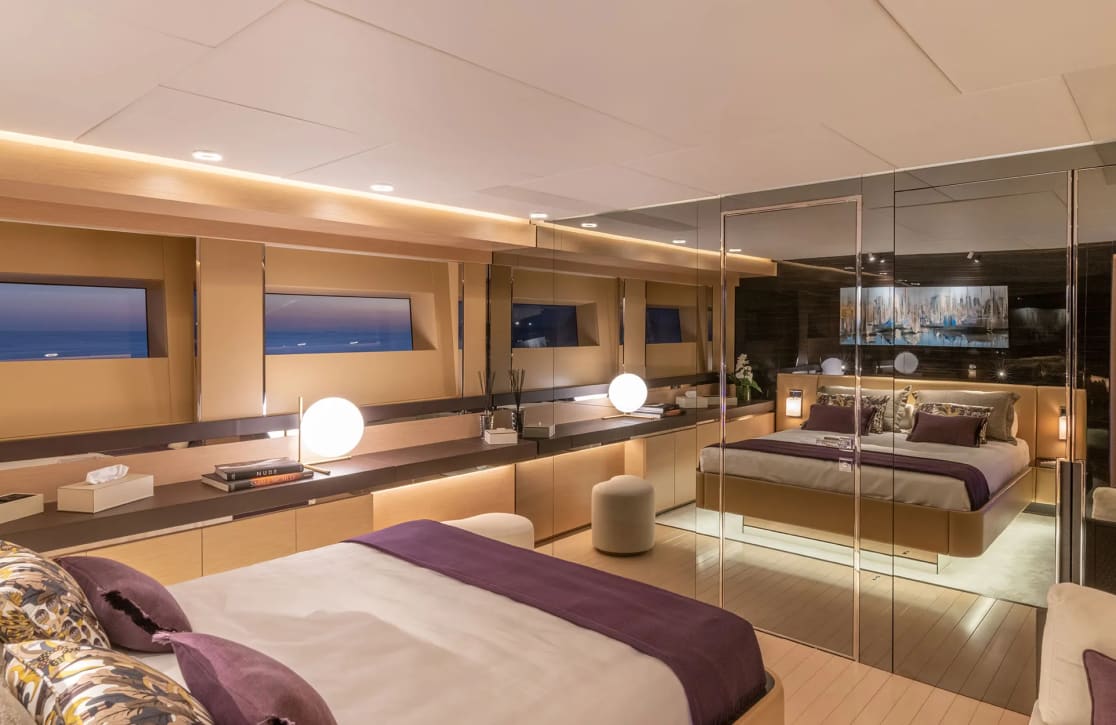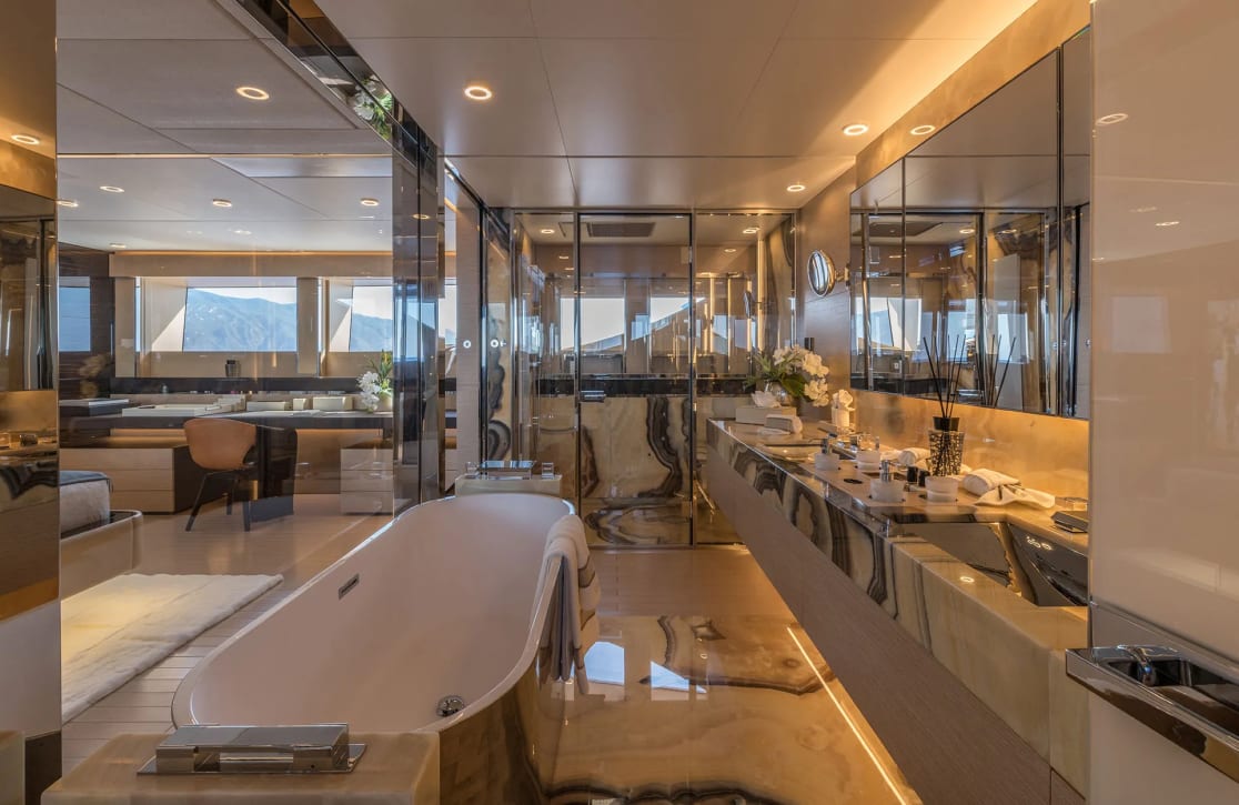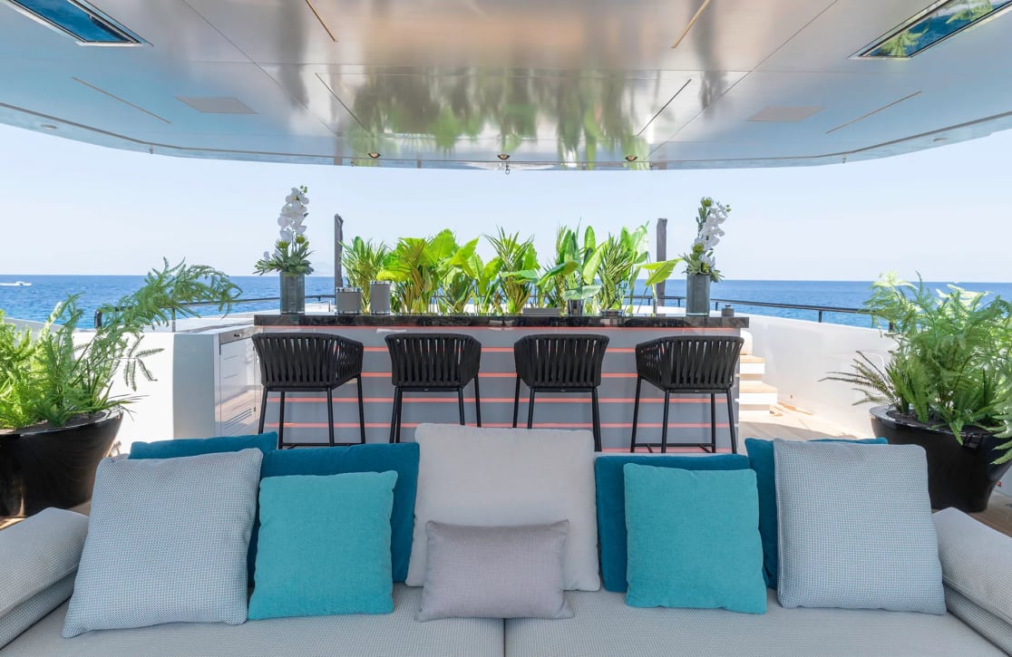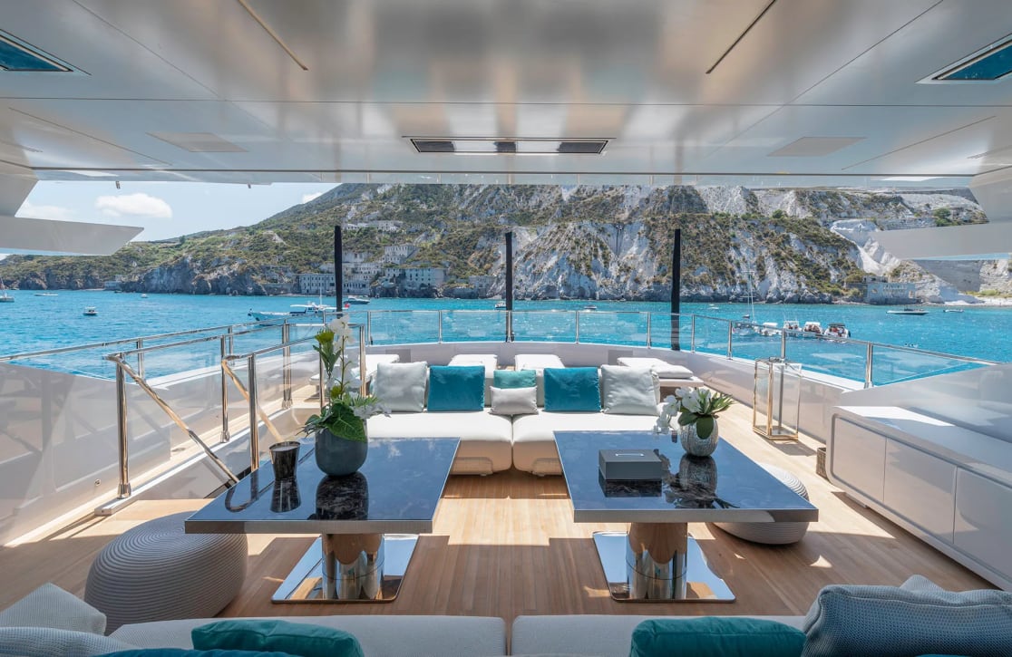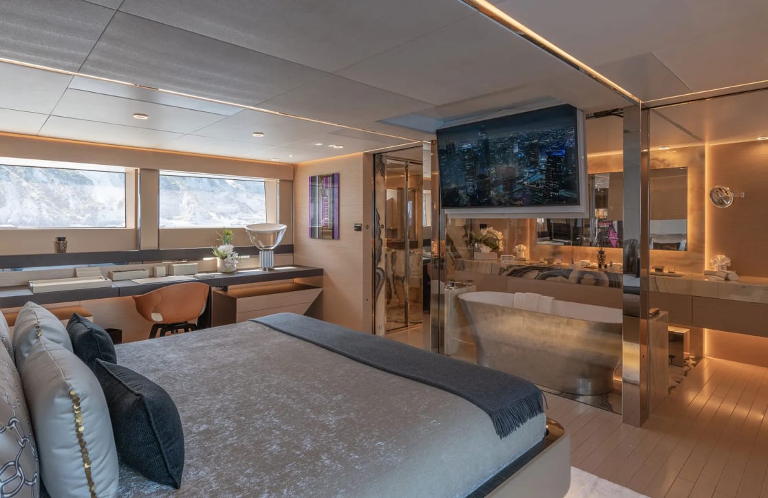 Aboard ‘LEL,’ every detail is curated to ensure a remarkable experience, offering spaces that harmonize relaxation and entertainment. Unwind in the luxurious deck jacuzzi, where panoramic ocean views elevate each moment to a tranquil escape. The beach club and foredeck seating with a table create perfect settings for sun-drenched days filled with laughter and leisurely conversations. Stay invigorated in the state-of-the-art gym, or simply recline on sunpads, letting the gentle sea breeze rejuvenate your spirit. With Wi-Fi keeping you connected and air conditioning ensuring comfort, ‘LEL’ transforms each day into a perfect blend of adventure and serenity.