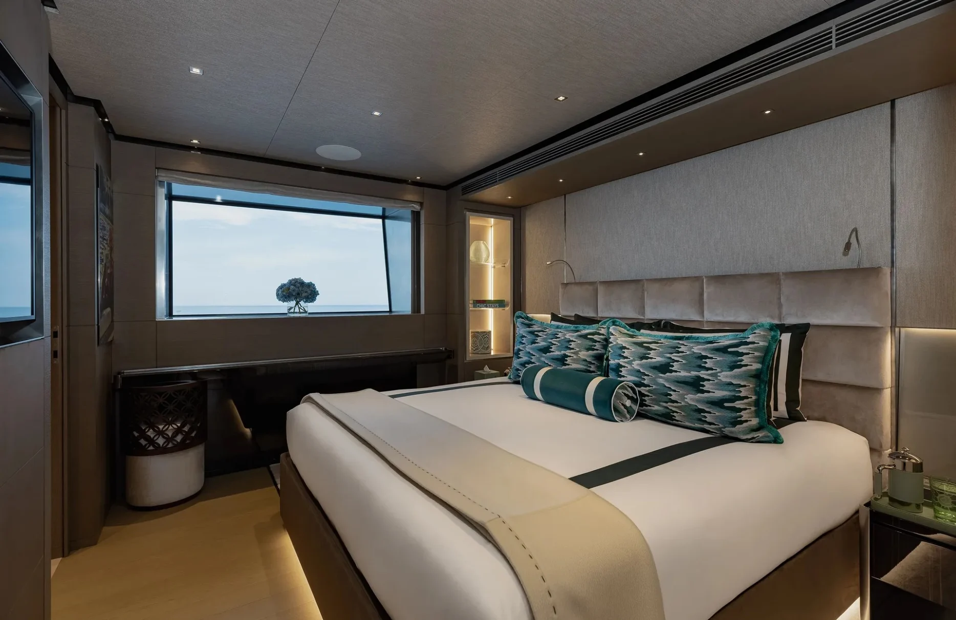 Lemon Tree accommodates up to 12 guests across seven bespoke cabins, each offering a distinct sanctuary of comfort and sophistication. The master suite is a lavish retreat, complete with a Jacuzzi, private terrace, and personal study, ensuring that every morning begins with serenity and luxury. Whether you choose the VIP suite or one of the versatile convertible cabins, each space promises a restful night’s sleep with the gentle lull of the sea as your soundtrack.
