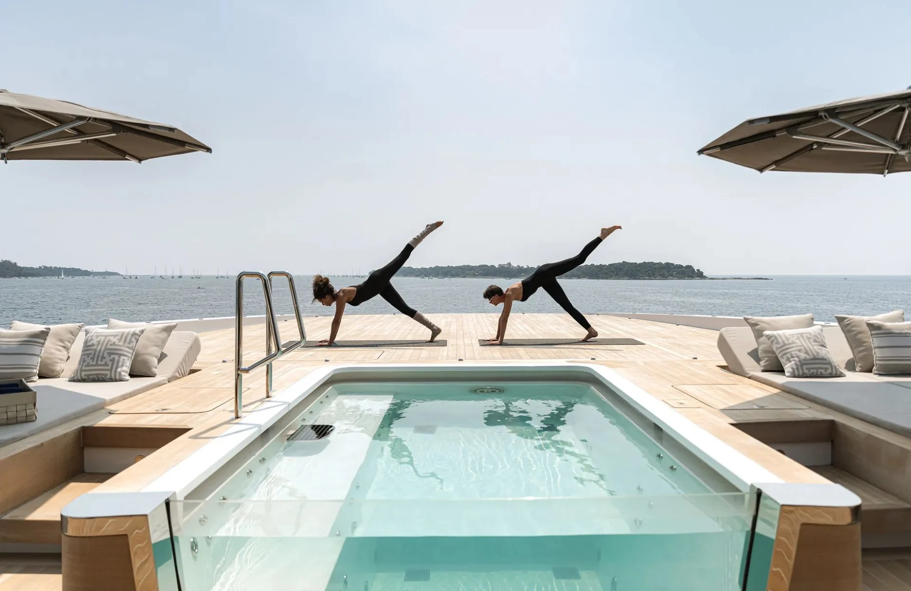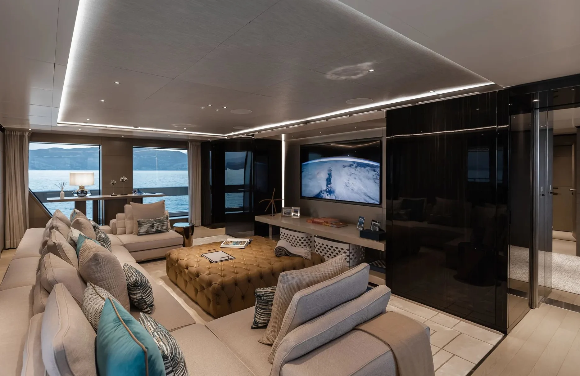 Onboard Lemon Tree, the ambiance is refined yet inviting, where every amenity is thoughtfully tailored to enhance your journey. Start your day with a refreshing swim in one of the sparkling pools before indulging in wellness rituals at the Turkish spa. As the sun sets, gather with loved ones at the outdoor cinema under a canopy of stars, or enjoy a handcrafted cocktail from the exterior bar. The yacht’s elevator effortlessly connects you to each of these exquisite spaces, ensuring every moment aboard is as effortless as it is memorable.