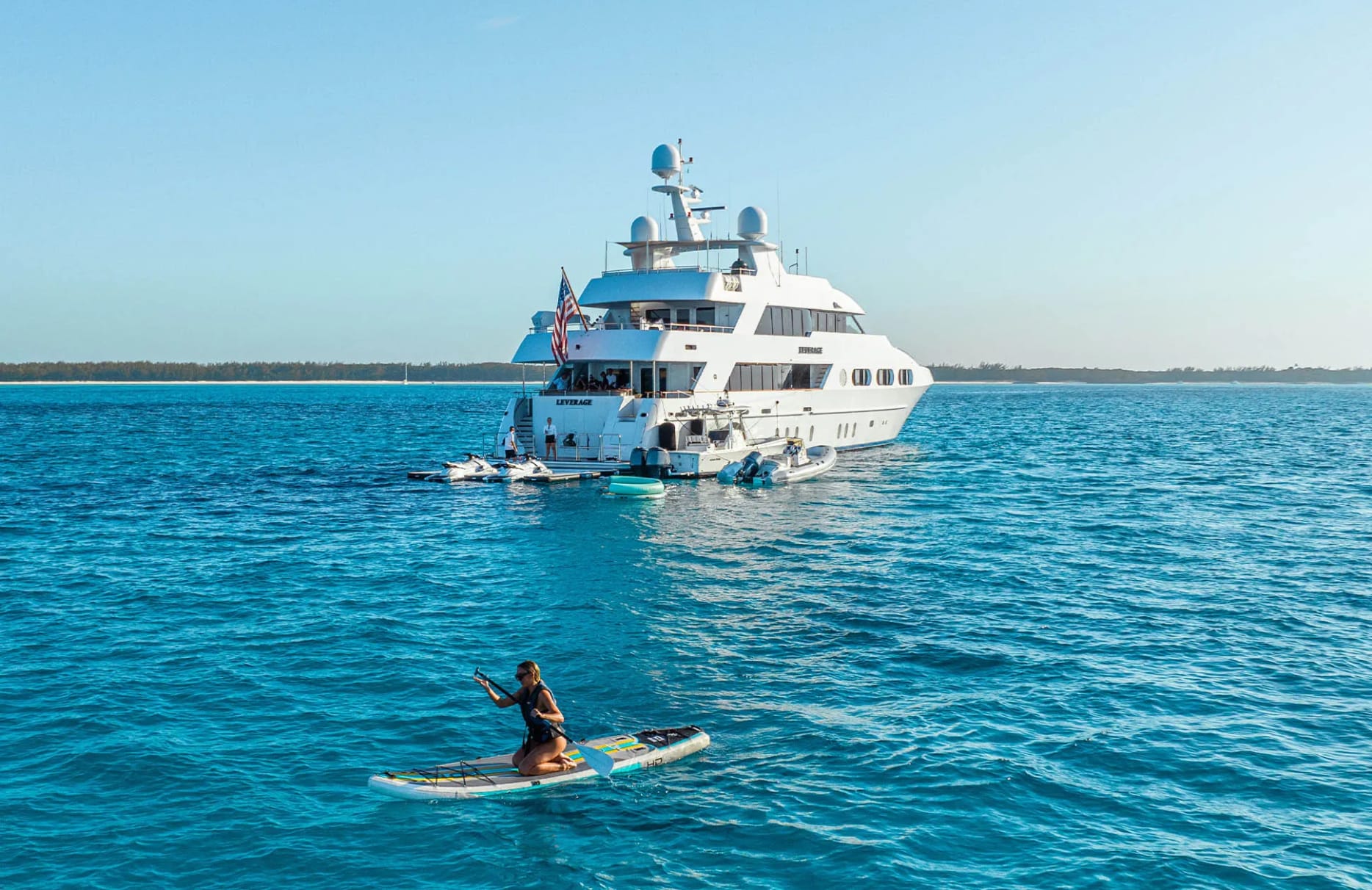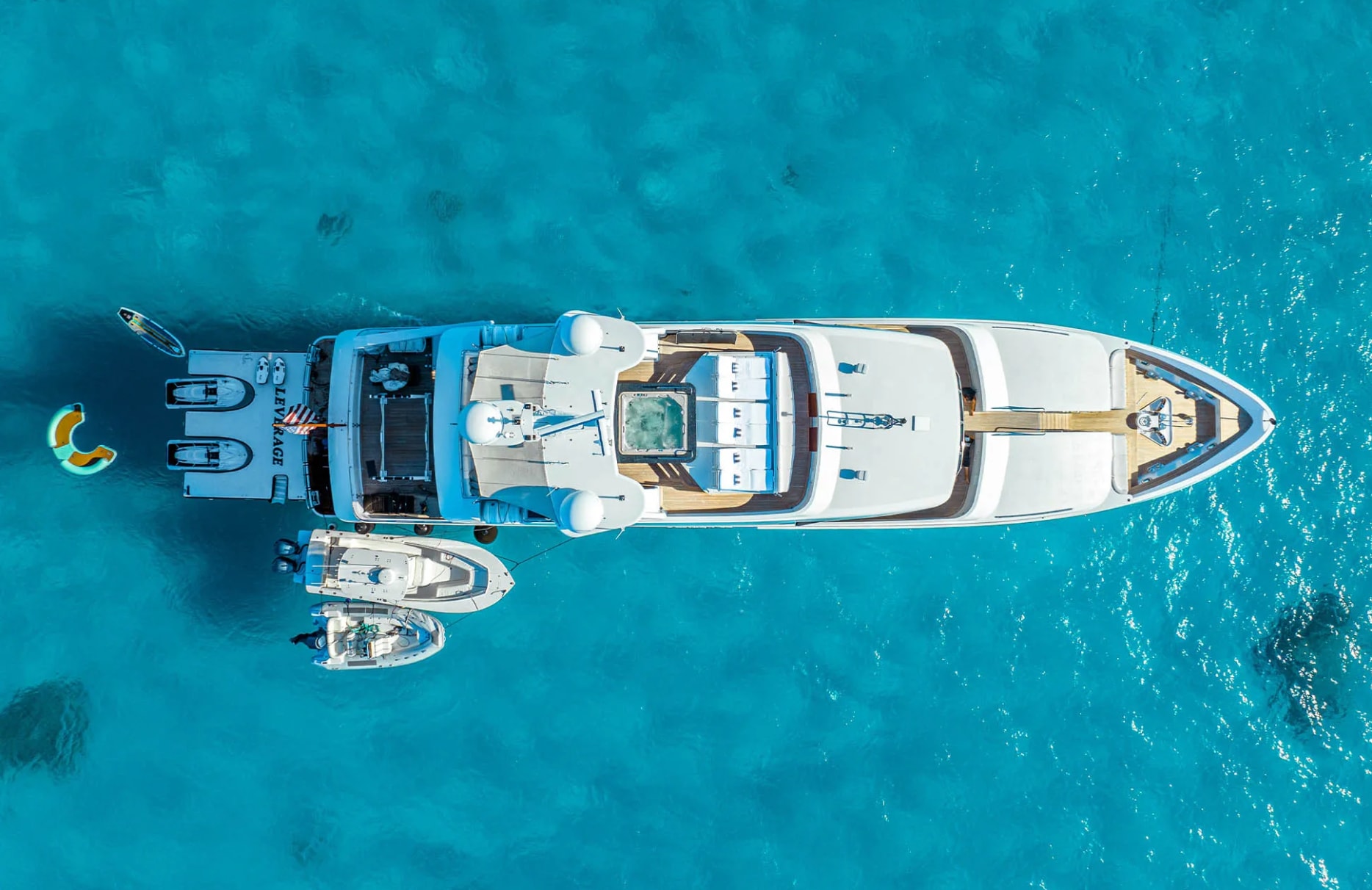 With a range of 2,200 nautical miles, Leverage unlocks a world of possibilities, from tranquil mornings watching the sunrise to evenings of unparalleled beauty as the sun dips below the horizon. Whether seeking solitude or social gatherings, the yacht’s inviting spaces offer the perfect setting for every moment. Leverage’s dedicated crew of seven ensures your needs are anticipated and met, allowing you to fully immerse yourself in the serenity and splendor of your surroundings.