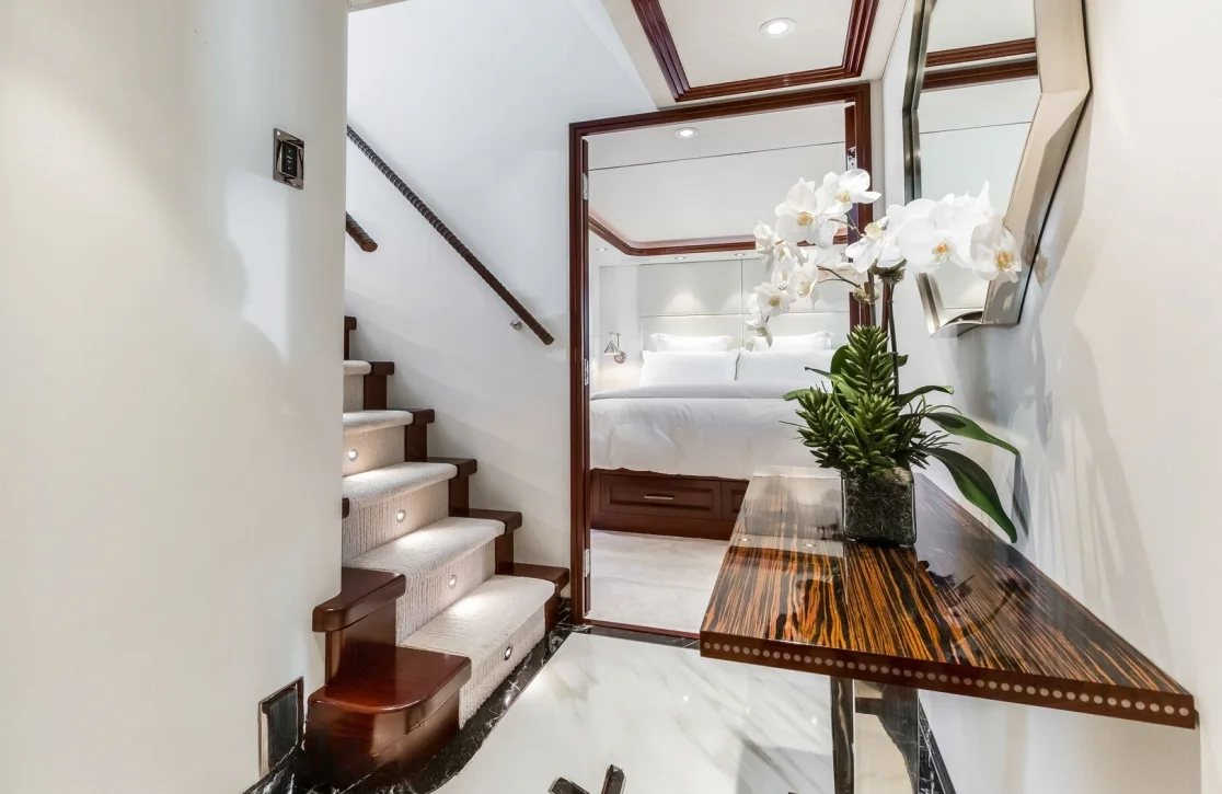 Embark on an unforgettable journey aboard the 34-meter ‘Lucky Lady,’ a vessel that exemplifies the art of ocean travel. Crafted by Westport Yachts, this masterpiece promises an experience where adventure and relaxation harmoniously coexist. With the capability to cruise at a brisk 22 knots, Lucky Lady invites you to explore the Caribbean’s hidden gems, from secluded coves to bustling harbors, all with ease and sophistication. As you traverse up to 2,500 nautical miles of pristine waters, each day presents new vistas and moments to cherish.