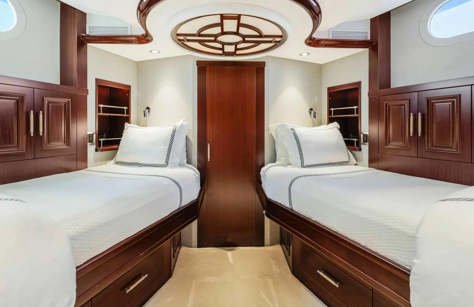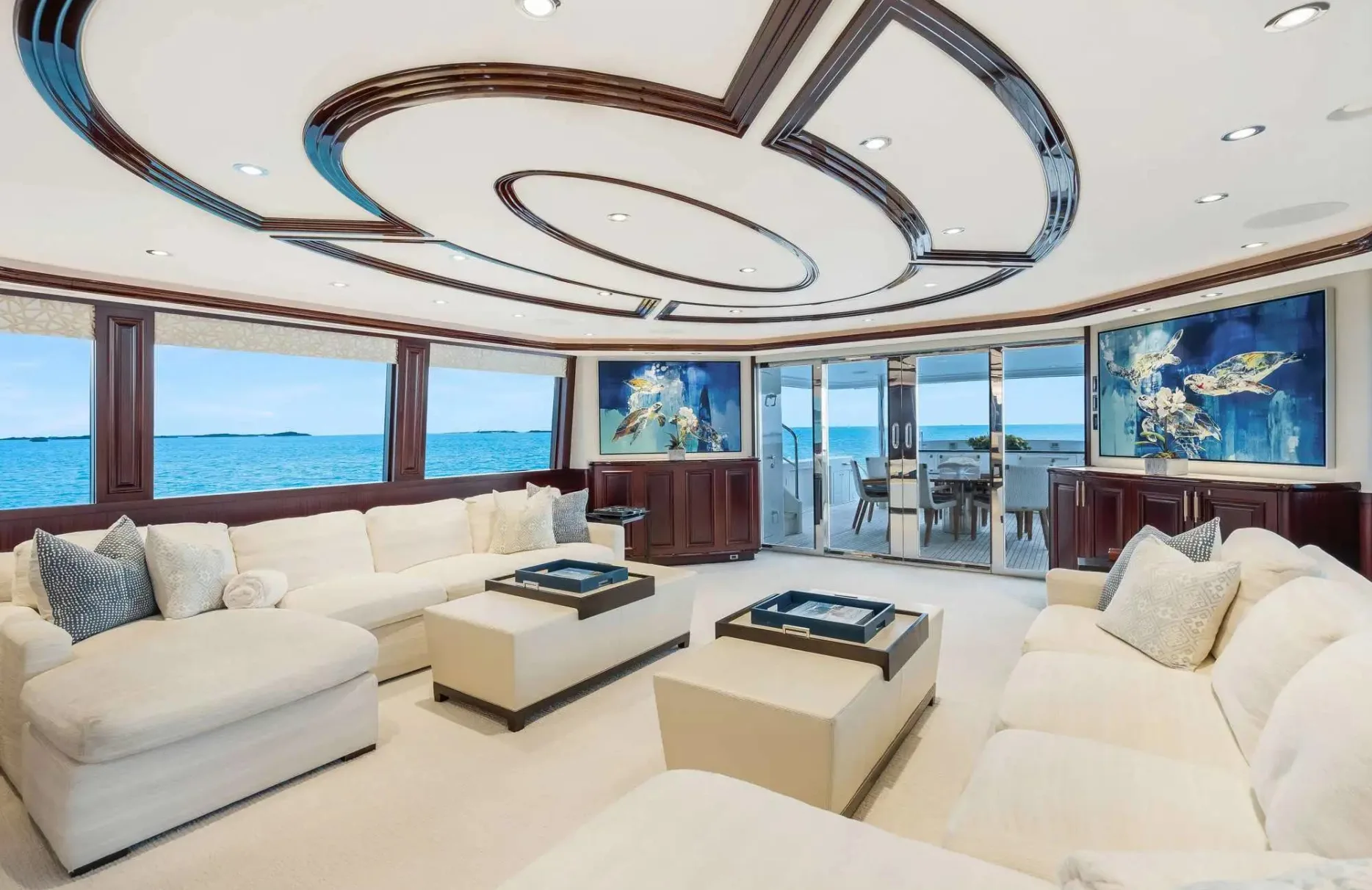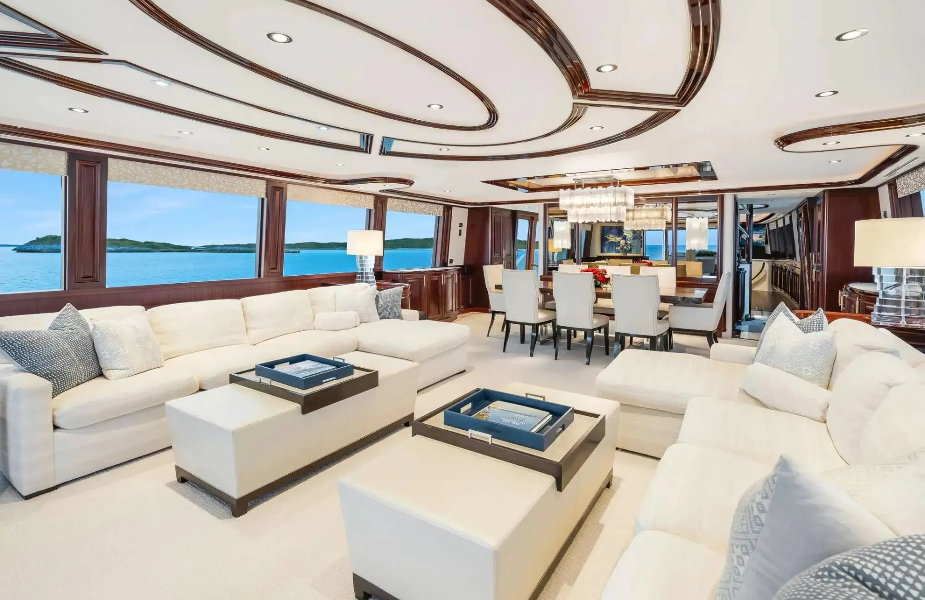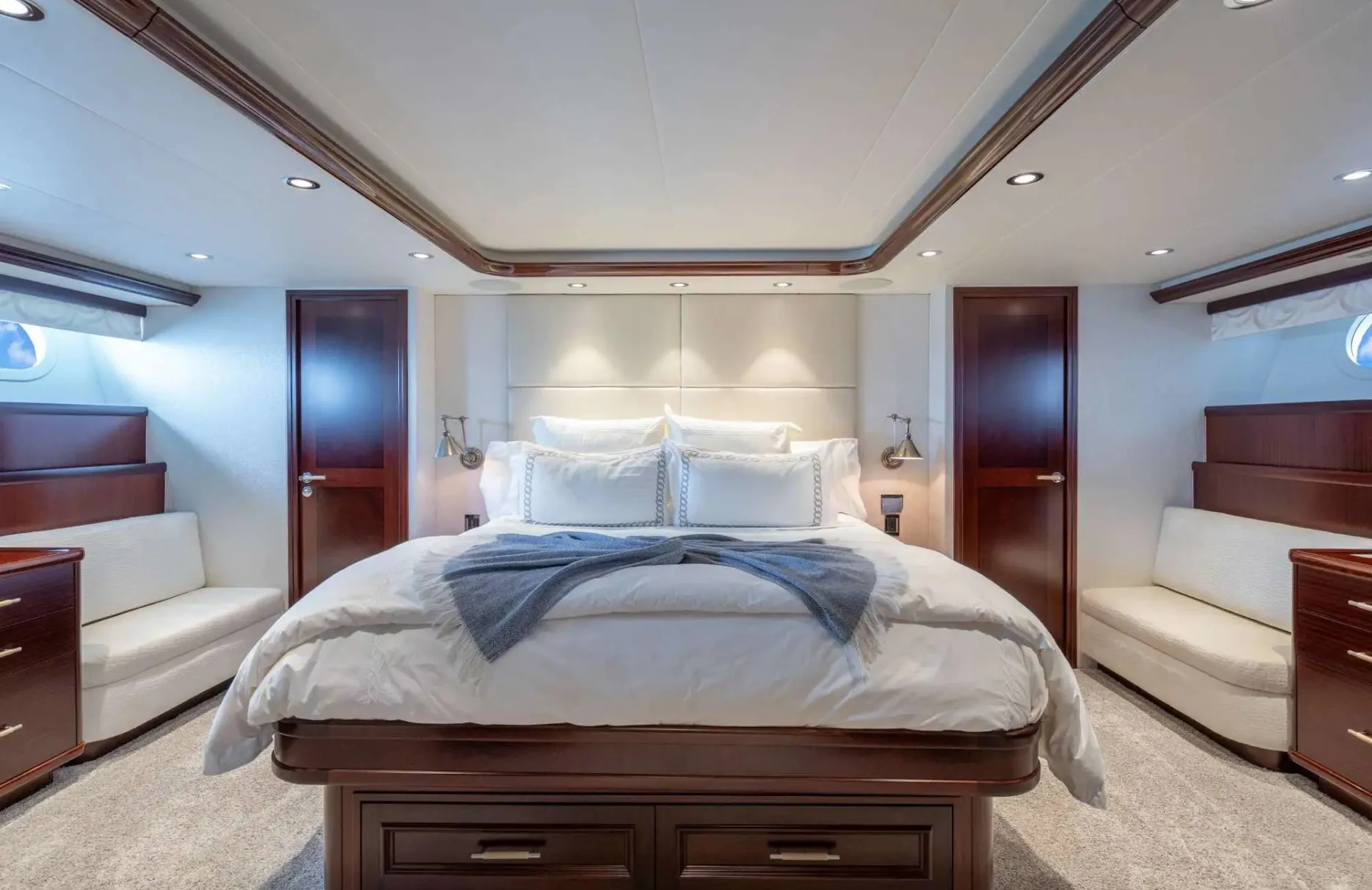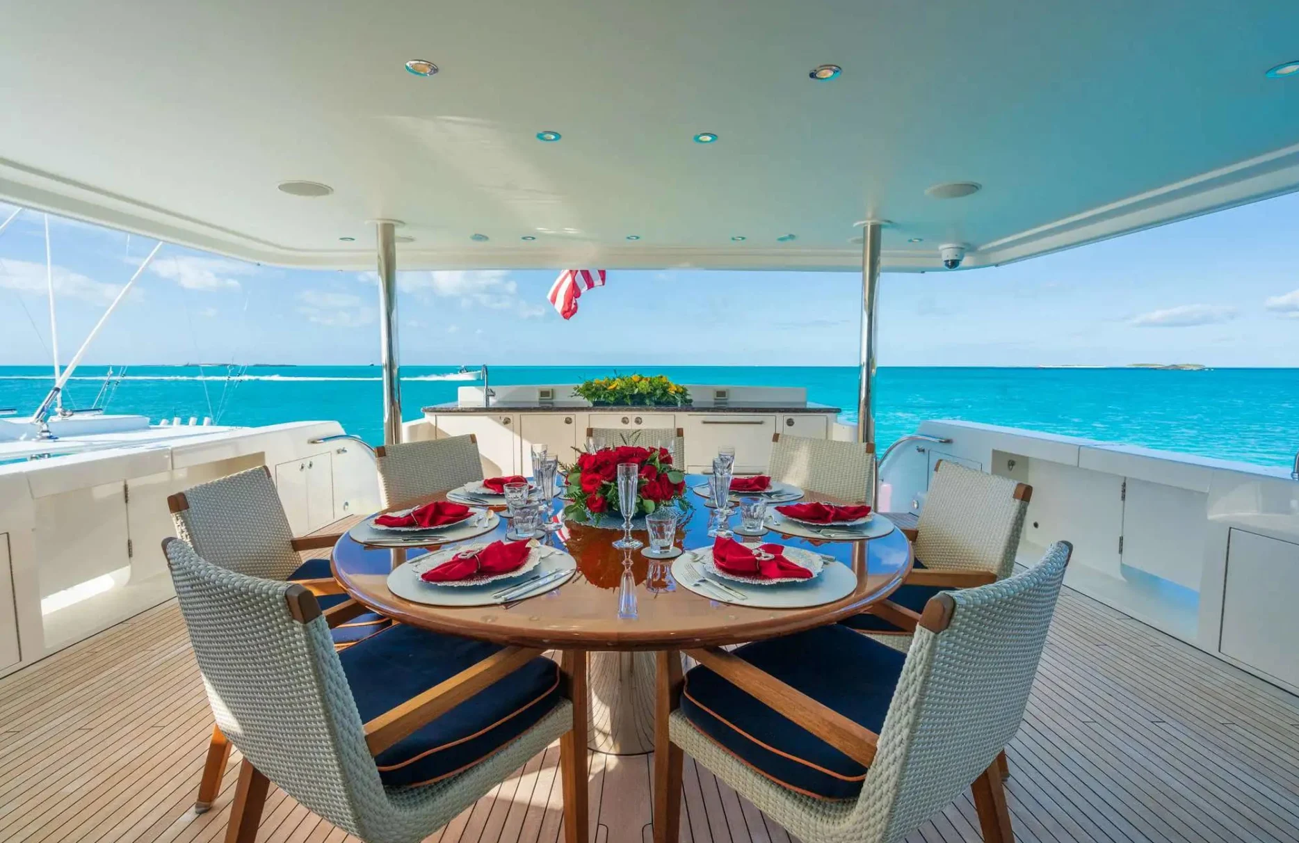 Embark on an unforgettable journey aboard the 34-meter ‘Lucky Lady,’ a vessel that exemplifies the art of ocean travel. Crafted by Westport Yachts, this masterpiece promises an experience where adventure and relaxation harmoniously coexist. With the capability to cruise at a brisk 22 knots, Lucky Lady invites you to explore the Caribbean’s hidden gems, from secluded coves to bustling harbors, all with ease and sophistication. As you traverse up to 2,500 nautical miles of pristine waters, each day presents new vistas and moments to cherish.