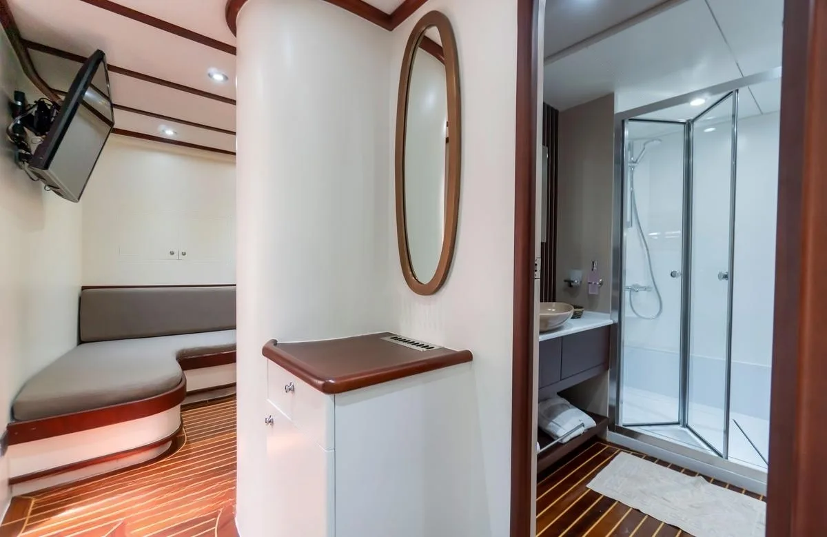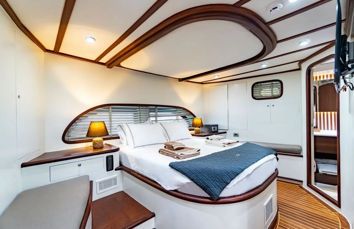 Each of Luja’s four cabins offers a haven of tranquility, designed to cradle you in comfort as the gentle sway of the ocean lulls you to sleep. Awaken to the soft glow of morning light filtering through your elegant quarters, each space thoughtfully appointed for relaxation. The sumptuous master suite provides a private retreat, while the lavish VIP and two spacious double cabins cater to family and friends, ensuring everyone aboard enjoys a restful and rejuvenating stay. With accommodations for up to eight guests, every aspect of your journey is met with tailored service and unrivaled comfort.