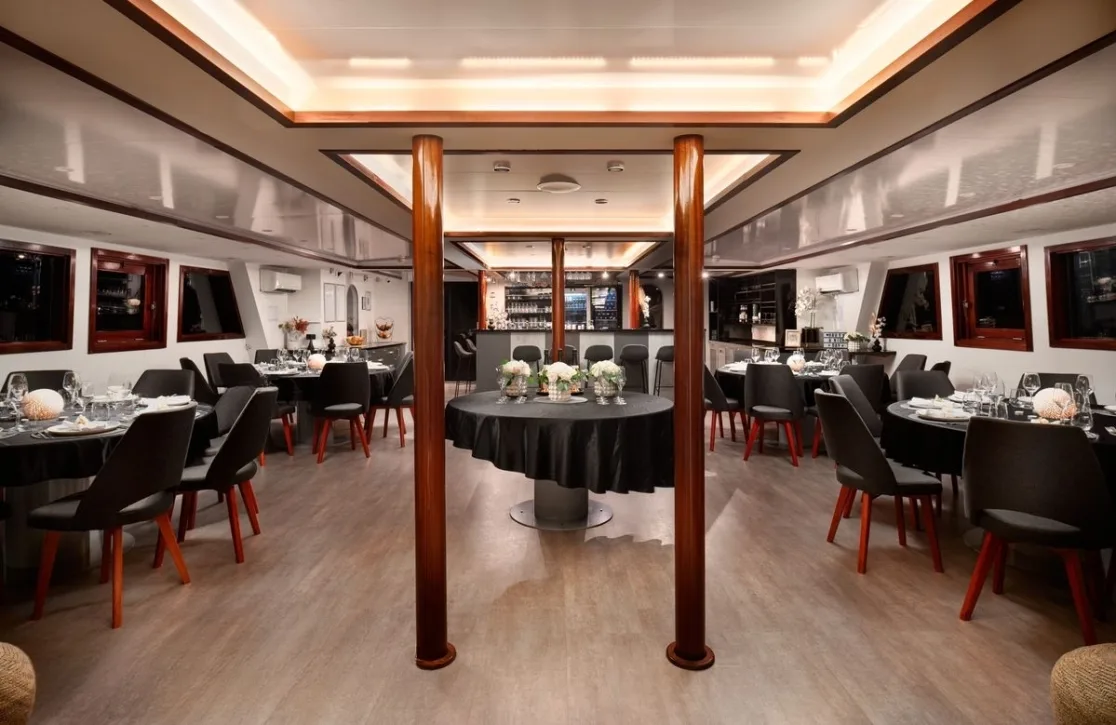 The accommodations aboard Lupus Mare are a sanctuary of comfort and style, designed to host up to 34 guests in 15 beautifully appointed cabins. Each room is a haven, offering a serene retreat where you can awaken to the gentle lull of the sea and the promise of a new day’s adventures. Whether you choose a double, twin, or triple configuration, the cabins are thoughtfully designed to provide a restful night’s sleep, ensuring you wake up refreshed and ready to embrace the day’s discoveries.