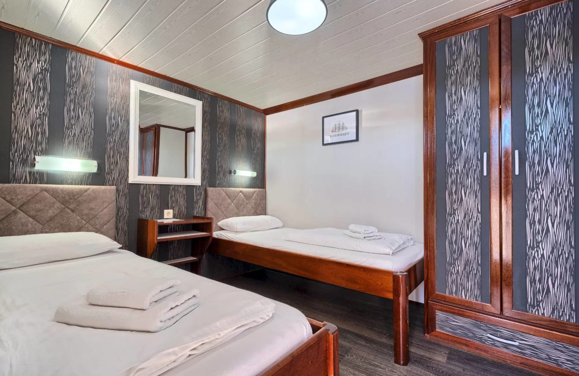 Magellan welcomes you to a world of serene comfort with accommodations for up to 42 guests. Nestled within her 19 thoughtfully designed cabins, guests can unwind in a blend of privacy and luxury. As the day dawns, awaken to gentle sunlight filtering through your cabin windows, where the rhythm of the ocean becomes your morning soundtrack. With a combination of queen, double, and single beds, each room is a sanctuary crafted for relaxation and rejuvenation, ensuring every night aboard is as restful as it is memorable.