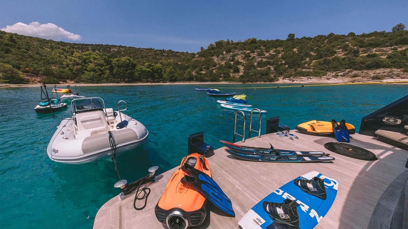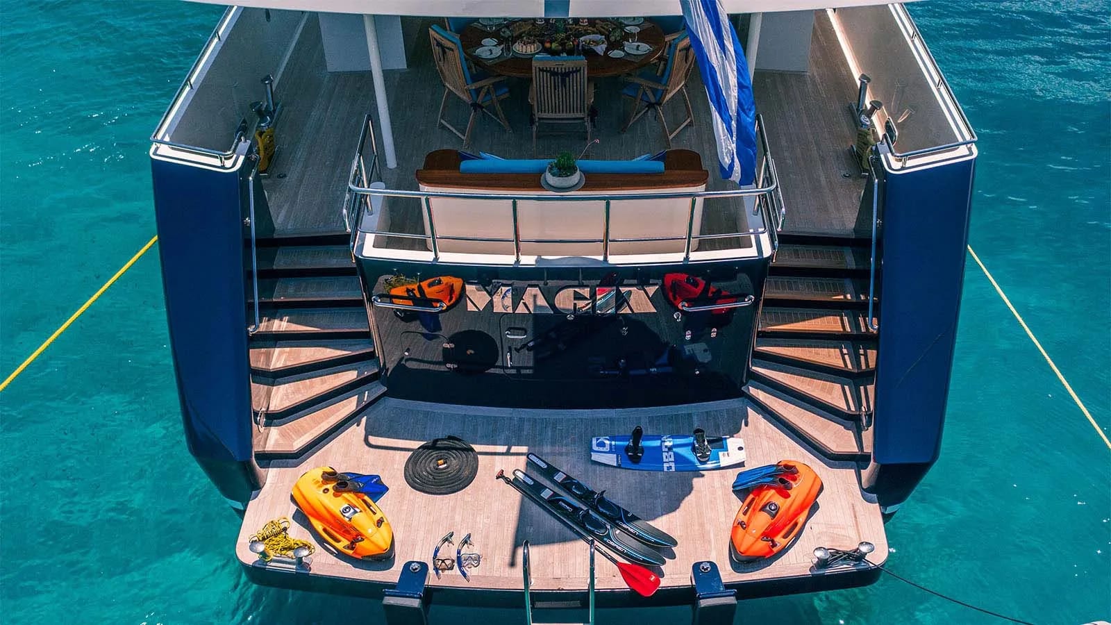Life aboard Magix is a harmonious blend of leisure and elegance. The yacht’s inviting spaces are designed for both relaxation and entertainment, featuring a rejuvenating deck jacuzzi where you can unwind with your favorite drink in hand. Stay connected, if you choose, with seamless Wi-Fi access throughout, while air conditioning ensures your comfort in every corner. Each day is yours to shape, whether indulging in quiet moments or engaging in lively gatherings, all set against the backdrop of breathtaking ocean views.