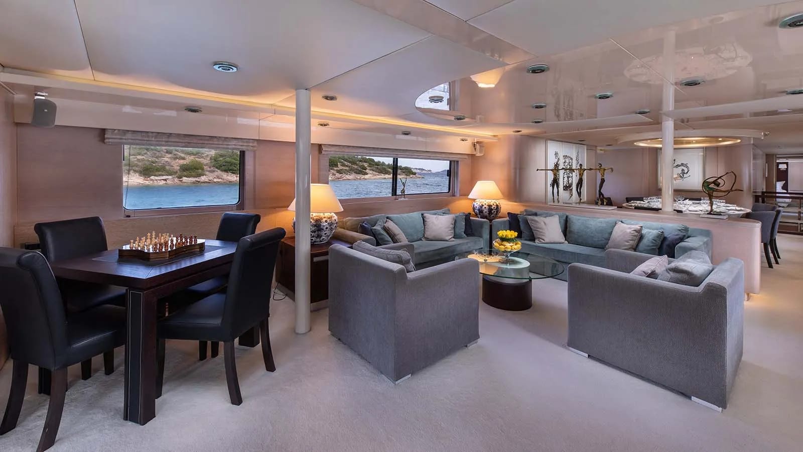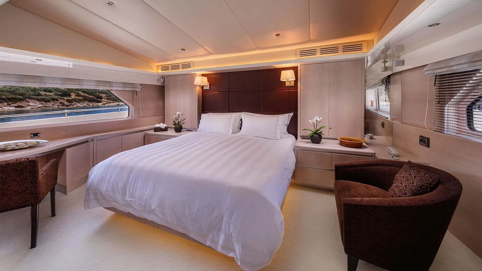 On Magix, up to ten guests are accommodated in five beautifully appointed cabins, each offering a sanctuary of comfort and style. As daylight filters through your cabin’s windows, you’re greeted by serene ocean vistas, setting the perfect tone for the day ahead. The master suite and versatile double and twin cabins are thoughtfully designed, providing restful retreats for every guest. Each space whispers sophistication and offers a private haven where you can relax completely, lulled by the gentle rhythm of the sea.