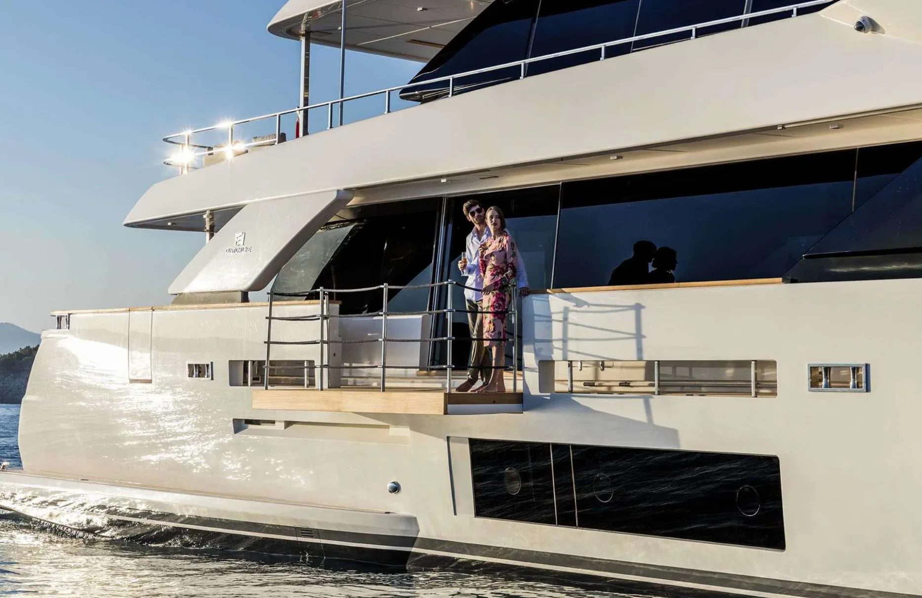 Maria Theresa, a masterpiece from the esteemed Custom Line, beckons you to discover her world of refined elegance and adventure. Crafted in 2019, she embodies the timeless aesthetic and advanced technology of the Navetta 33 model, ensuring a seamless journey across the azure waters of the Mediterranean. With her sleek Italian design and an inviting profile, Maria Theresa is your gateway to unparalleled exploration. From the historic harbors of Greece to the sun-drenched coasts of Italy, and the glamour of Monaco, each day aboard promises new horizons both onboard and ashore. Her ability to accommodate up to eleven guests in comfort and style, with a dedicated crew of six, ensures that every moment spent aboard is one of pure delight.