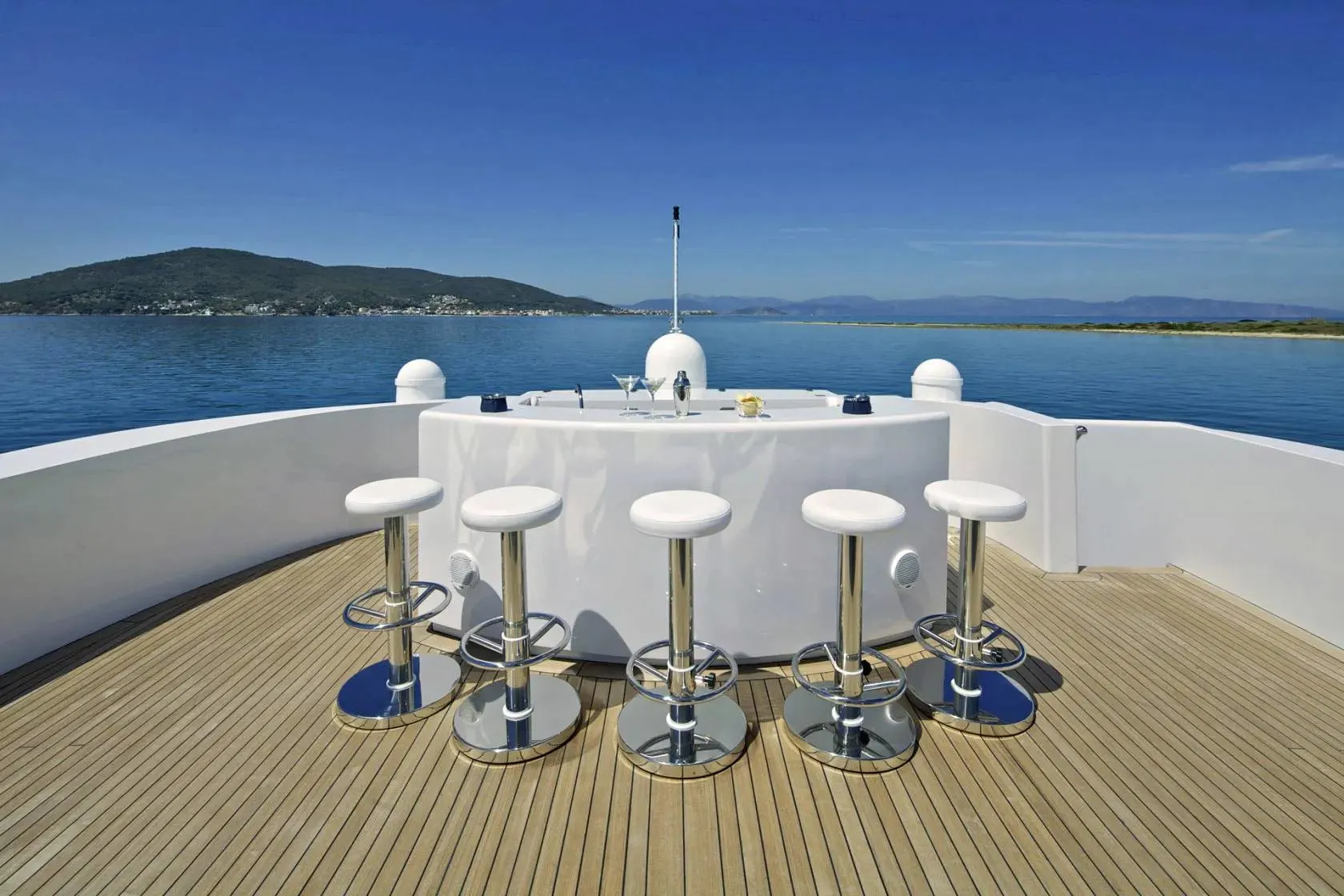Aboard Mia Rama, every moment is curated for your enjoyment and relaxation. Whether you’re savoring a morning coffee on the sun deck or indulging in a tranquil evening soak in the jacuzzi, the yacht’s array of spaces provide the perfect backdrop for any occasion. Fitness enthusiasts will appreciate the fully equipped gym, ensuring that wellness can continue uninterrupted at sea. As the sun sets, gather friends and family for a delightful evening under the stars, where the exterior bar becomes the heart of your social gatherings. With Wi-Fi to keep you connected and air conditioning to ensure your comfort, every aspect of life aboard Mia Rama is designed to cater to your desires.