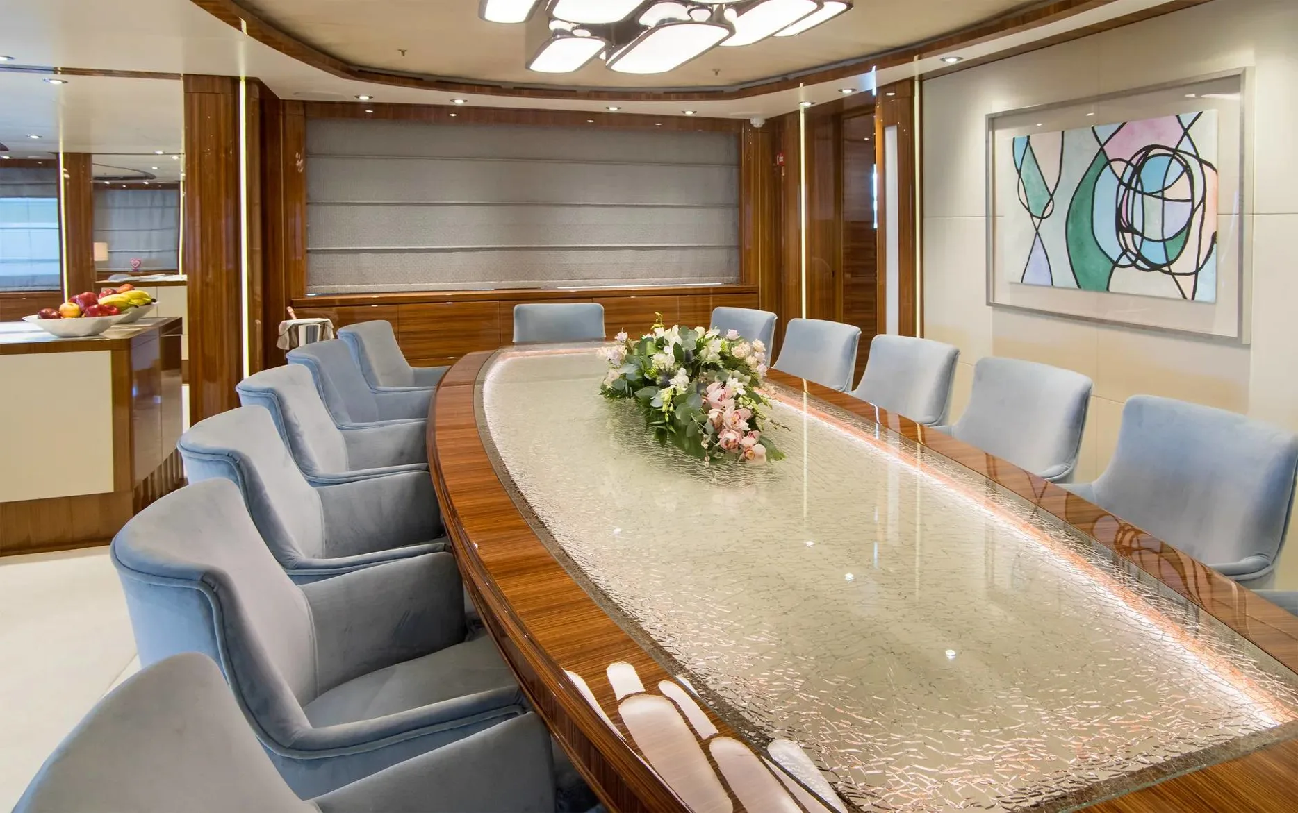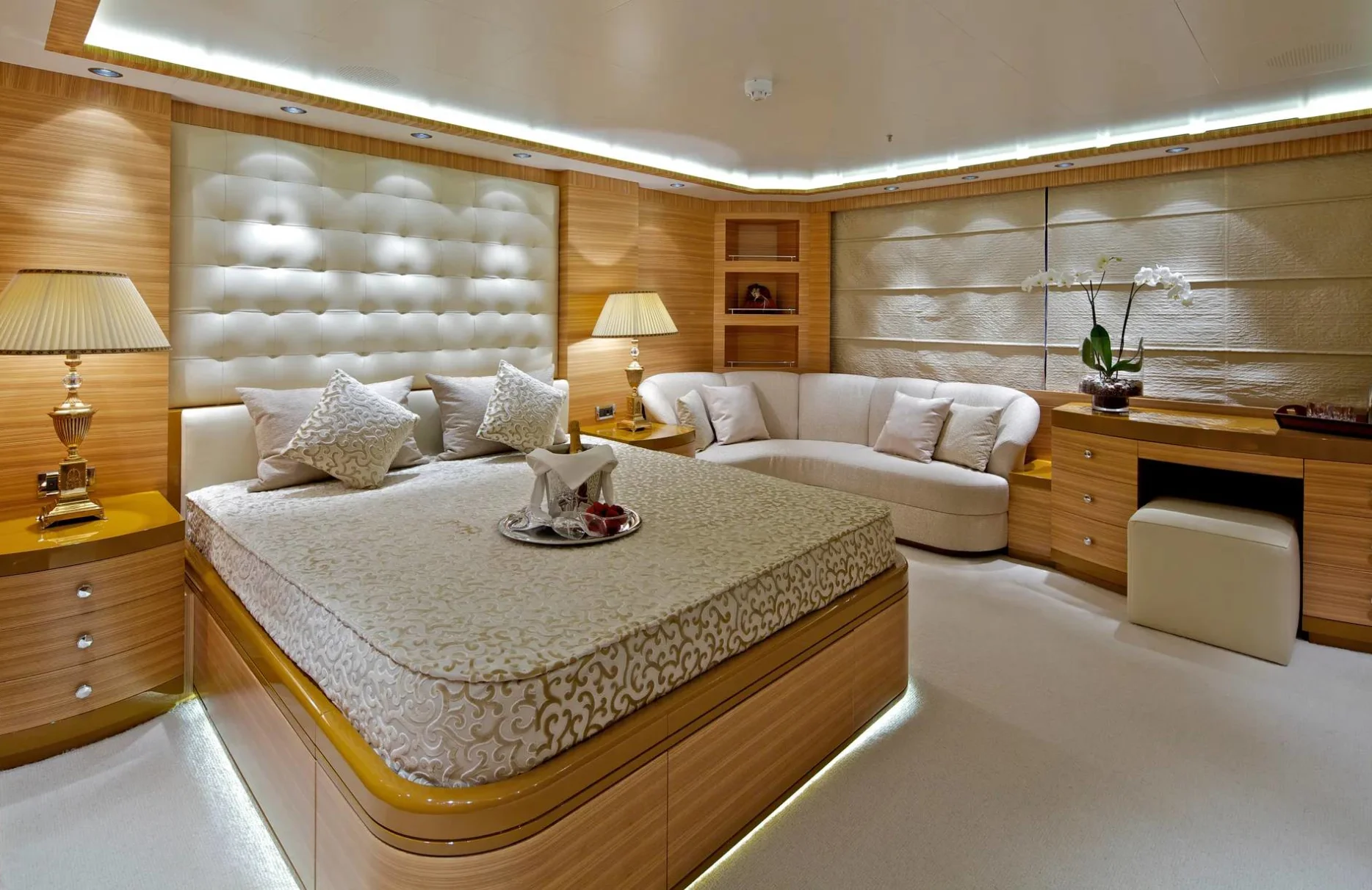 Mia Rama welcomes up to 12 guests across 7 elegantly appointed cabins, each offering a sanctuary of tranquility and refined comfort. The master suite and VIP cabin are havens of sophistication, while the double and twin cabins provide versatile options for families and friends. Awaken each morning to the gentle rhythm of the sea, with expansive windows offering views of the endless blue. Every cabin is a testament to tasteful design and attention to detail, ensuring that your time aboard is as restful as it is invigorating.